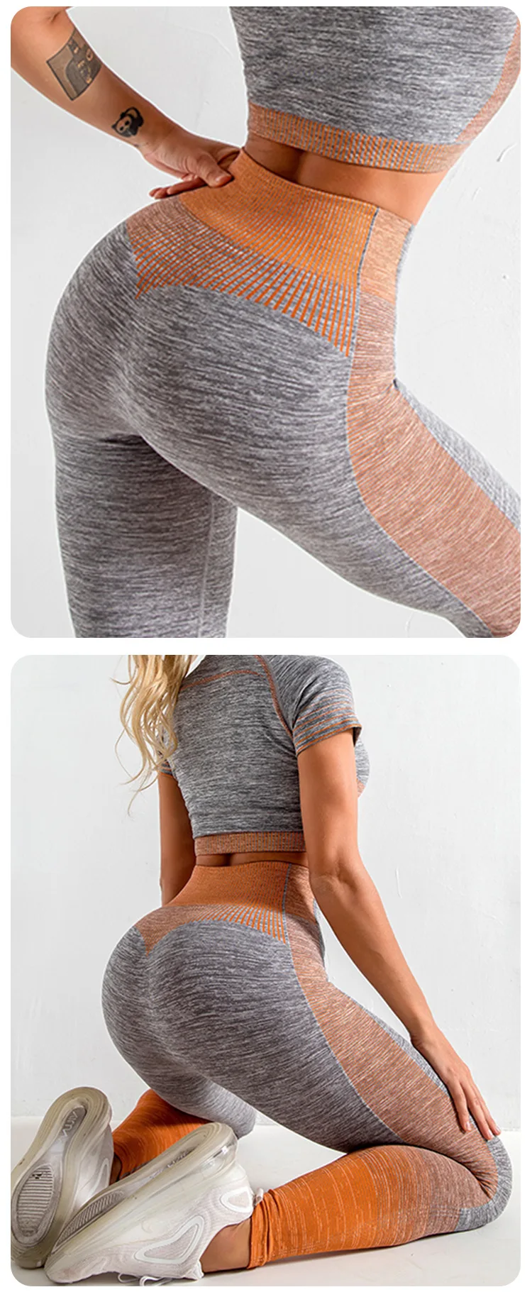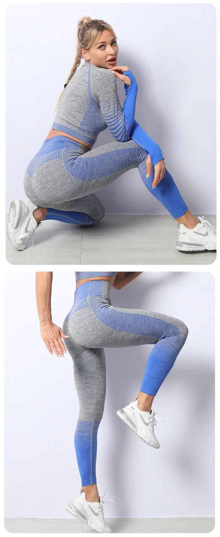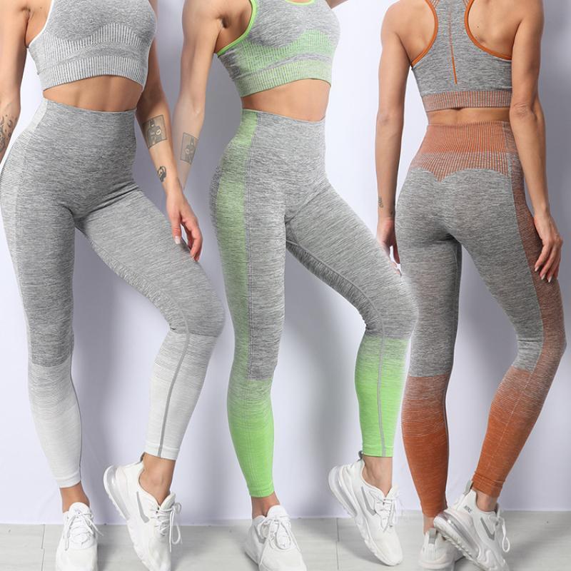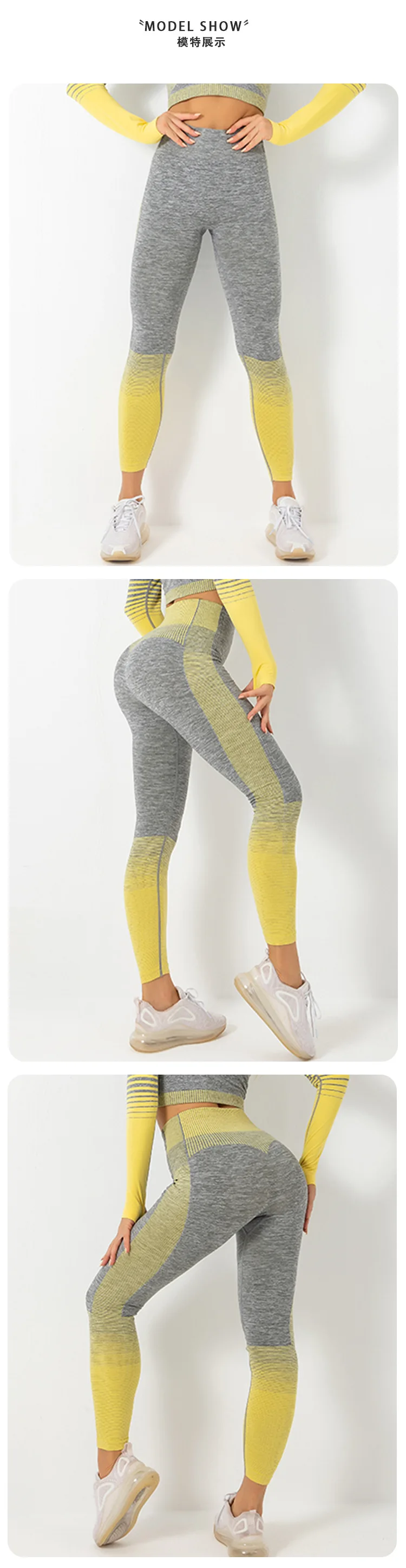 Women Seamless Leggings High Waist Stretchy Yoga Pants Fitness Leggings Gradient Color Stitching Gym Work Out Tights