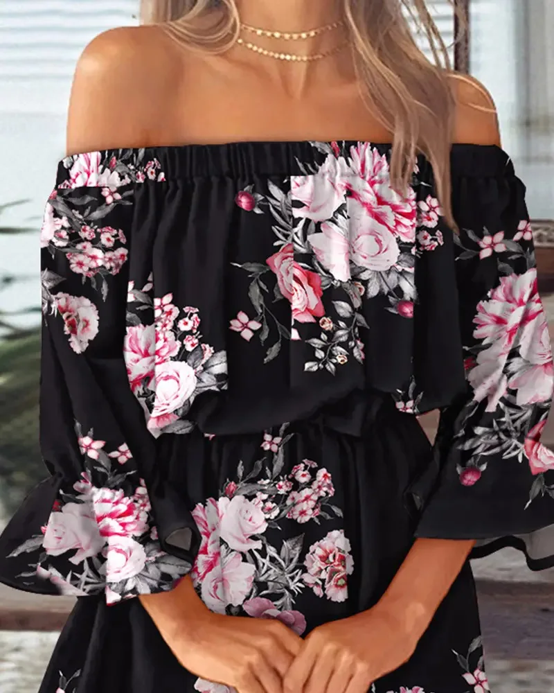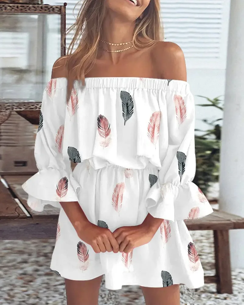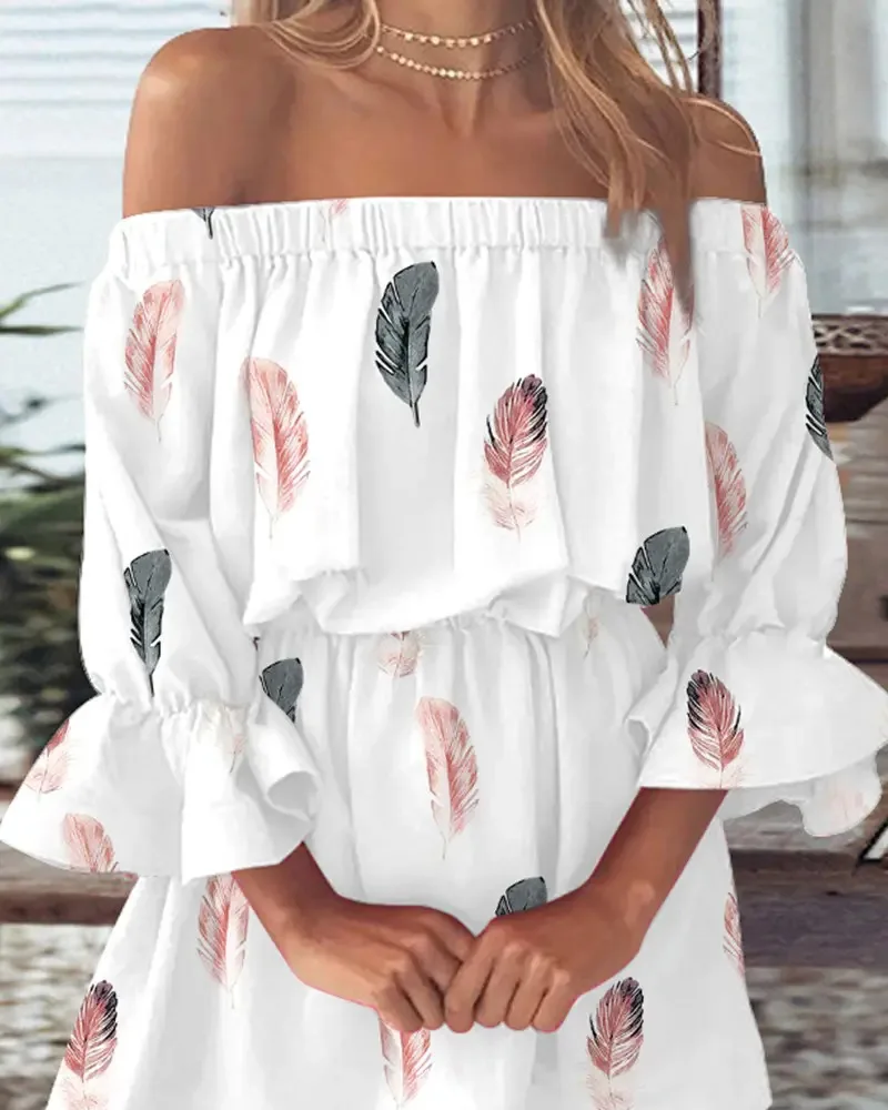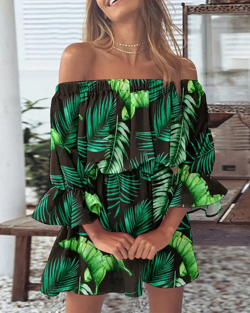 Women Sexy Tube Top One-Shoulder Printed Summer Dress 2022 New Fashionable Pullover Half Sleeve Elastic Waist Dress Vestidos