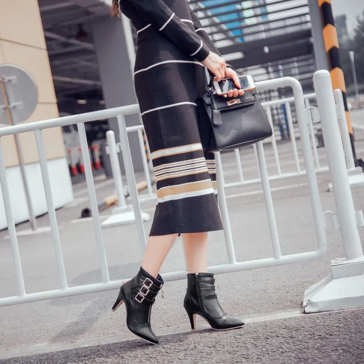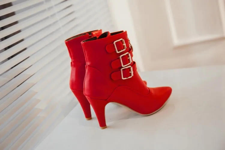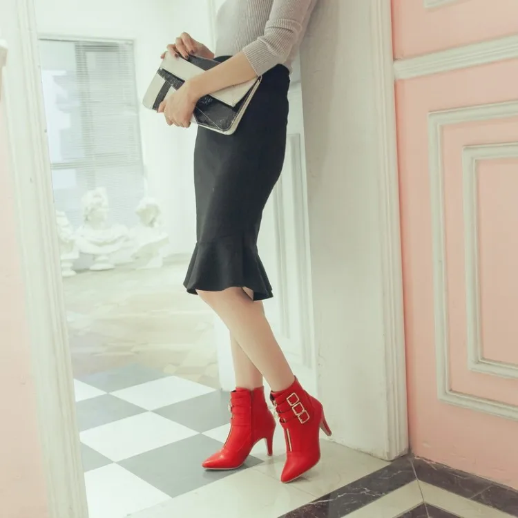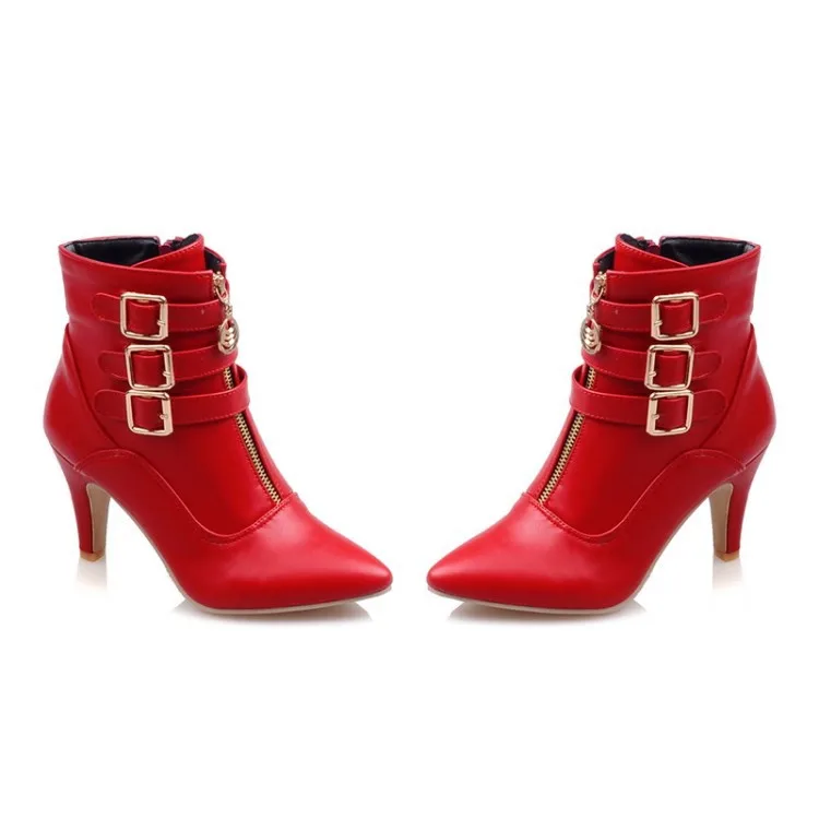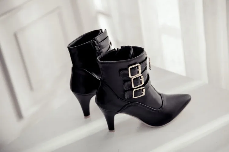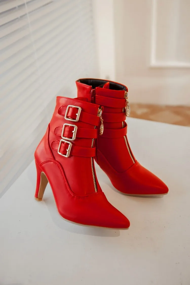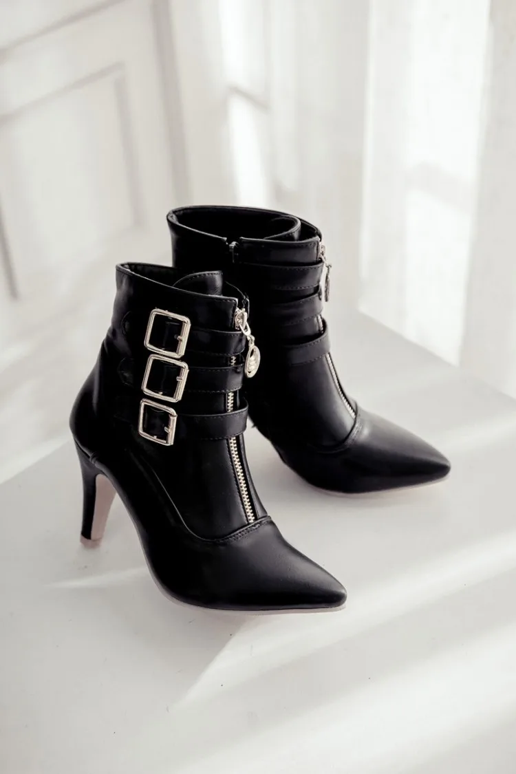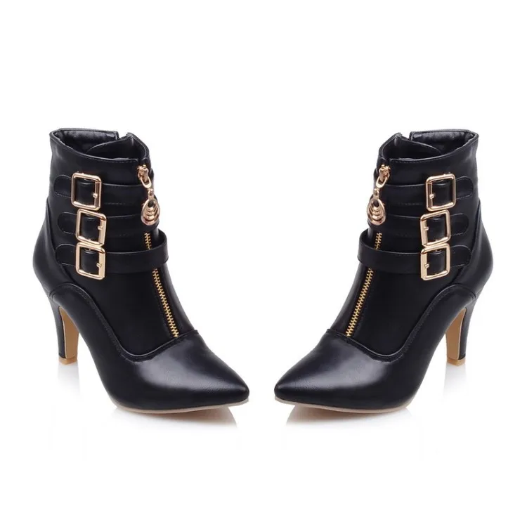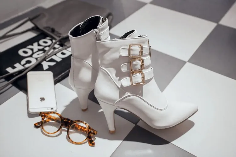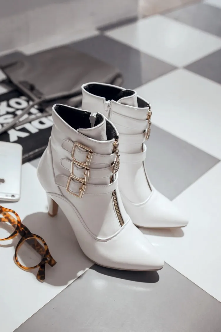 Women Shoes Boots Spring High Heels Ankle Boots Pointed Toe Buckle Boots Zip Ladies Shoes White Big Size 2023