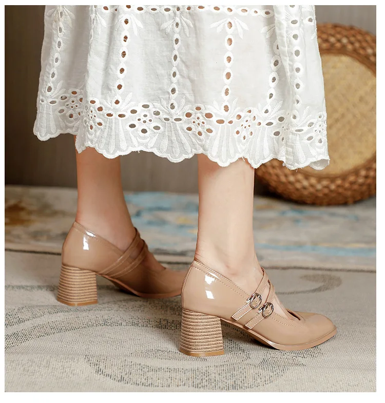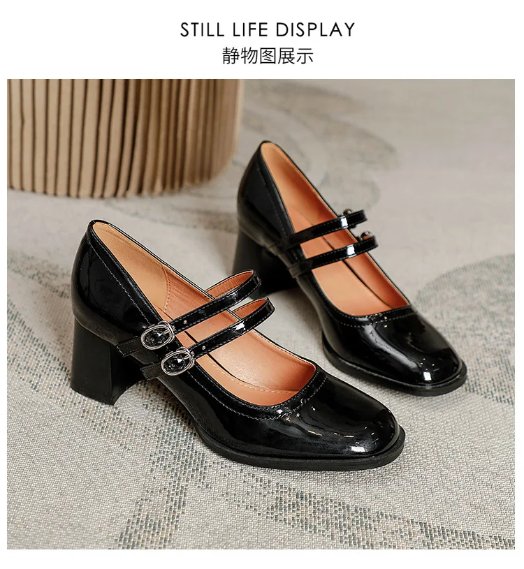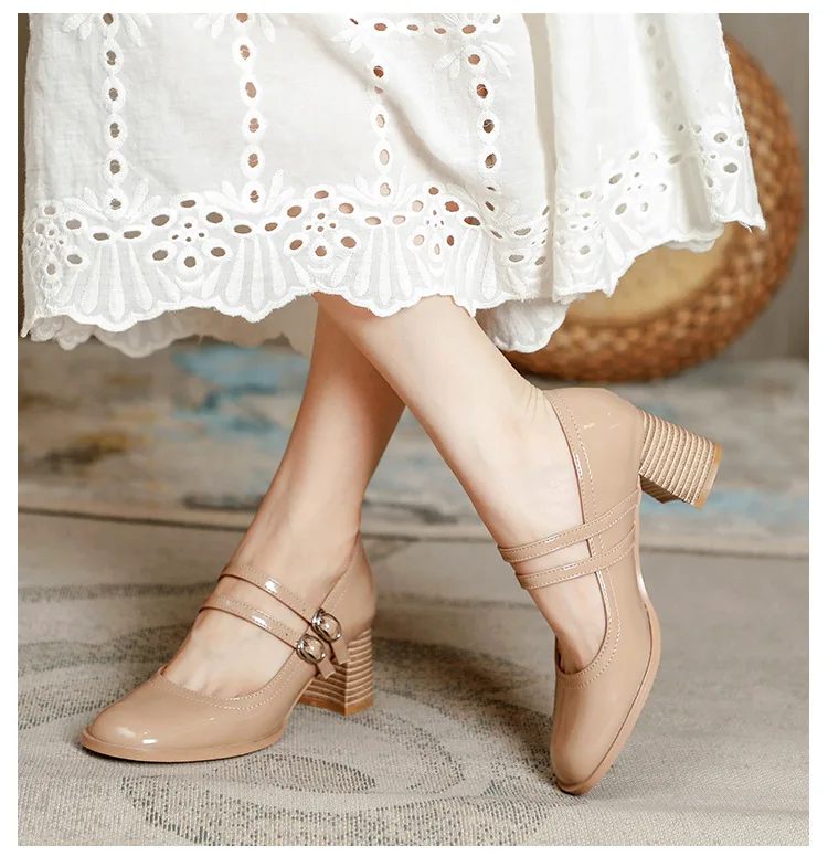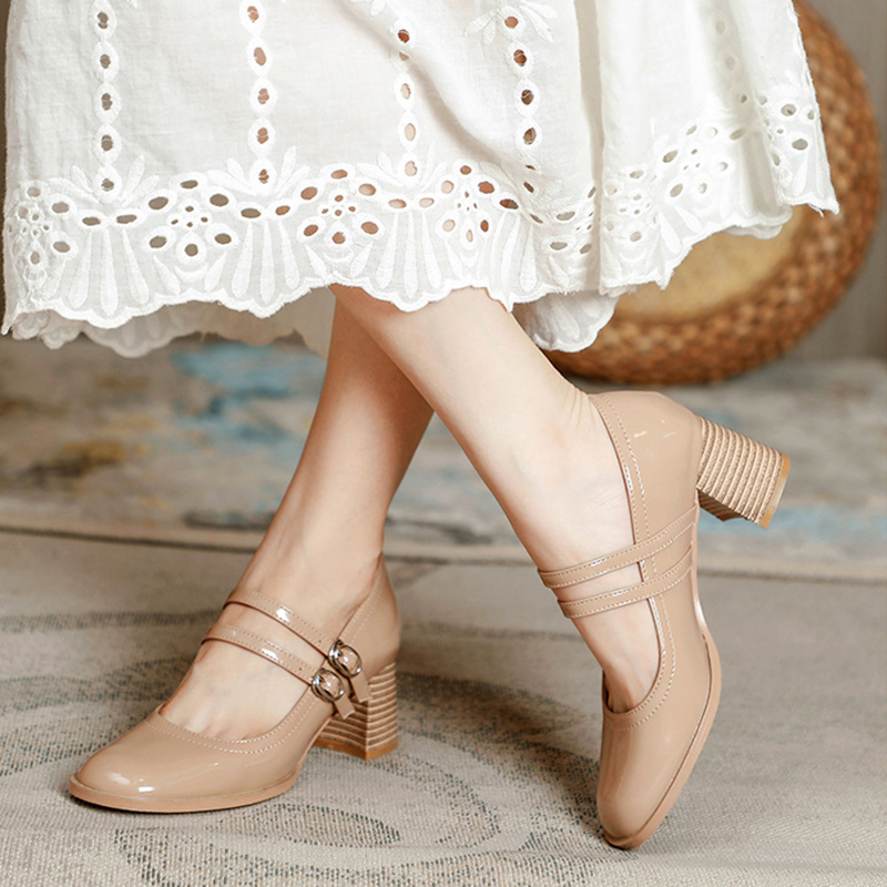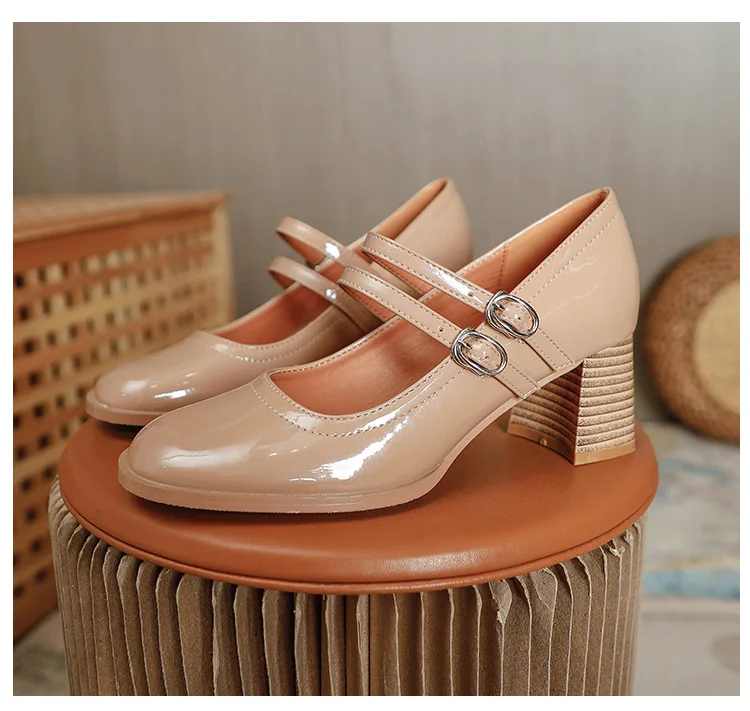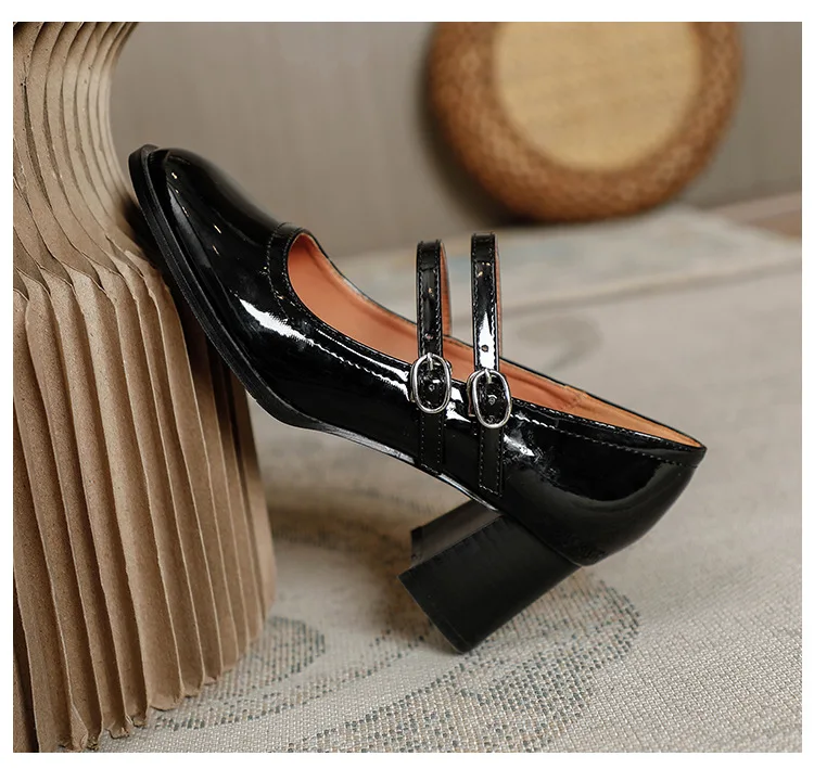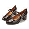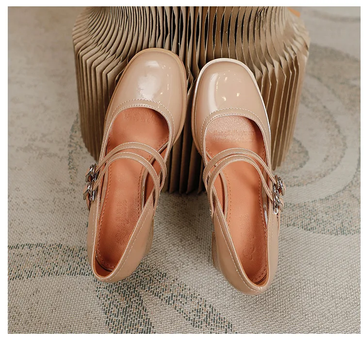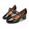 Women Shoes Concise Platform High-heeled Round Head Patent Leather Shoes Lady Retro Chunky Mid-Heel Casual Roman Shoes for Women