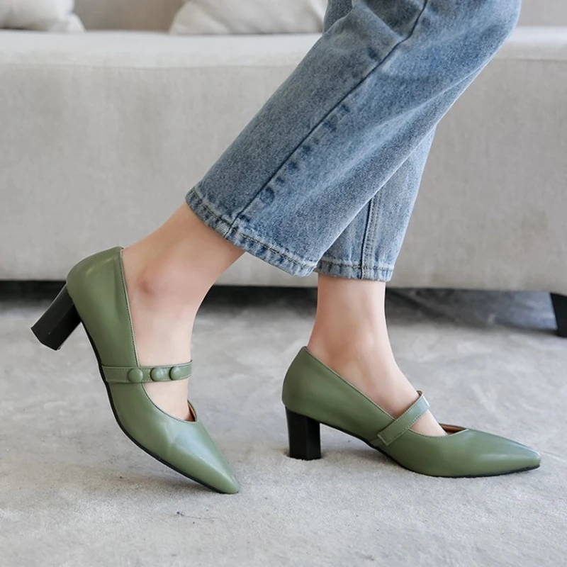 Women shoes Pumps Ankle Strap Thick Heel Shoe Square Toe High Heels Dress Work Comfortable Ladies Shoes Sandals size 30-48 20-5