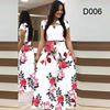 Women Short Sleeve Hollow Out O-neck Long Dress Summer Elegant Floral Printed High Waist Elastic Elegant Boho Robe Maxi Vestidos