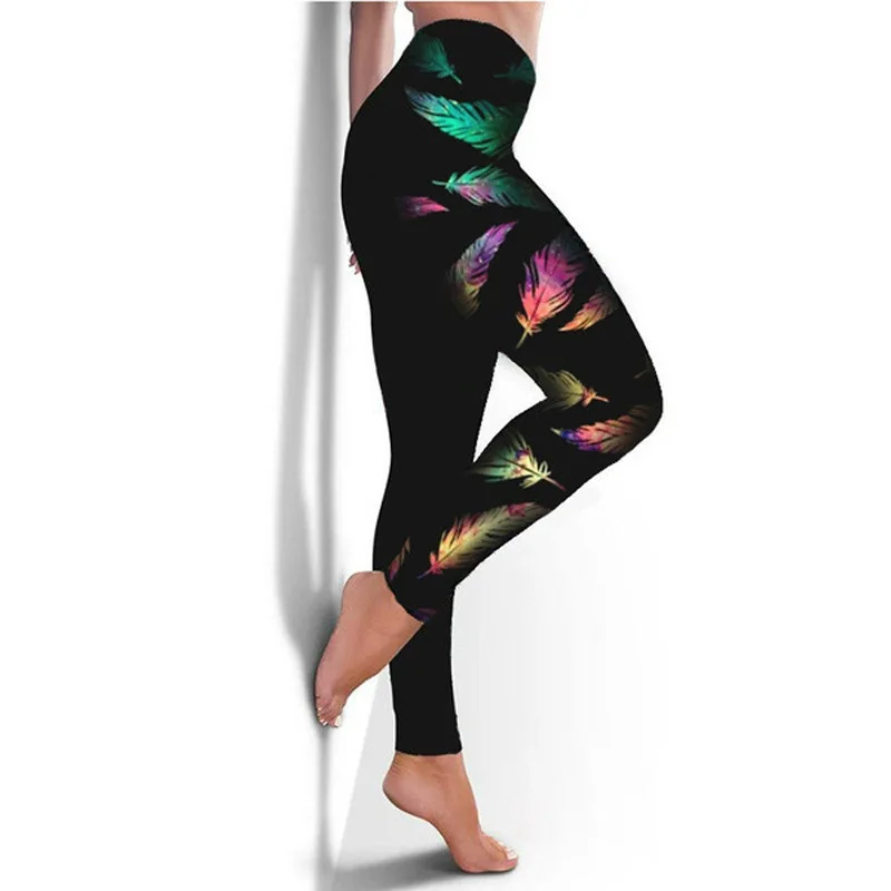 Women Slim Long Pants 2021 Autumn Fashion High Waist Ladies Sweatpants Vintage Feather Print Street Elegant Casual Female Pant