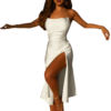 Women Sling Dresses, Sleeveless Off Shoulder Backless Bandage Split Hem Solid Color Casual Club Party Summer Dresses