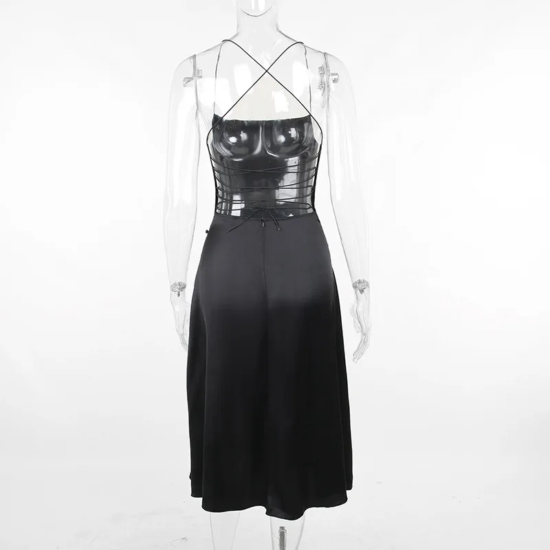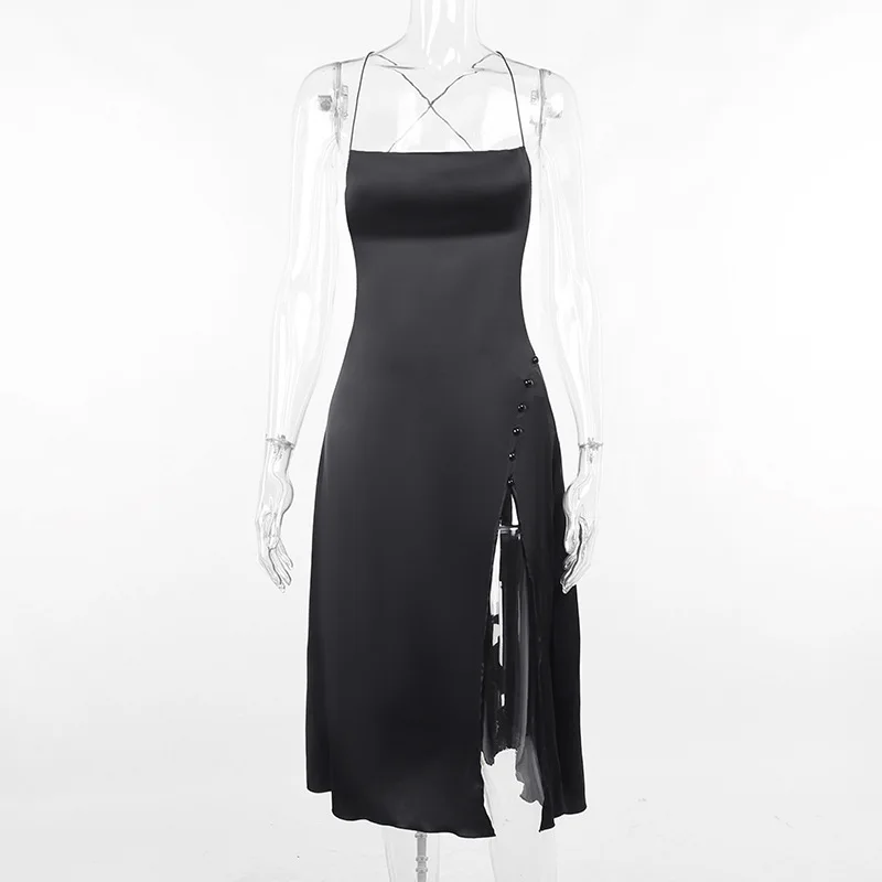 Women Sling Dresses Sexy Sleeveless Off Shoulder Backless Bandage Split Hem Solid Color Casual Club Party Summer Dresses