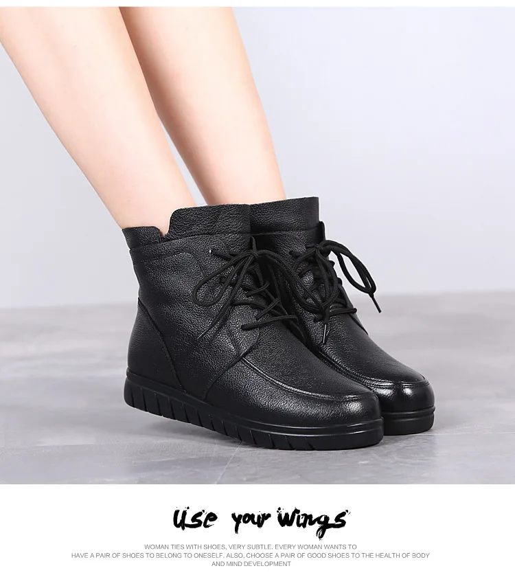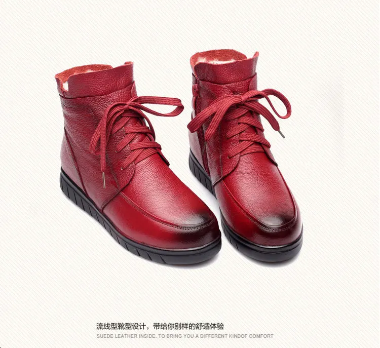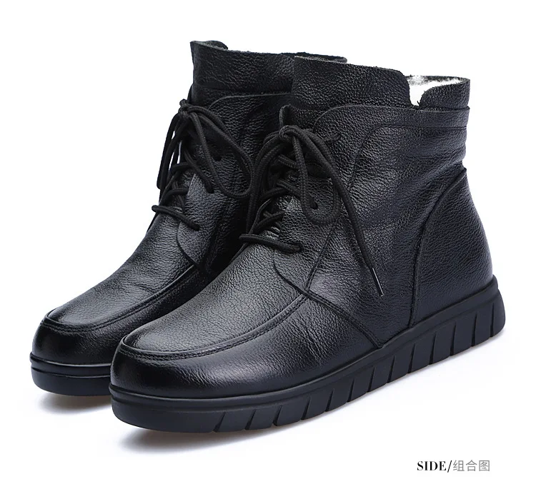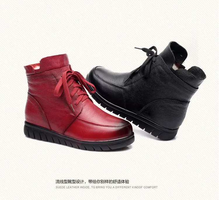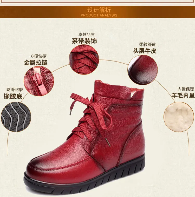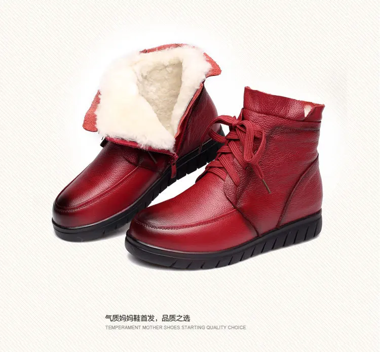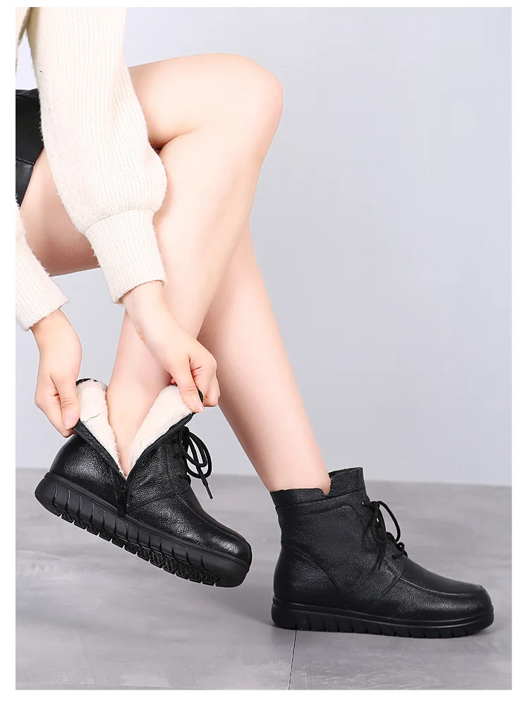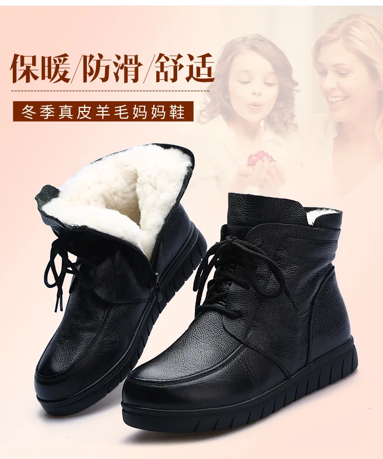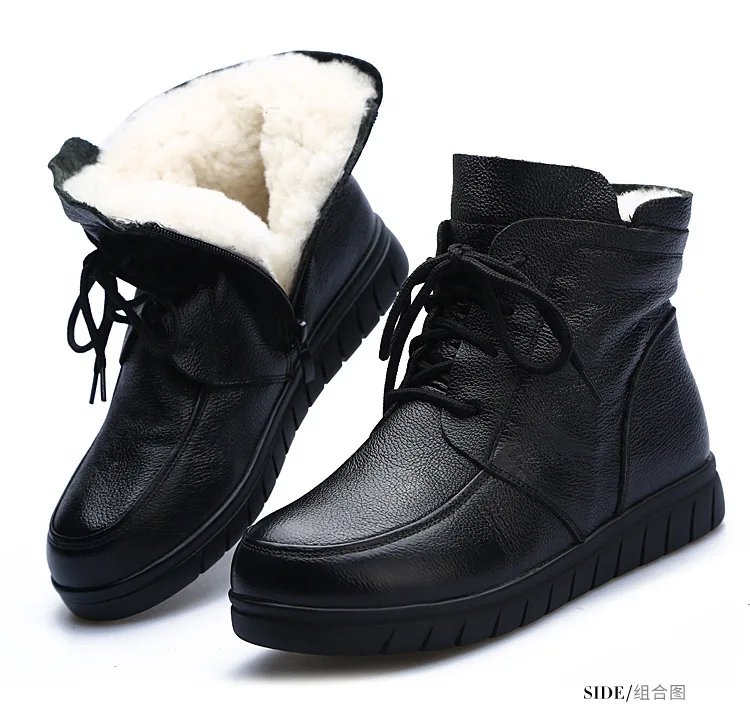 Women Snow Boots Vintage Genuine Leather Natural Wool Fur Winter Warm Ankle Boots For Women Flat Mother Shoes 2019