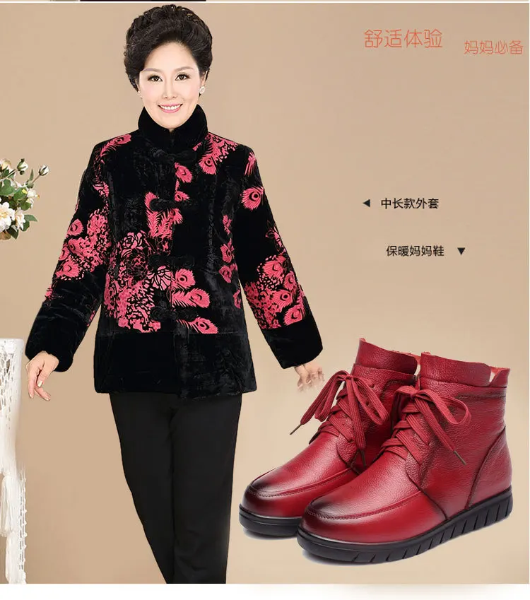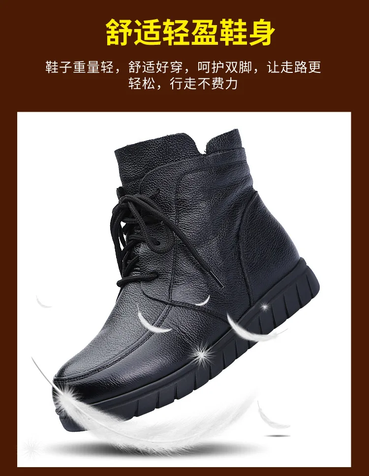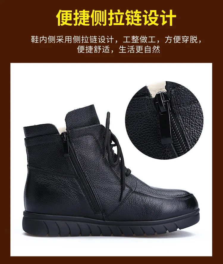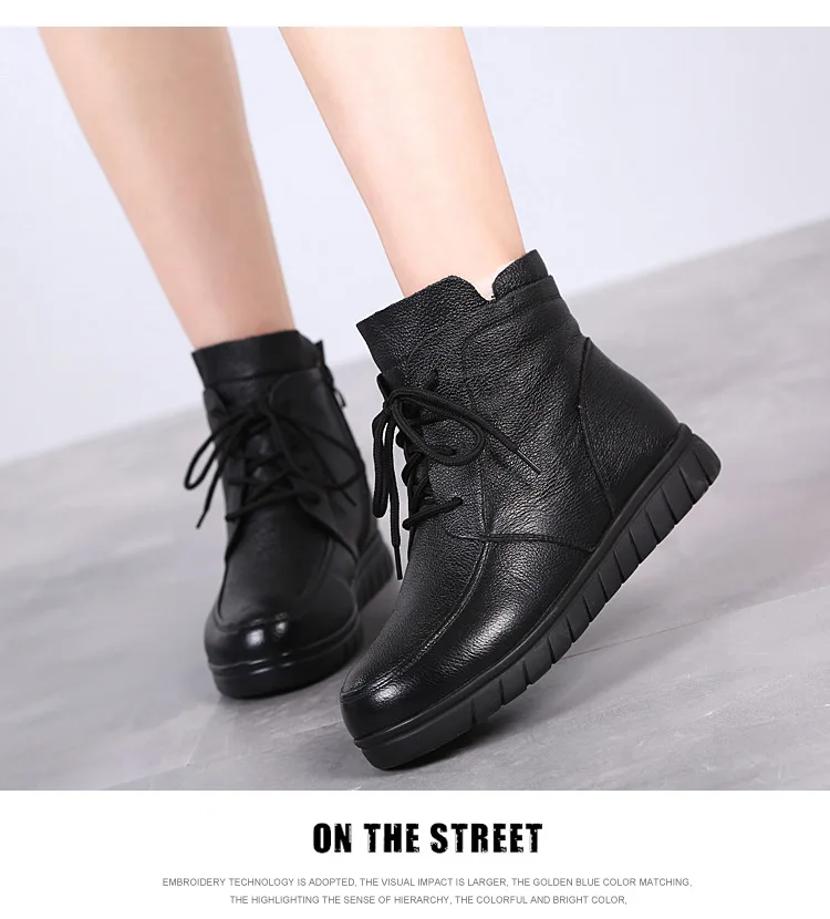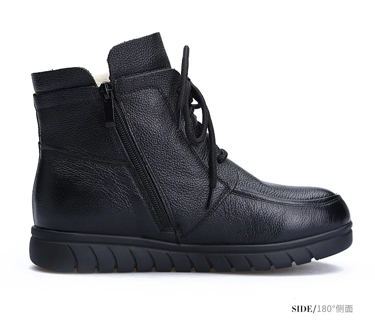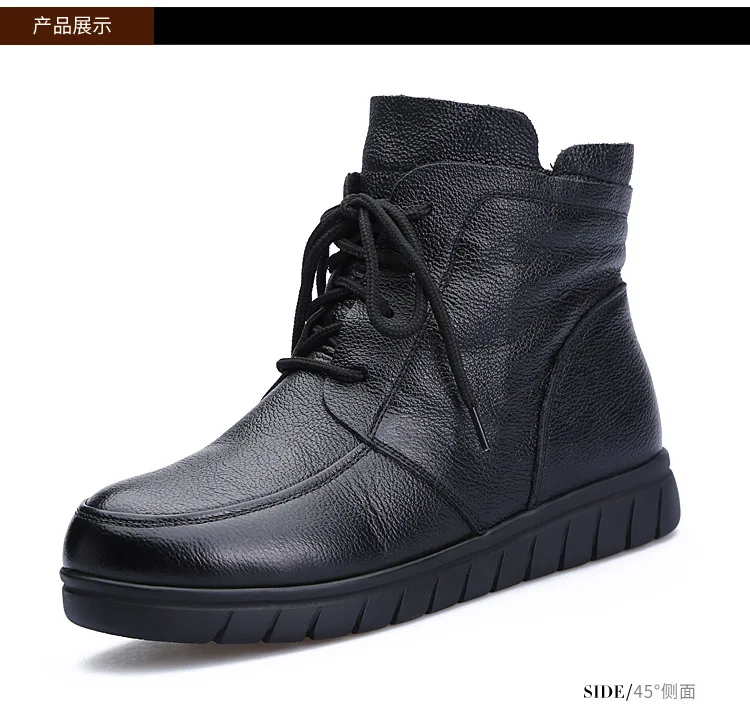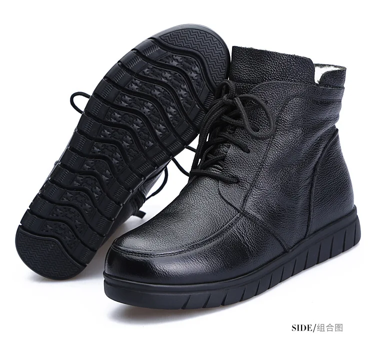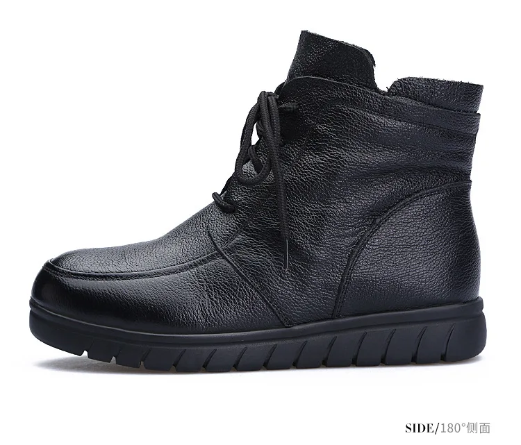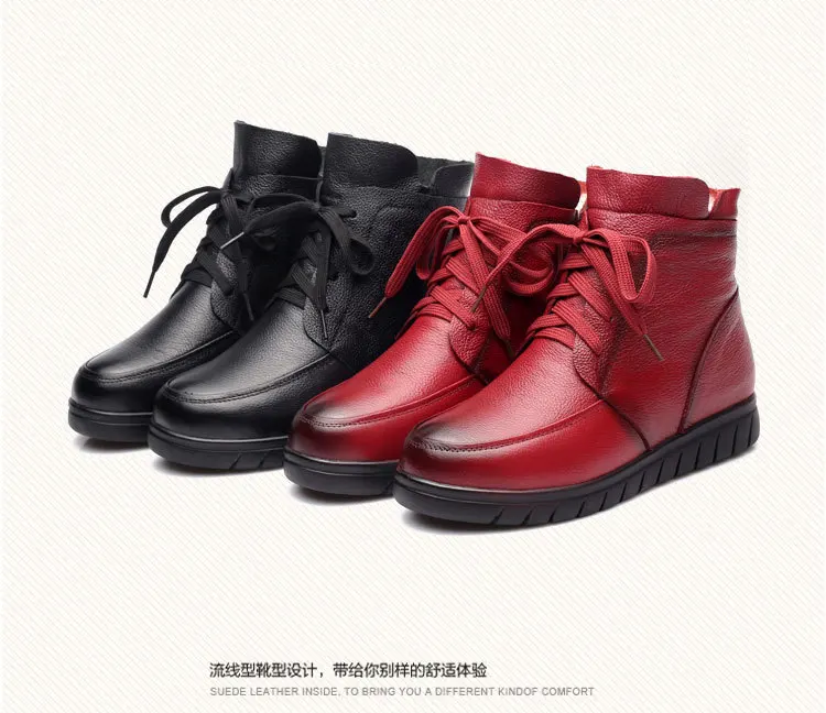 Women Snow Boots Vintage Genuine Leather Natural Wool Fur Winter Warm Ankle Boots For Women Flat Mother Shoes 2019
