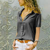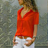 Women Solid White Blouse Tops Office Lady Work Chiffon Button 2022 Summer Short Sleeve Yellow Red Female Blouses Shirts Femme
