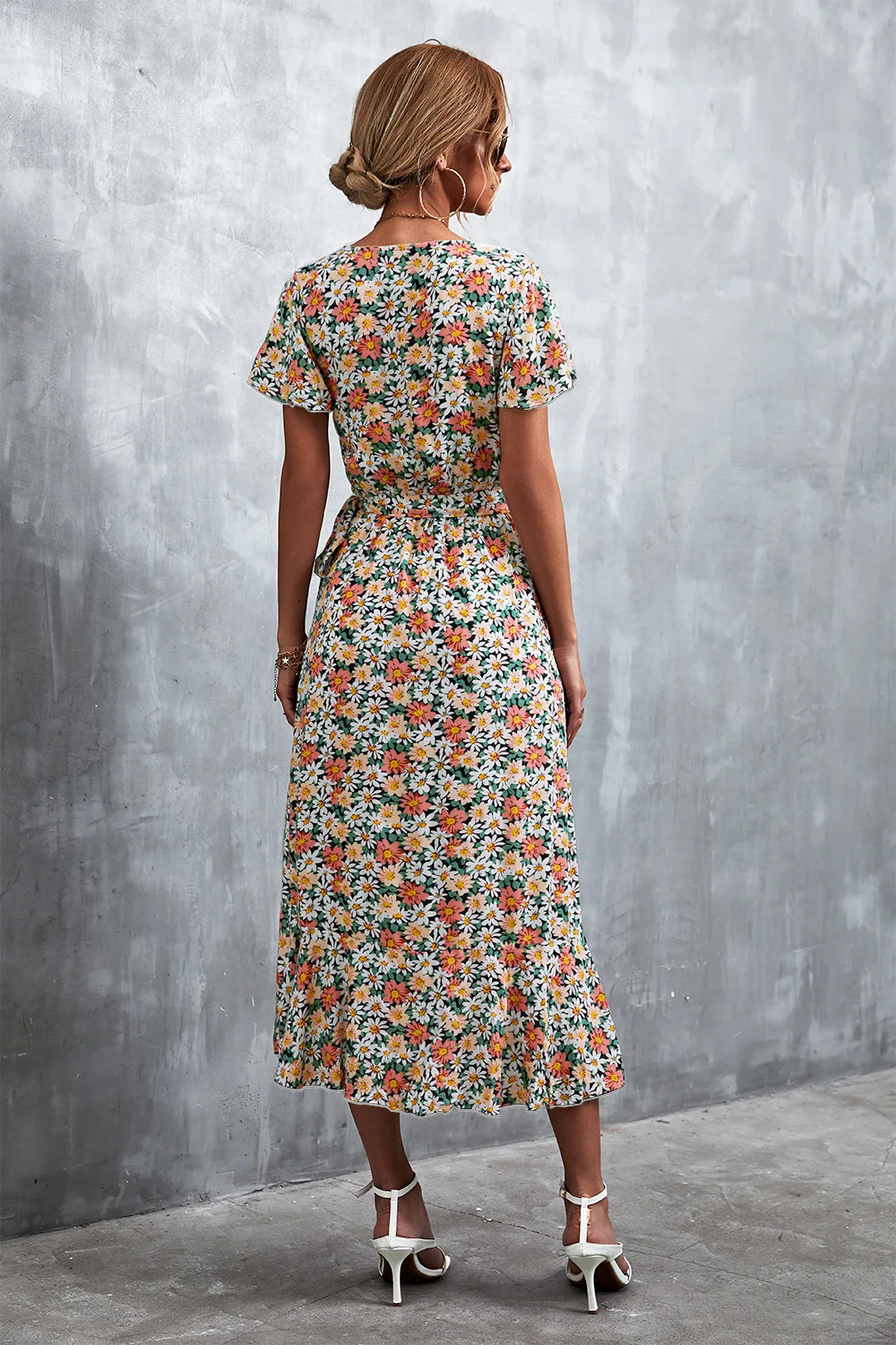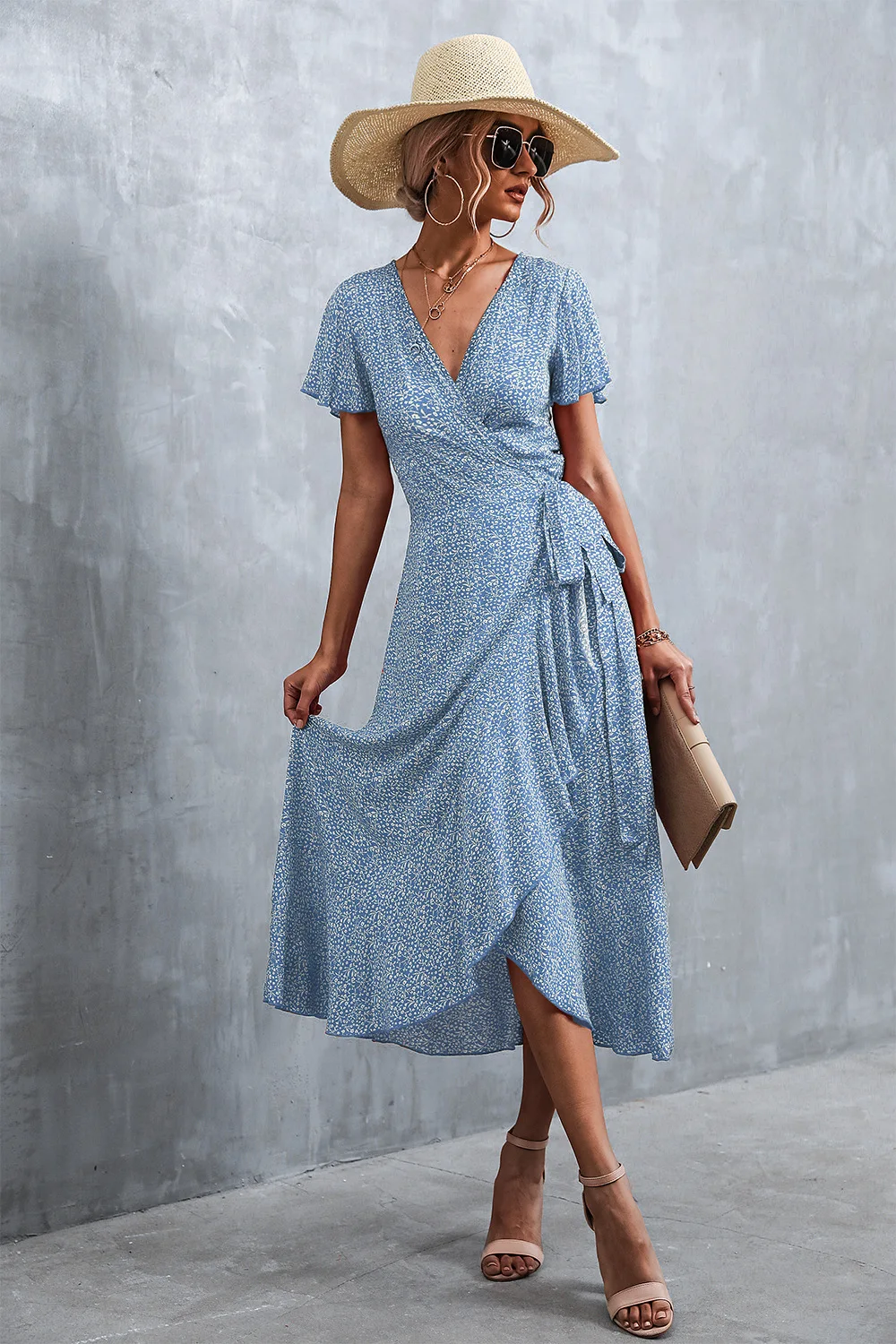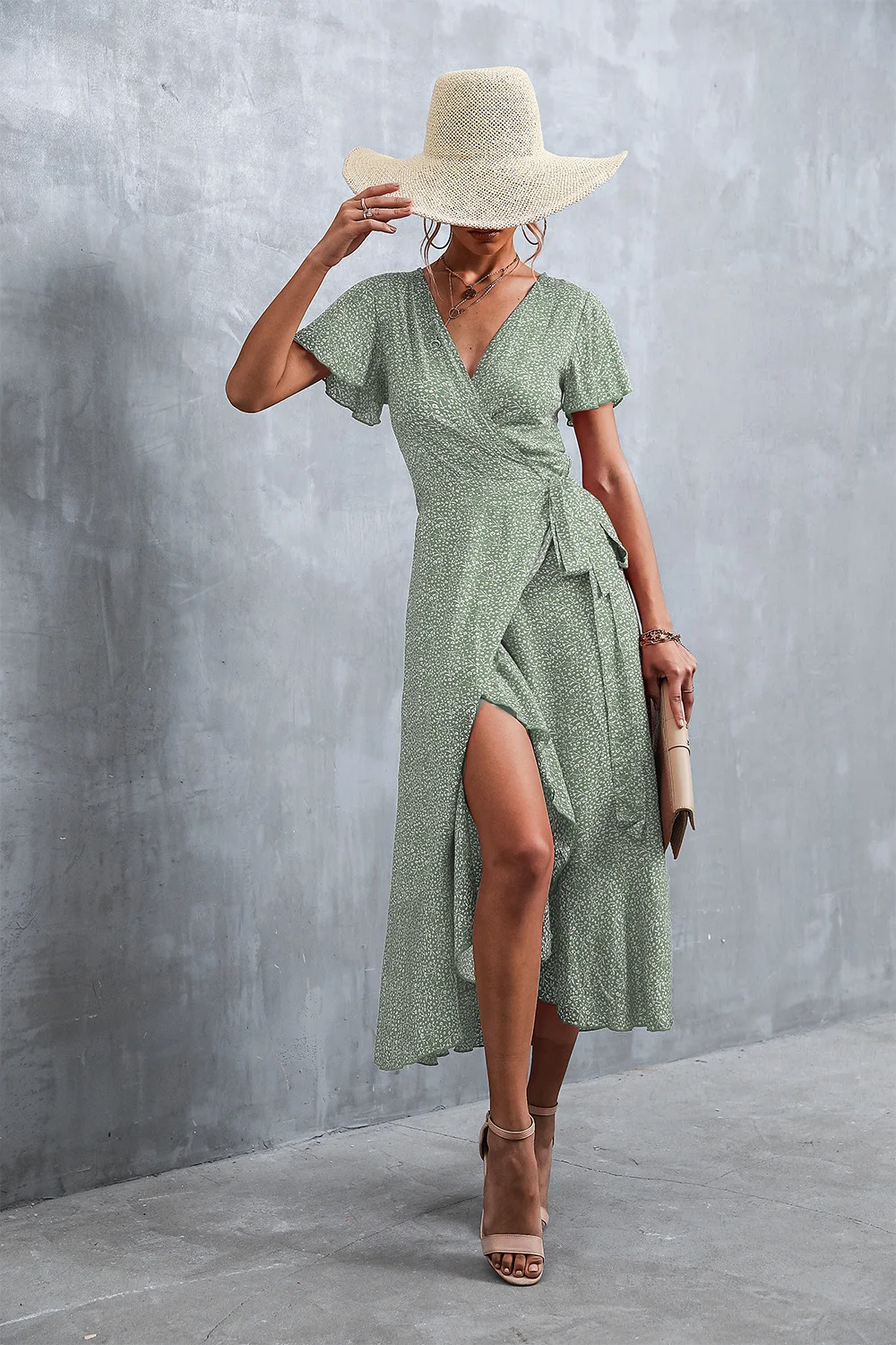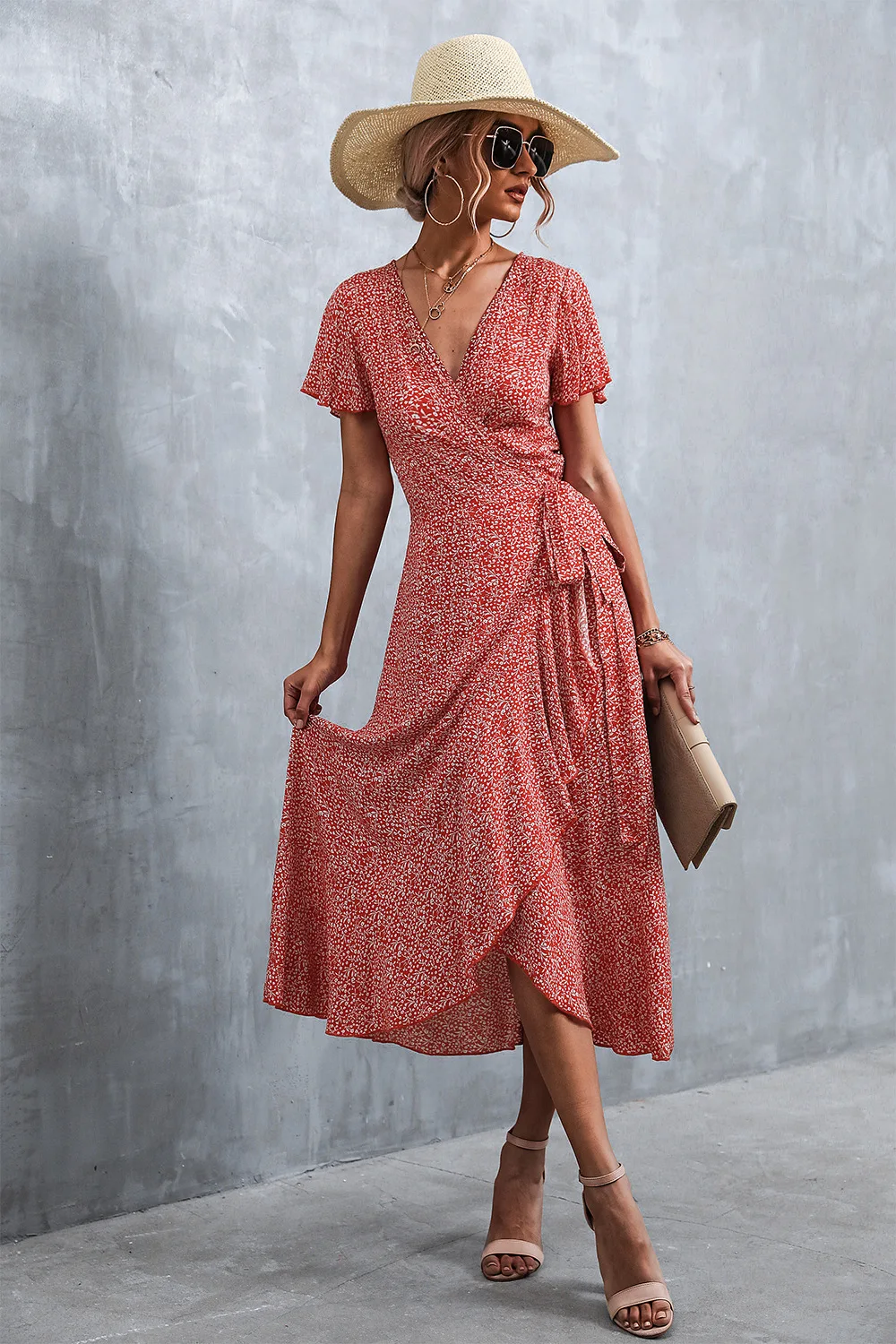 Women Summer Elegant Asymmetrical Long Dress Holiday Beach Casual V Neck Party Vestidos Vintage Floral Irregular Printed Dresses