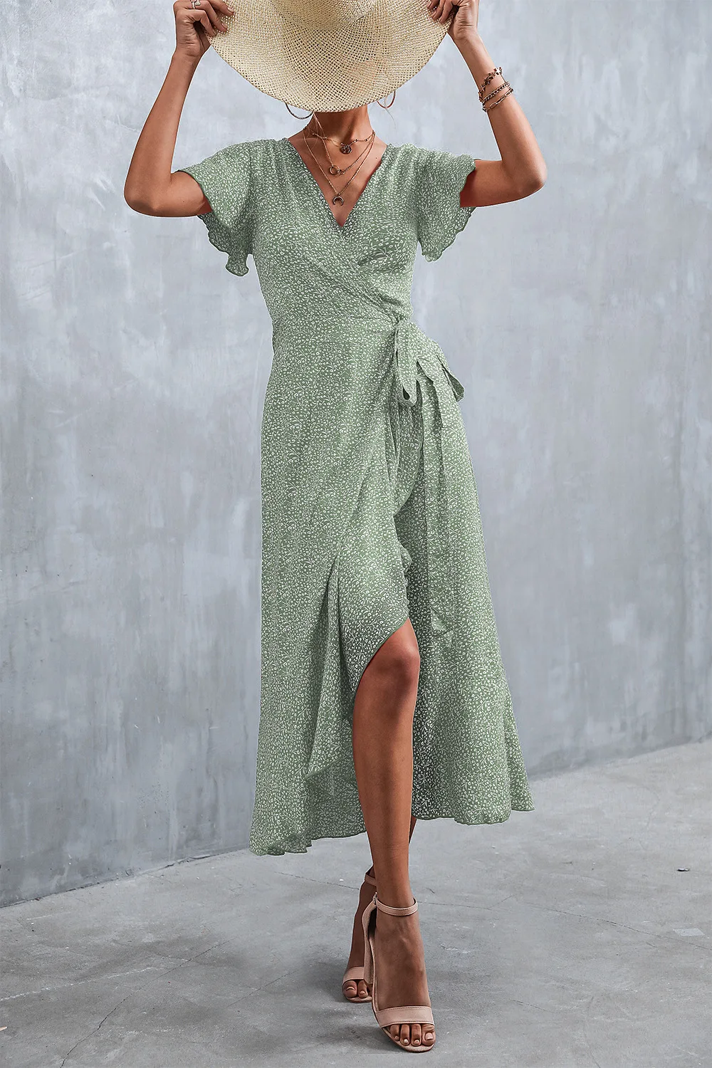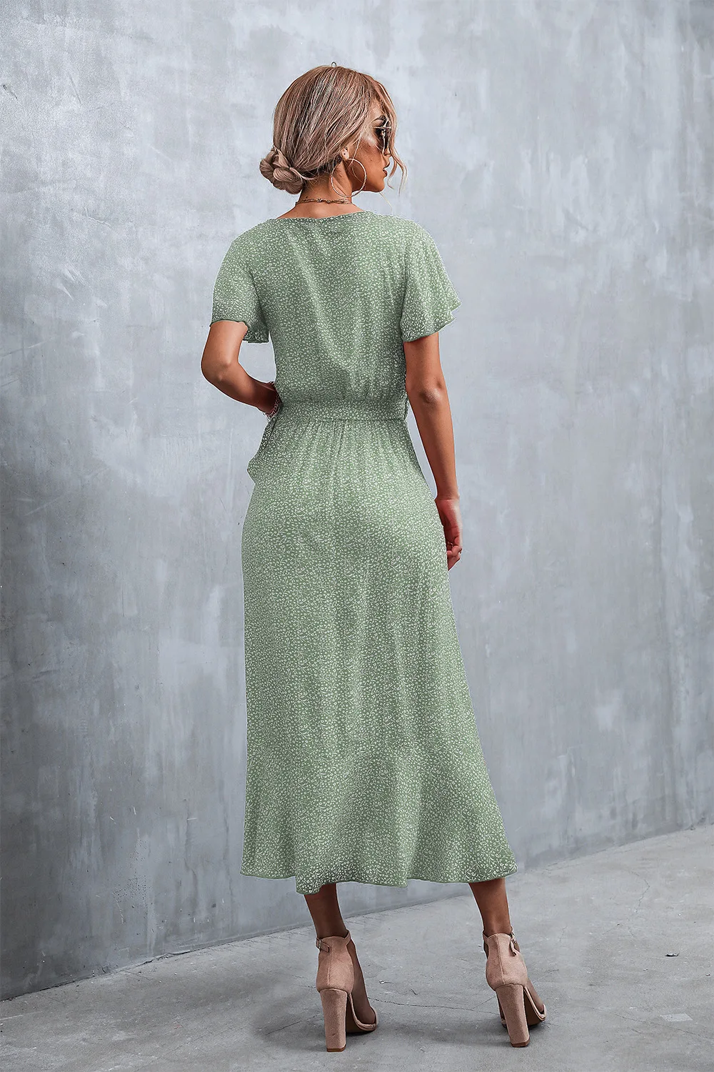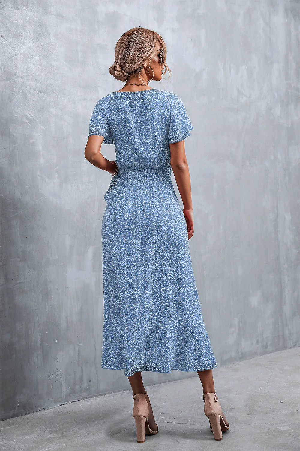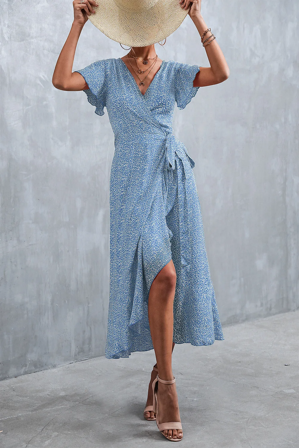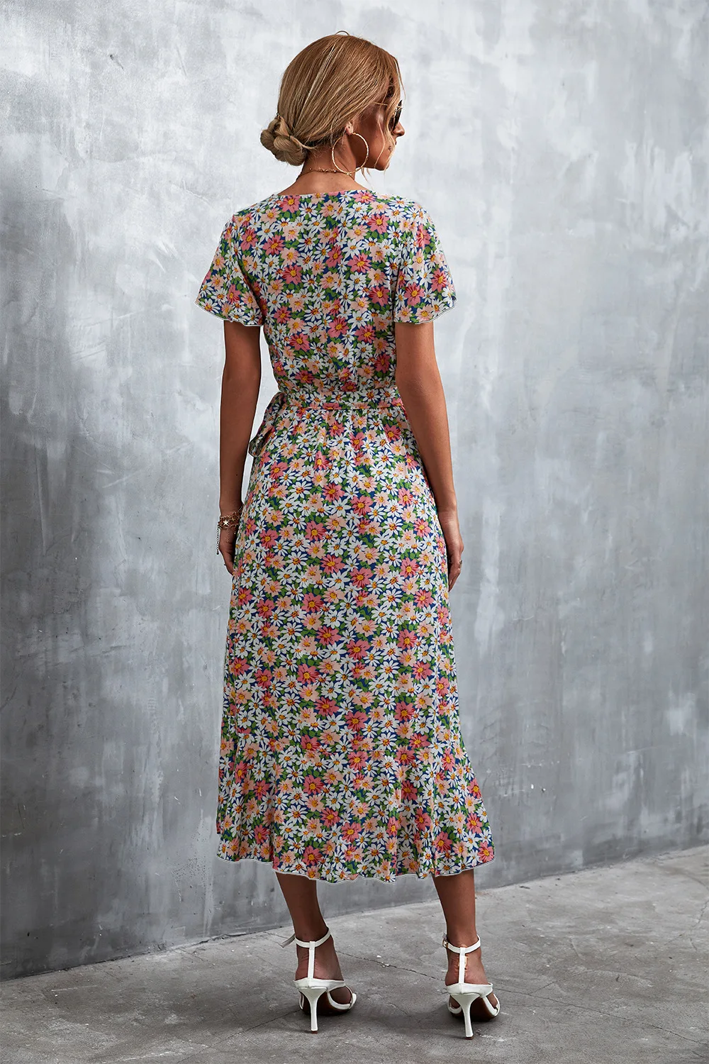 Women Summer Elegant Asymmetrical Long Dress Holiday Beach Casual V Neck Party Vestidos Vintage Floral Irregular Printed Dresses