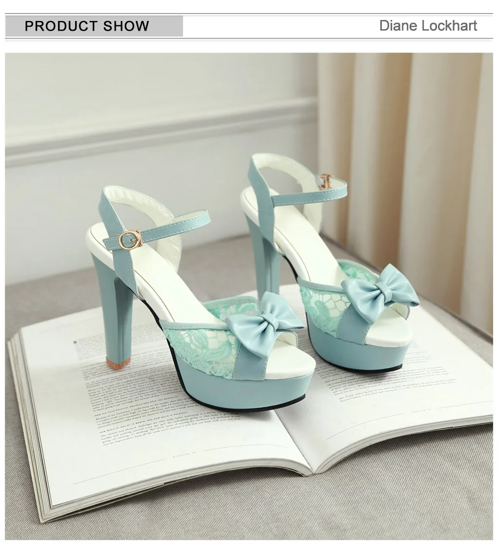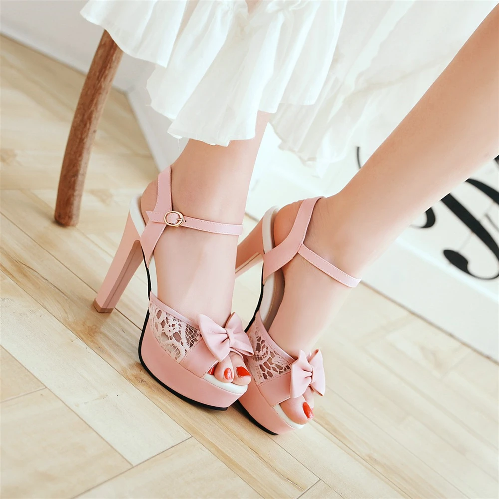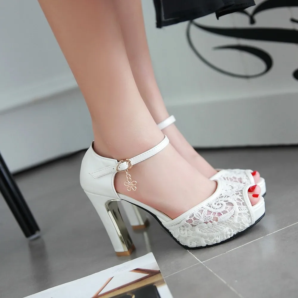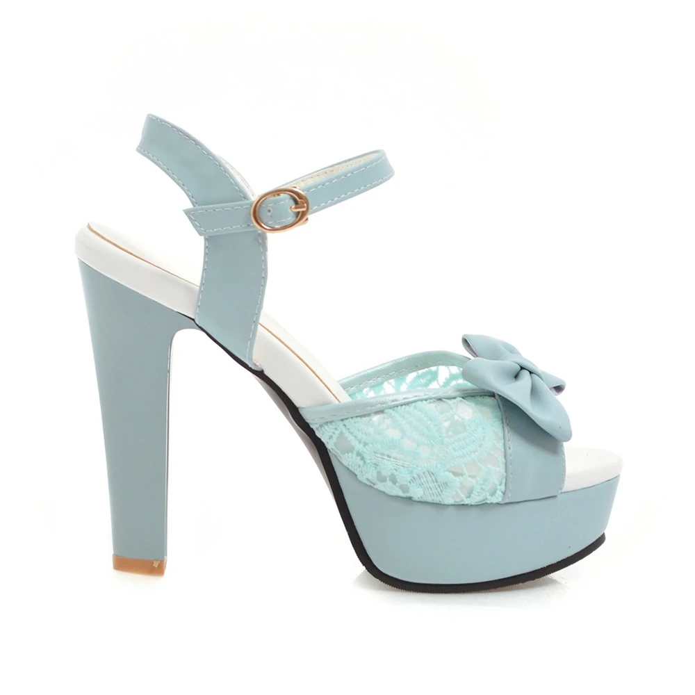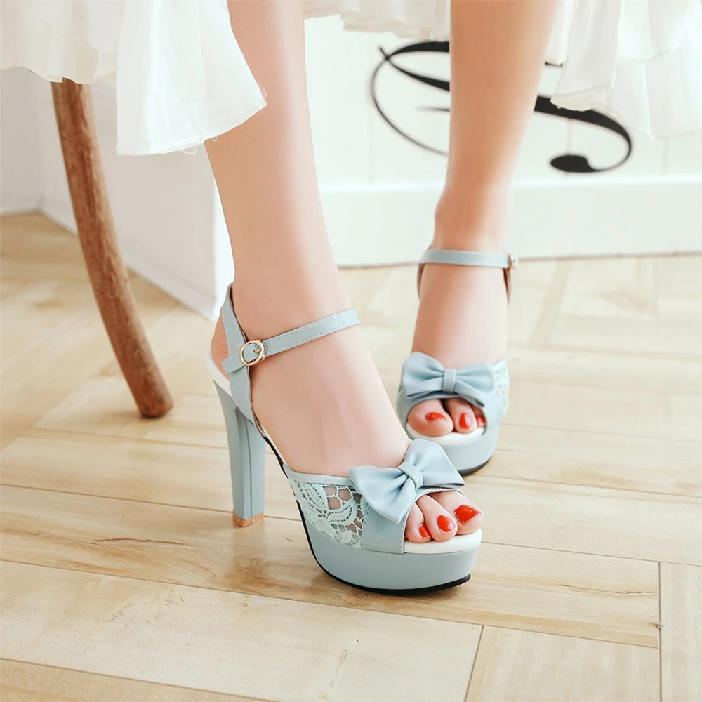 Women Summer Lace Bow Mesh Shoes Fish Mouth High Heel Ladys Platform Sandals Evening White Dress Wedding Female Zapatos De Mujer