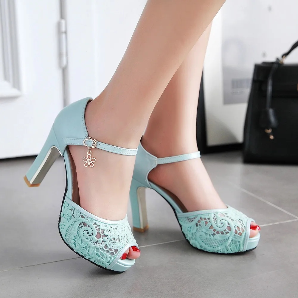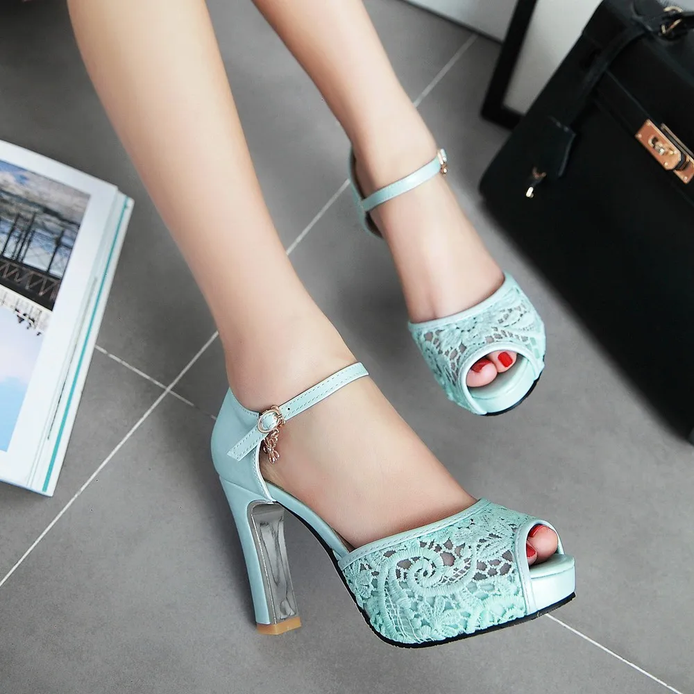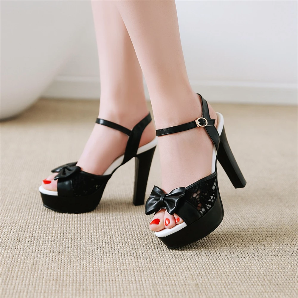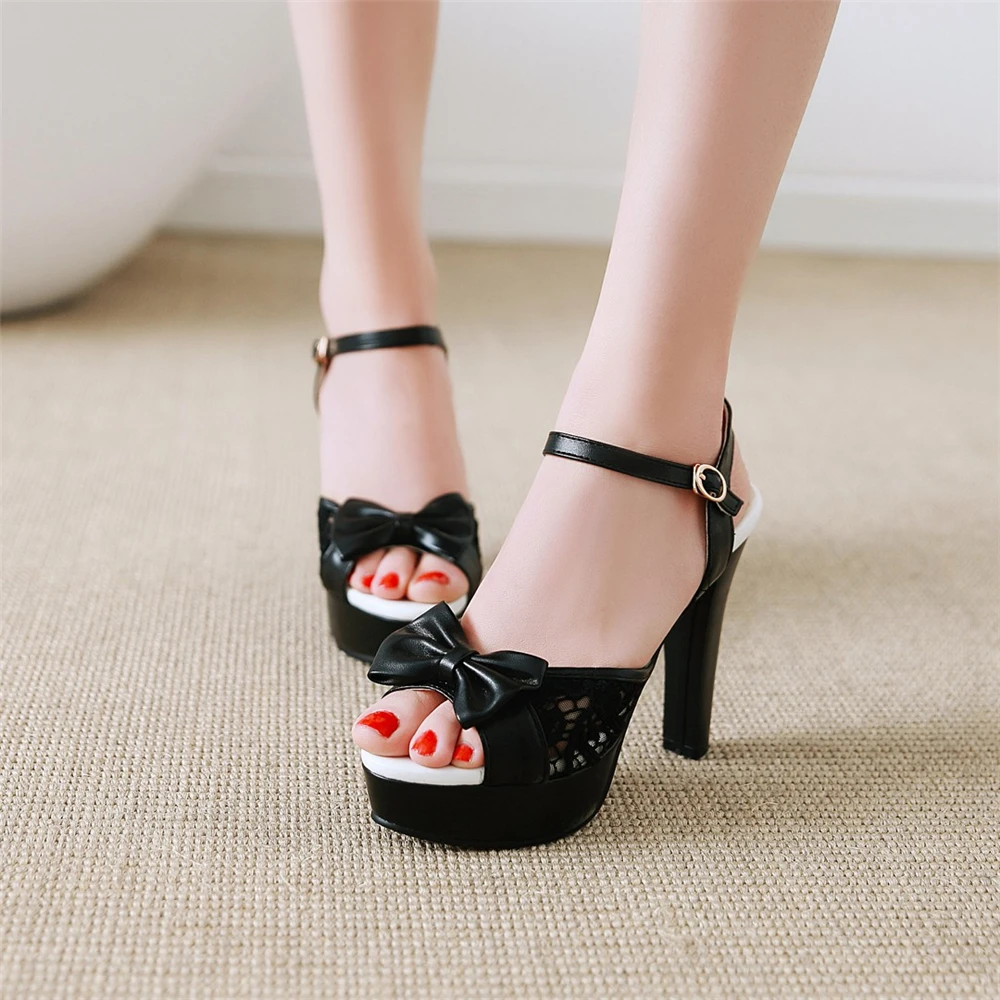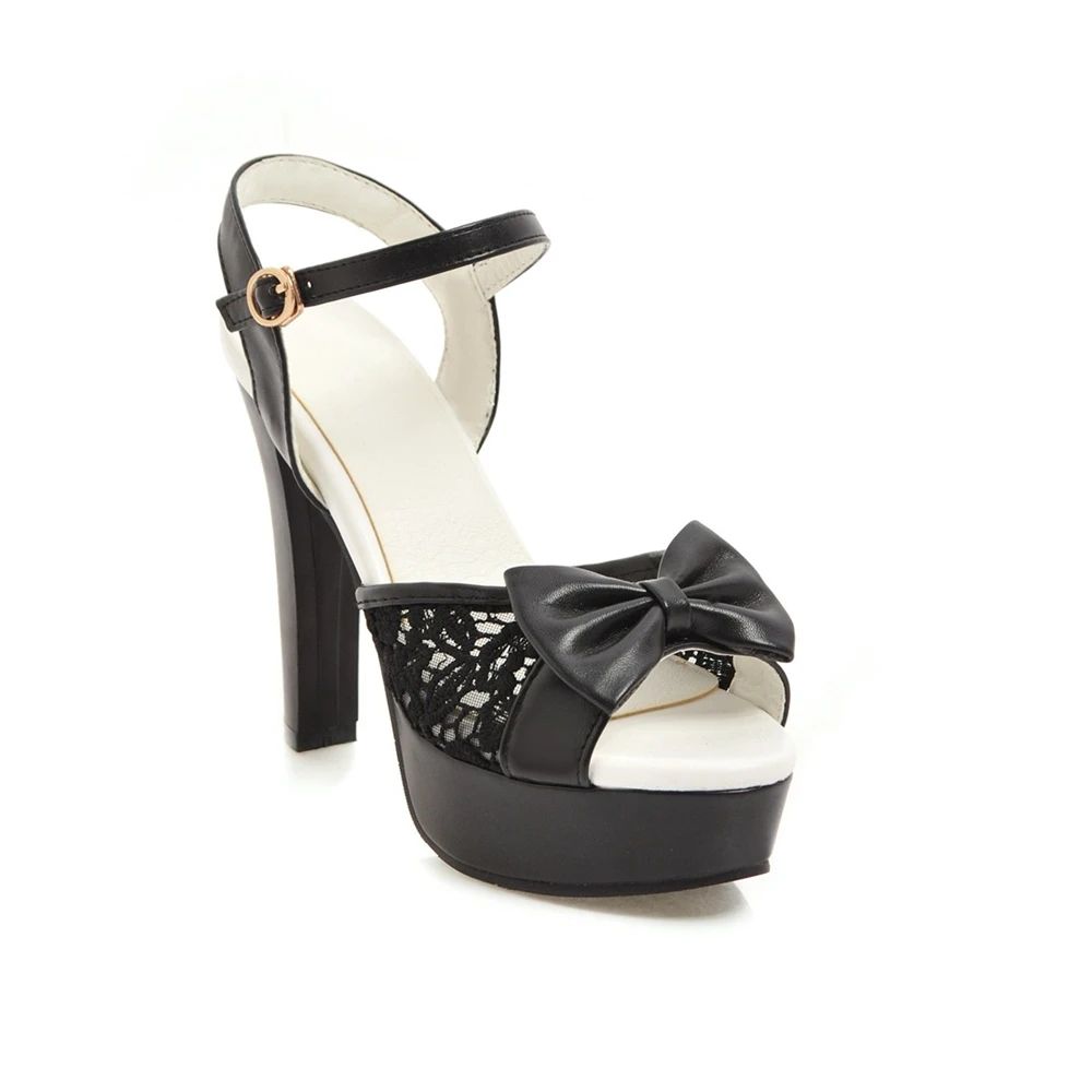 Women Summer Lace Bow Mesh Shoes Fish Mouth High Heel Ladys Platform Sandals Evening White Dress Wedding Female Zapatos De Mujer