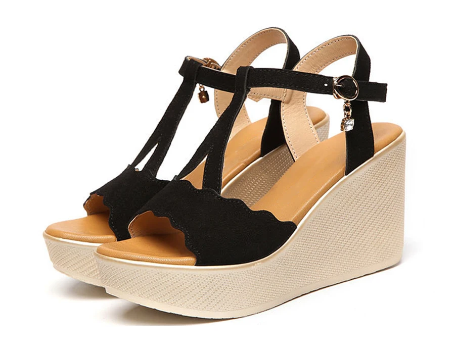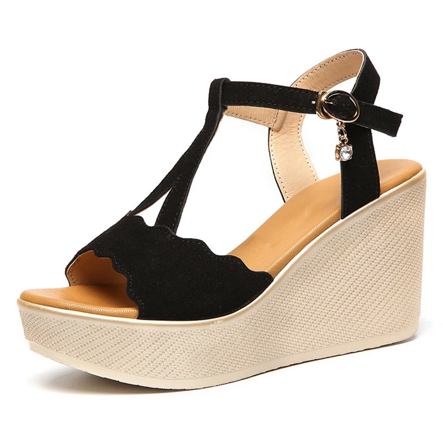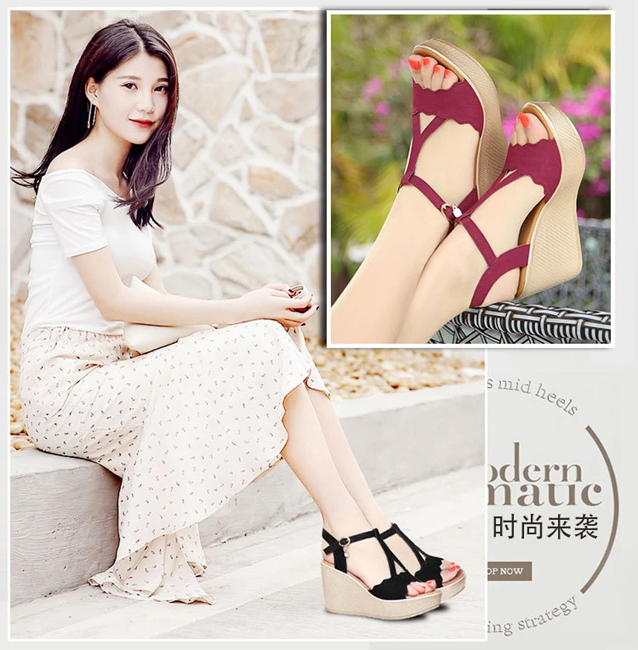 Women Summer Platform Sandals Female Fish Mouth Platform High Heels Wedge Shoes Lady Sexy Buckle Slope Sandals Big size 34-43