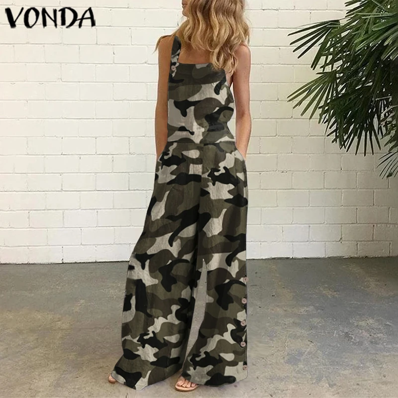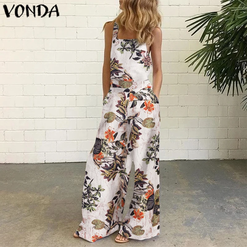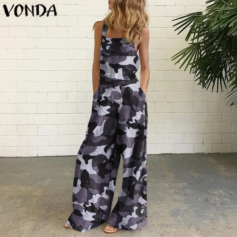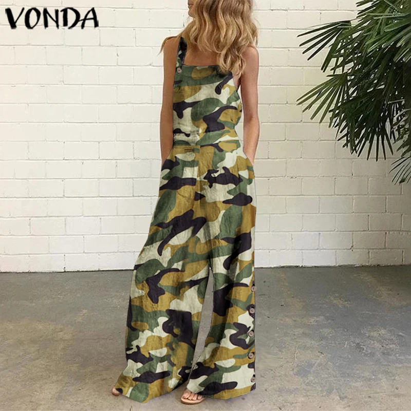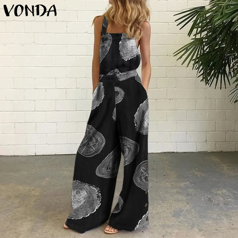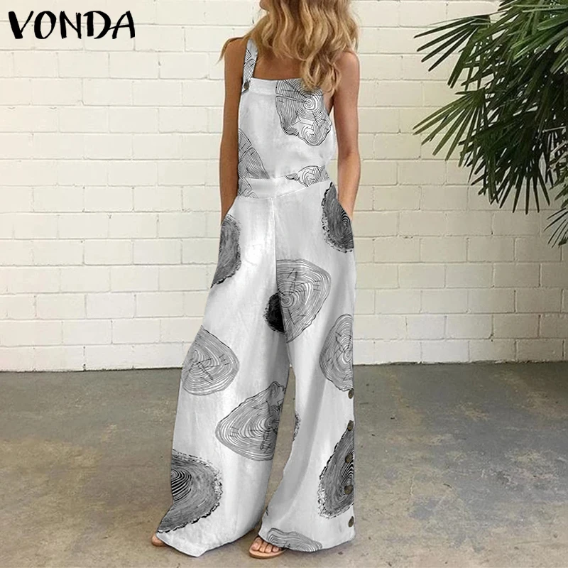 Women Summer Sexy Sleeveless Rompers 2021 VONDA Casual Loose Solid Party Playsuits Femme Backless Office Overalls 5XL Jumpsuits