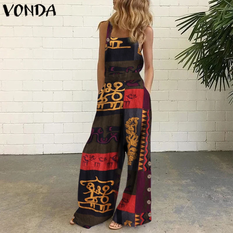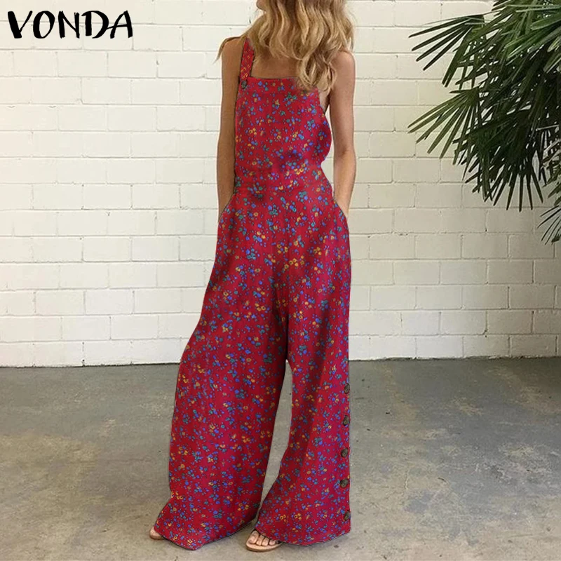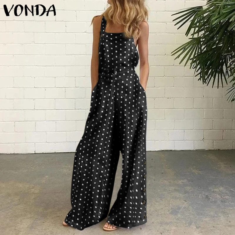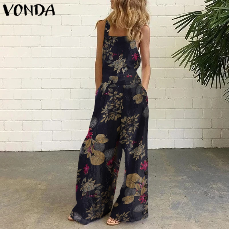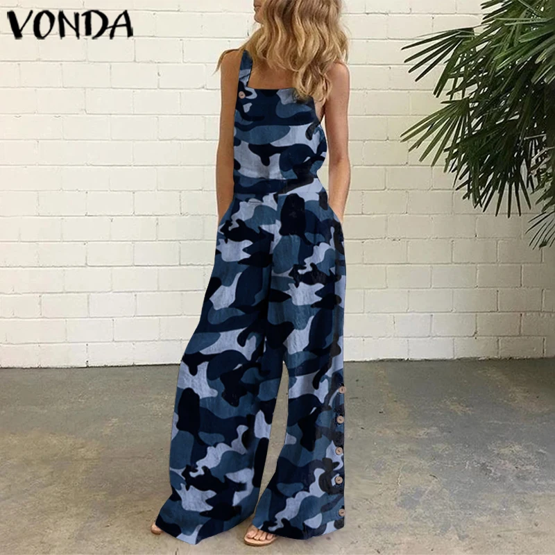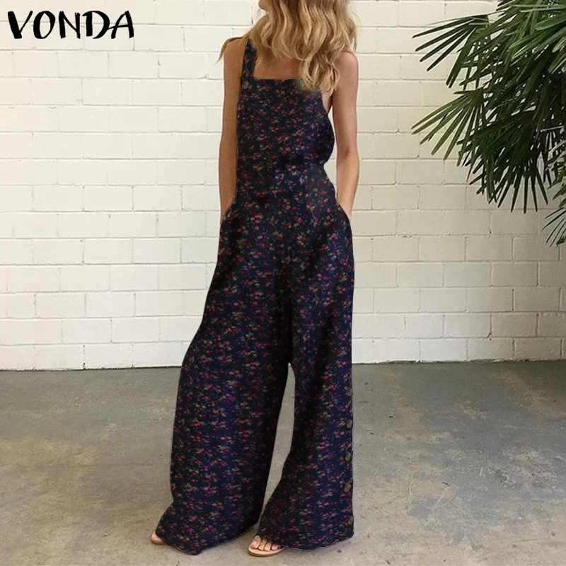 Women Summer Sexy Sleeveless Rompers 2021 VONDA Casual Loose Solid Party Playsuits Femme Backless Office Overalls 5XL Jumpsuits