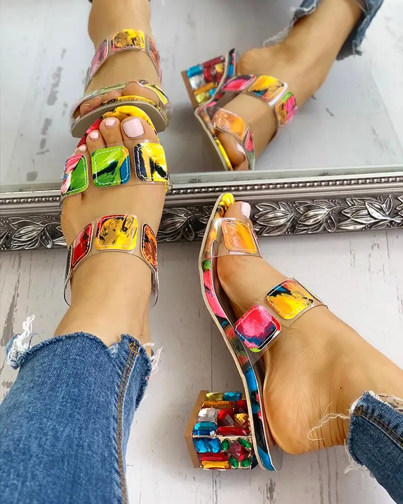 Women Wedges Sandals Summer Bling Non-slip 4cm Rhinestone Fish Mouth Flat Sandals Outdoor Beach Female Fashion Slippers