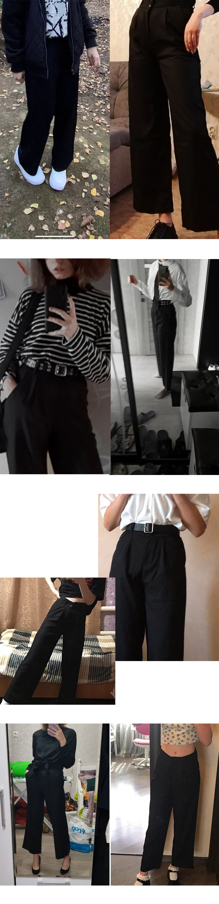 Women Wide Leg Pants 2022 Autumn High Waist Pockets Button Fly Fashion Trousers Long Pants Casual Bottoms All Match B06810K