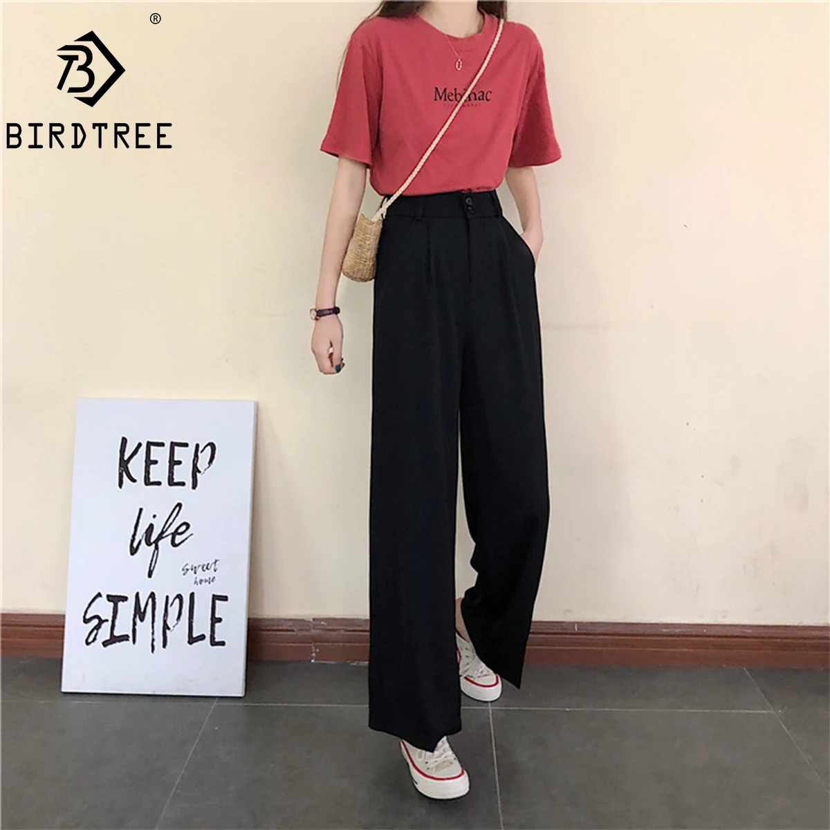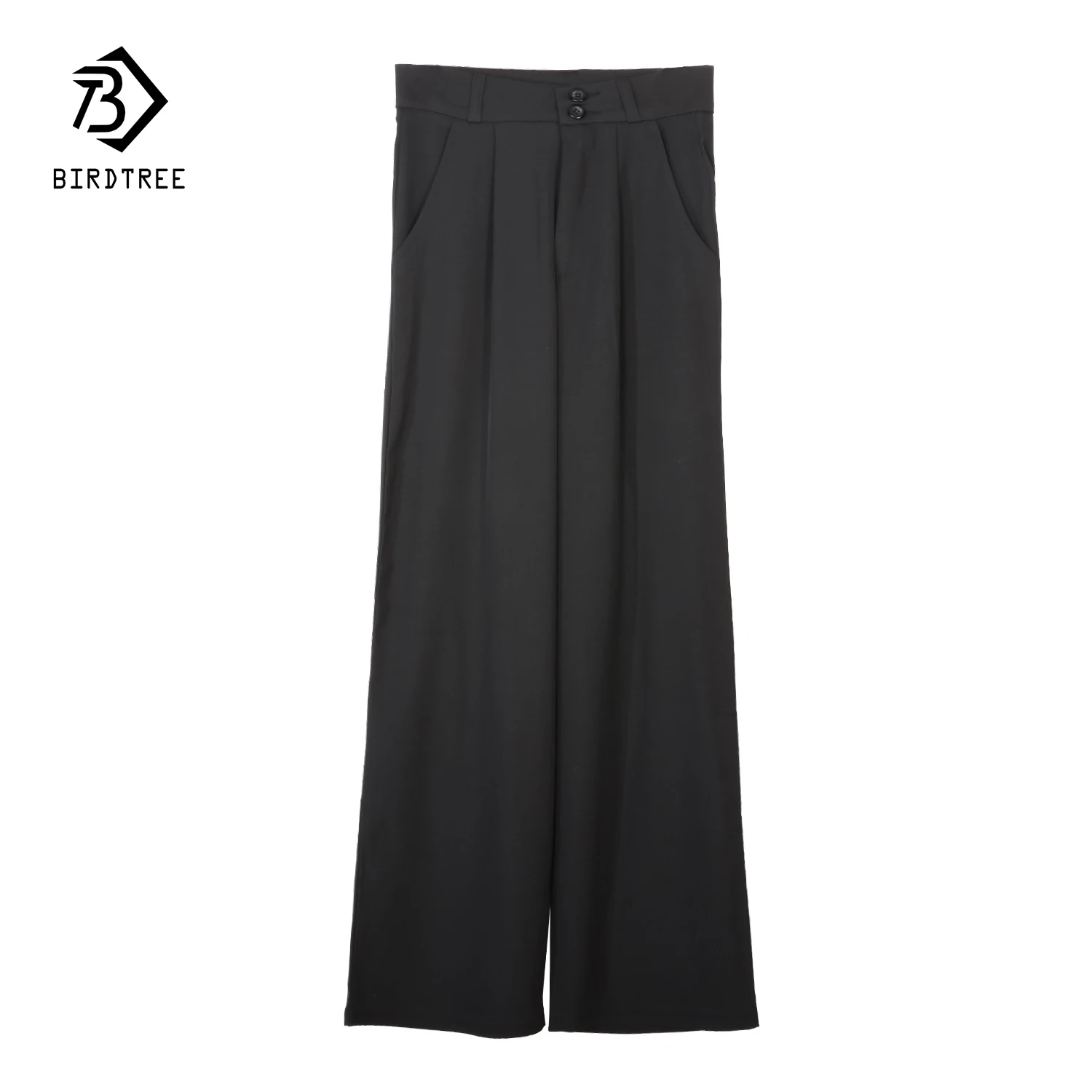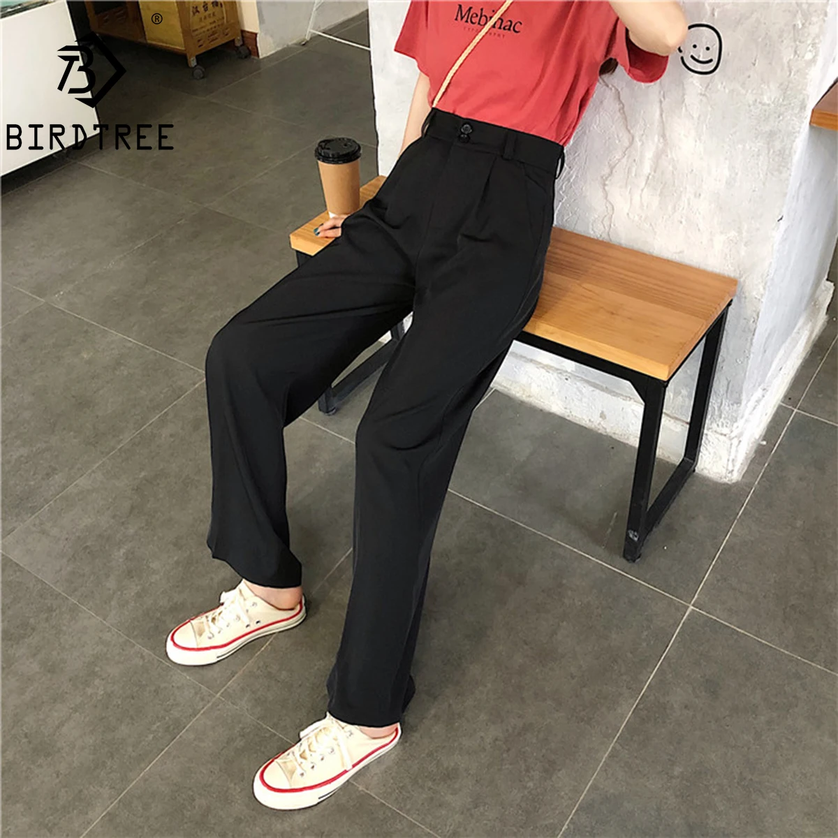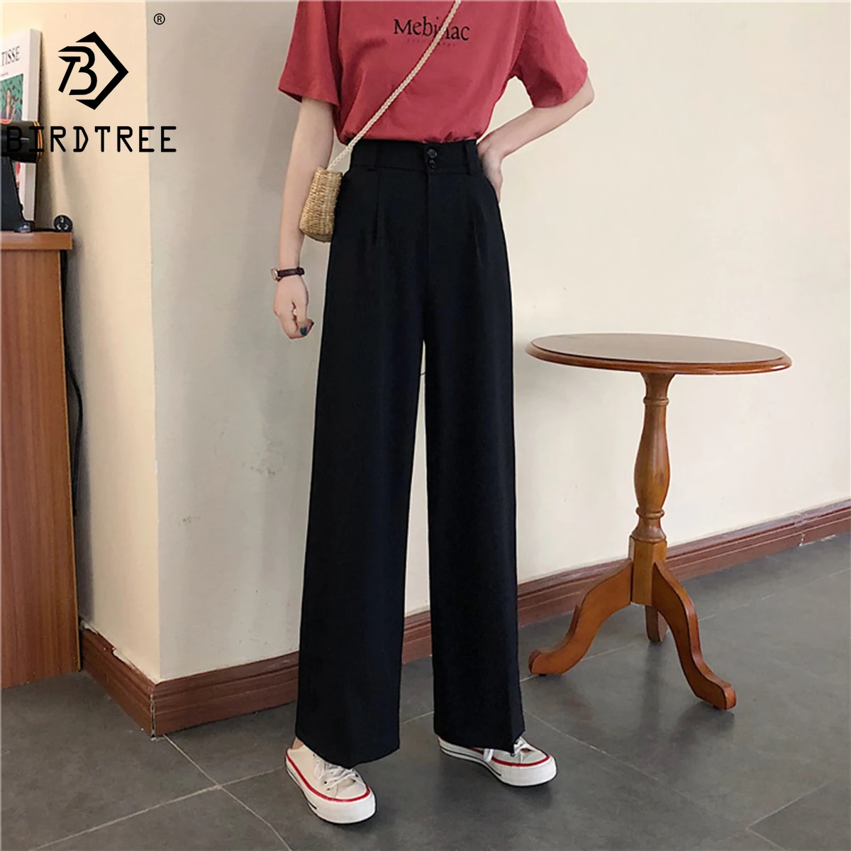 Women Wide Leg Pants 2022 Summer Thin Fabric Classic High Waist Pockets Button Fly Long Palazzo Trousers Korean Casual Bottoms
