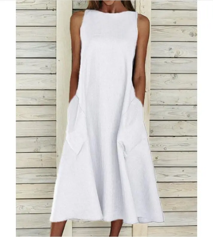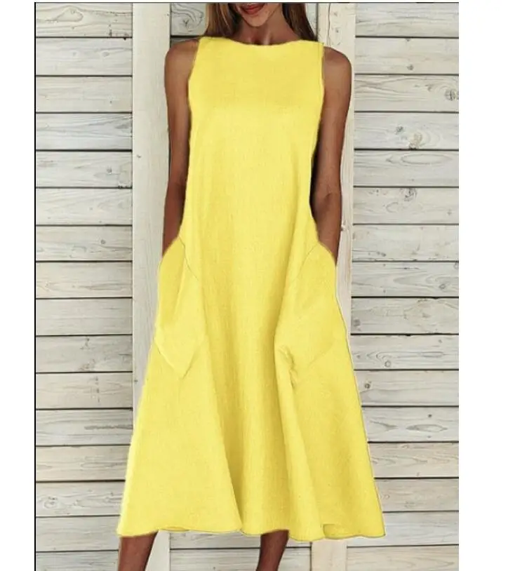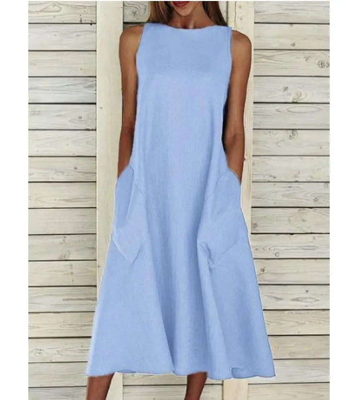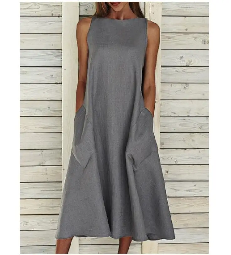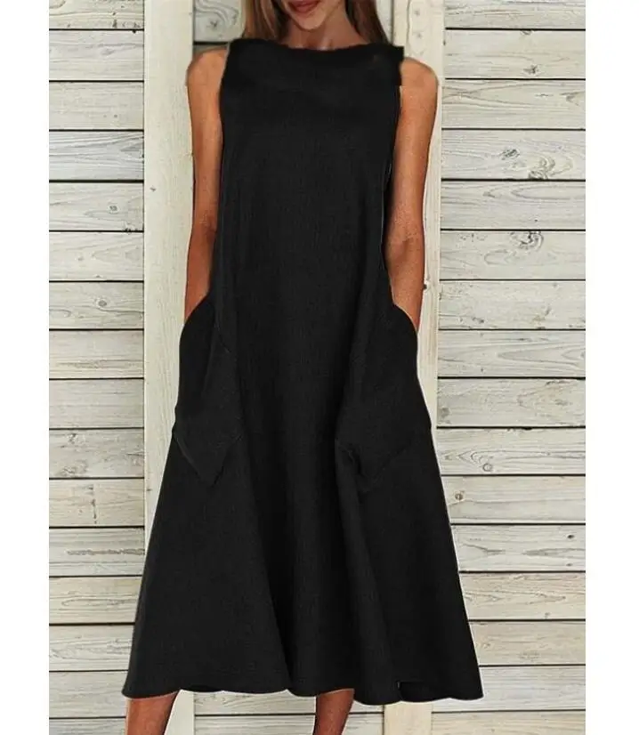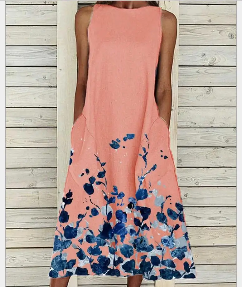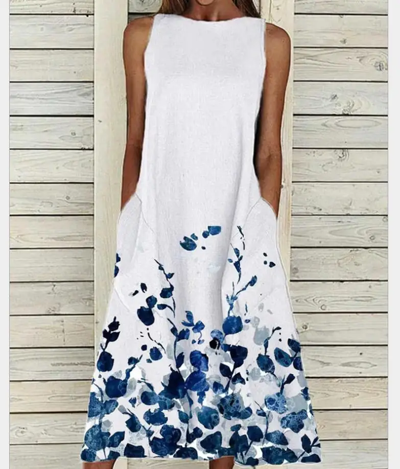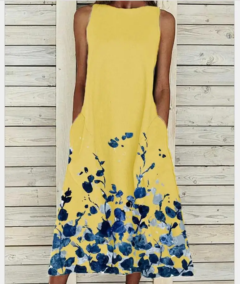 Women's A-Line Dress Midi Dress – Sleeveless Pocket Summer Basic Holiday printed Long Maxi Dress
