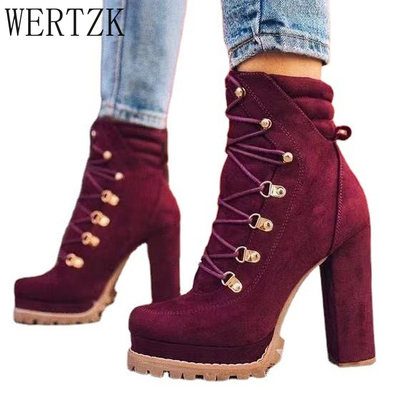 Women’s Ankle Boots High Heels Platform Female Lace Up Women Shoes Buckle Woman Short Boot New Botas Femininas Plus Size 35-43