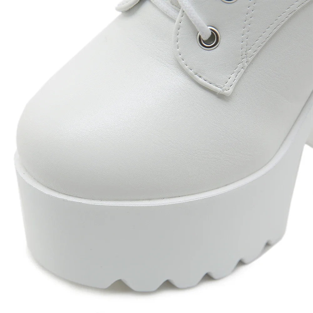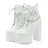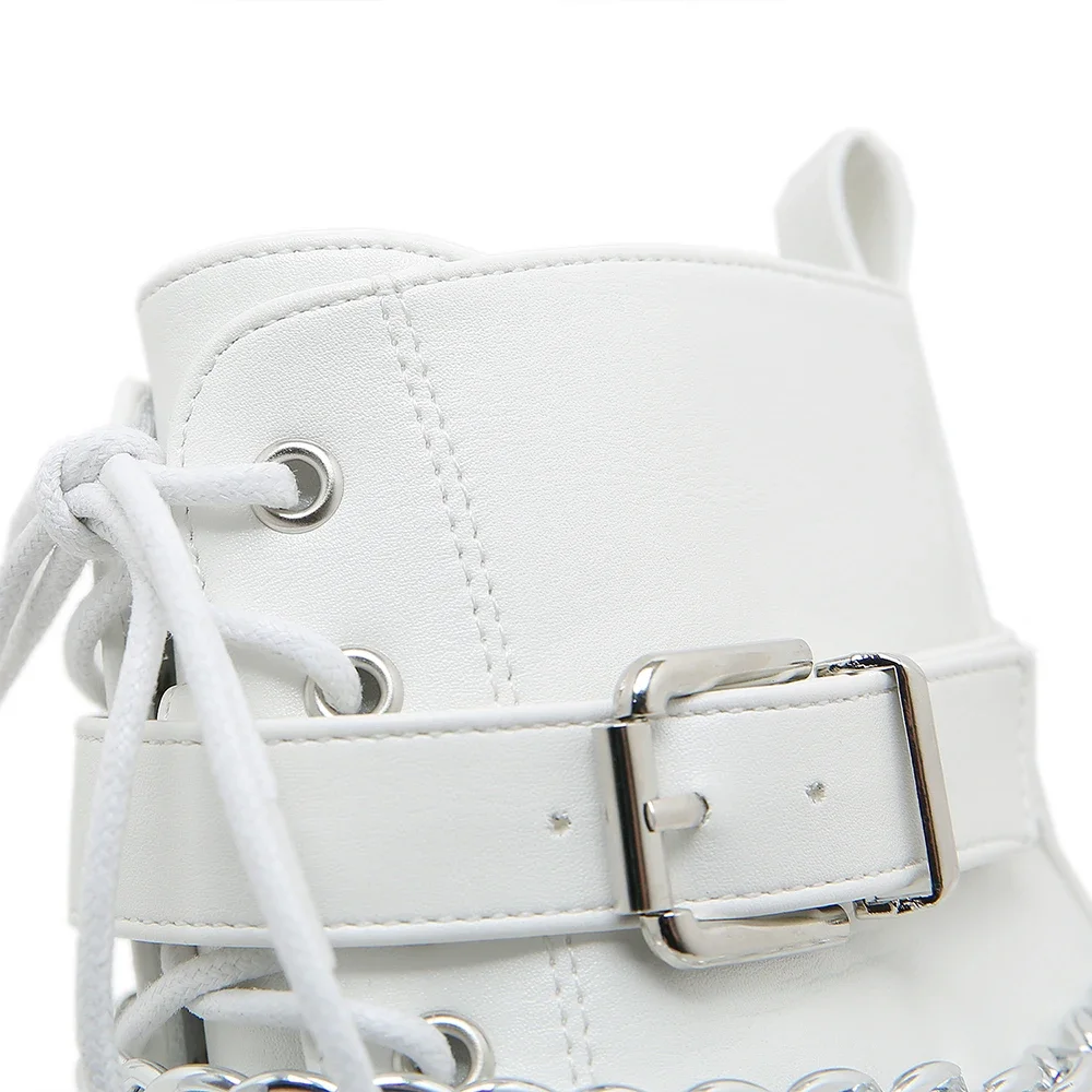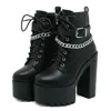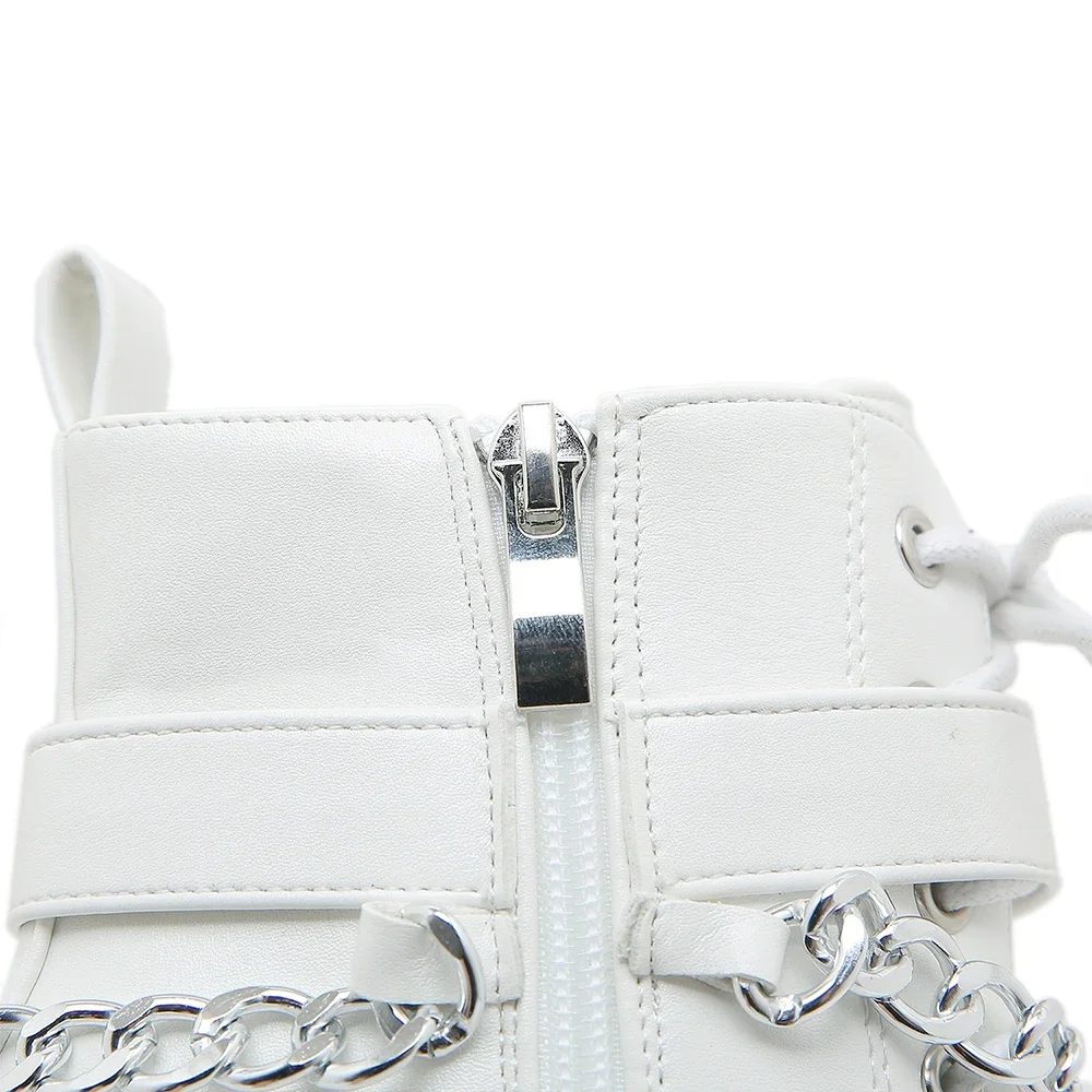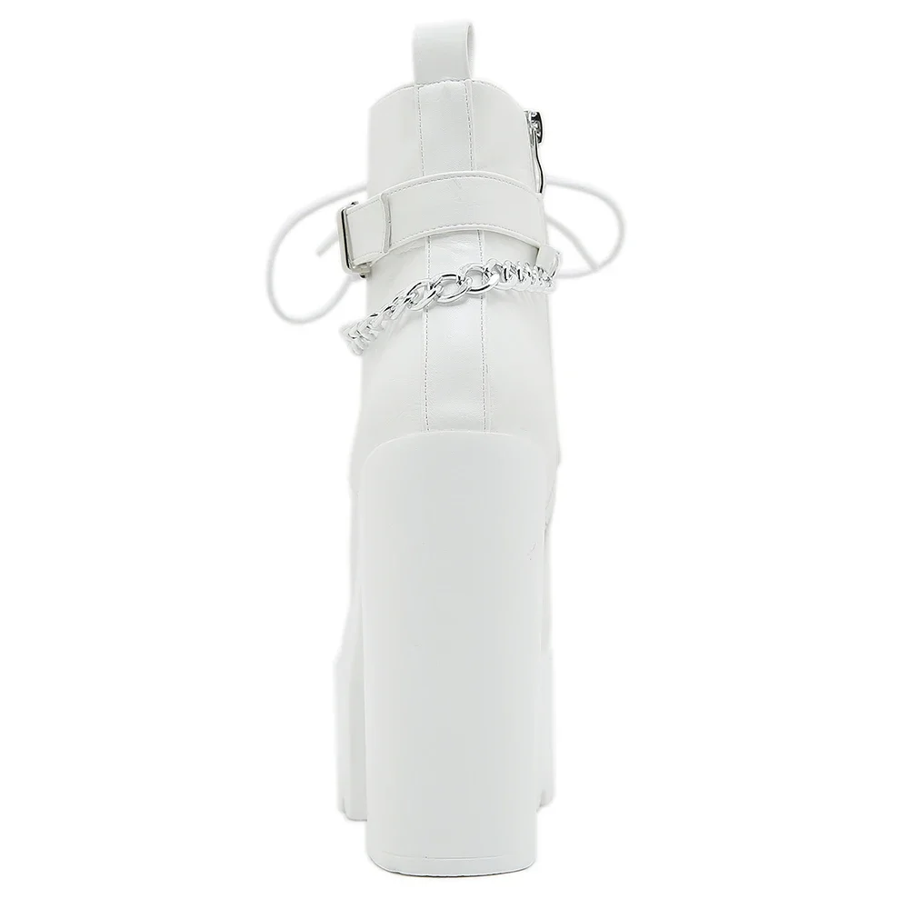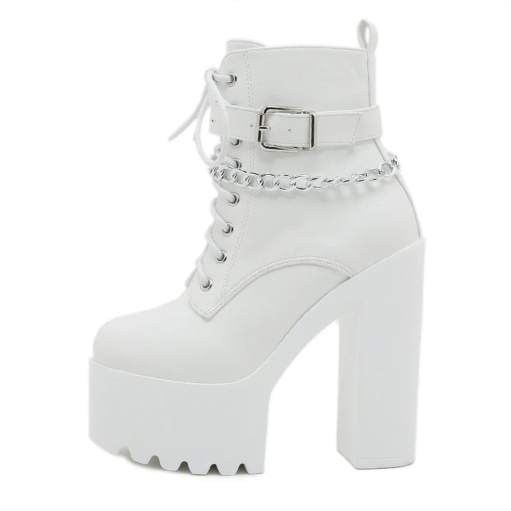 Women’s Chain Decor Block Heeled Boots Fashion Lace Up Side Zipper Platform Boots Stylish Ankle Boots High Heels