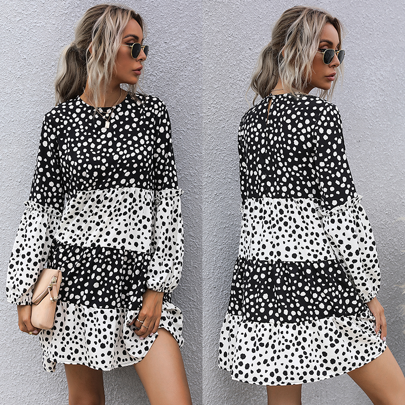 Women's Dress British Style Polka Dot Lovely Long Sleeve Dress Casual Holiday Loose Mini Dress Cascading Ruffles Blouses Dress
