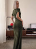 Women’s Elegant O Neck Maxi Dress Short Sleeve Slim High Waist Shirring Dress Sexy Side Slit Evening Club Bodycon Dress Lady