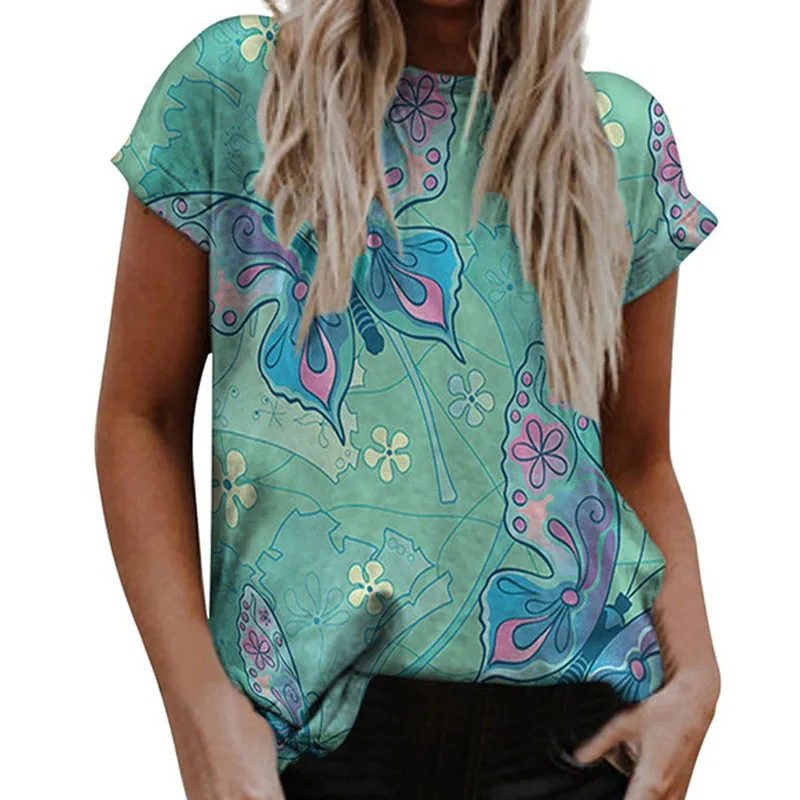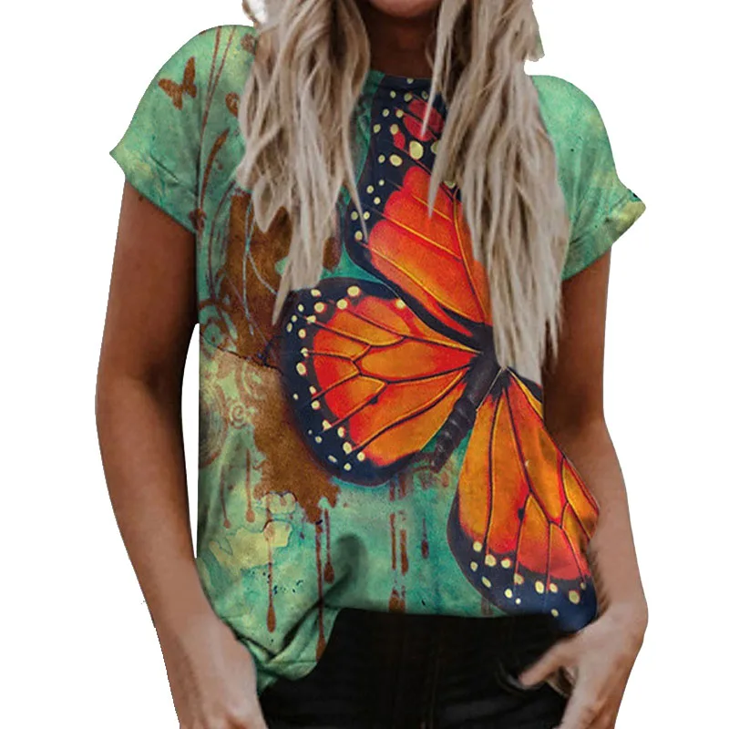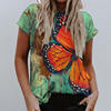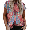 Women's Fashion Butterfly Print T-shirt Summer Casual Round Neck Pullover Tops Personalized T-shirt