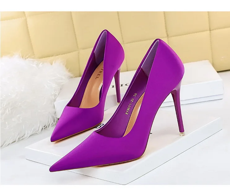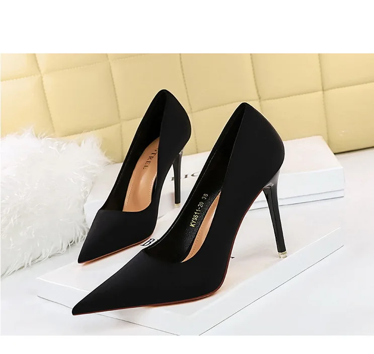 Women's Fashion Personality High Heel Shoes Stiletto High Heel Satin Shallow Mouth Pointed Women's Luxury Exquisite Shoes