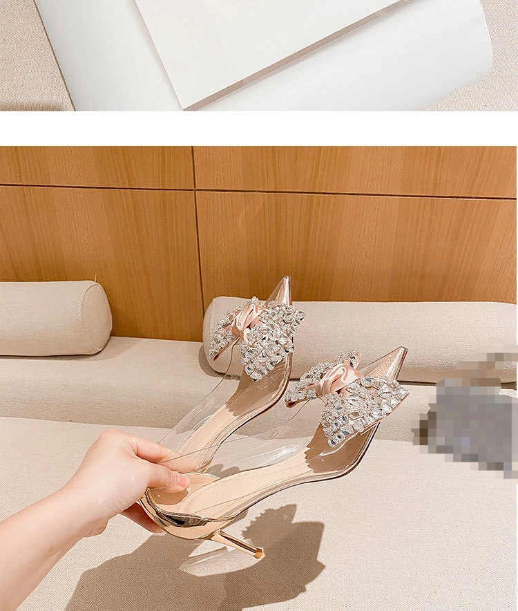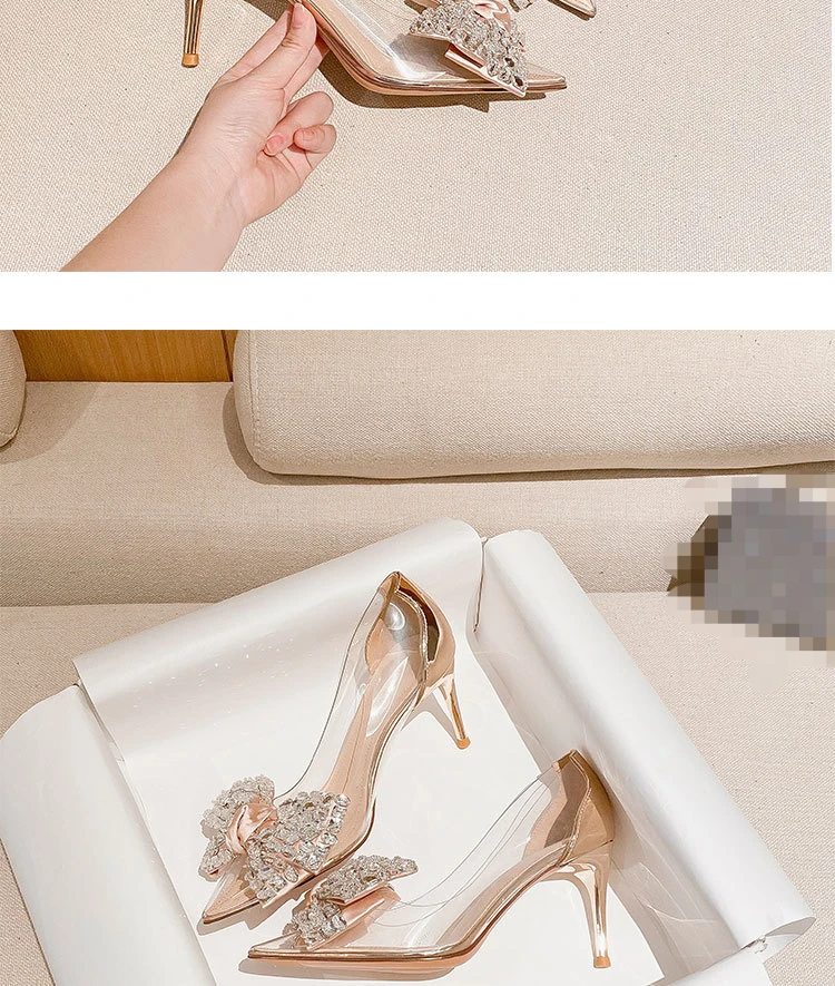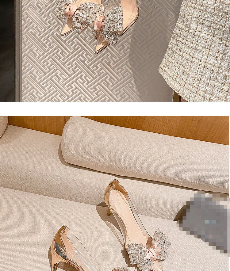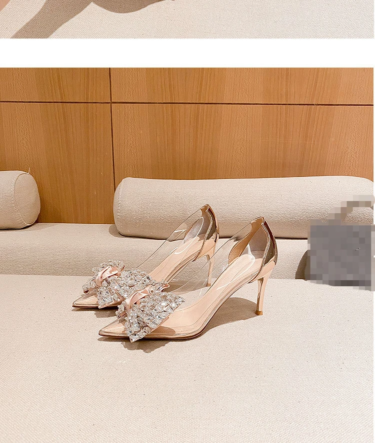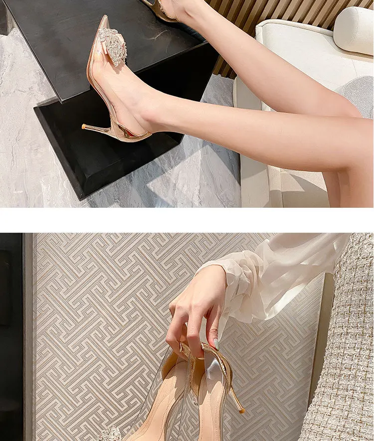 Women's Fashion Rhinestone Bow Pointed Toe High Heels Women's Stiletto Trend New Solid Color Transparent High-quality Sandals