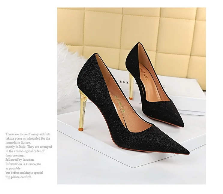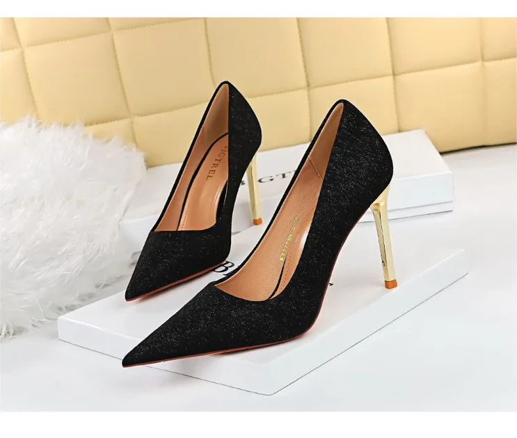 Women's Fashion Sexy Slim Stiletto High-heeled Cloth Shallow Pointed Toe Shoes Women's Office Exquisite High-end Low-top Shoes