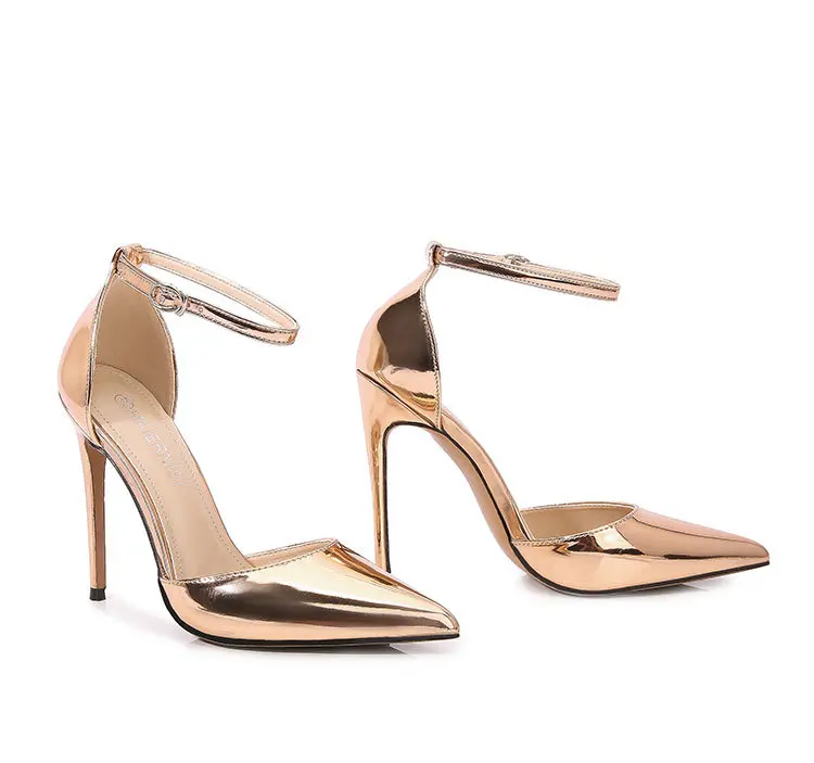 Womens High Thin Heel Pointed Toe Patent leather Ankle Strap Stiletto Pumps Wedding Party Office&Career Basic Shoes 4-15
