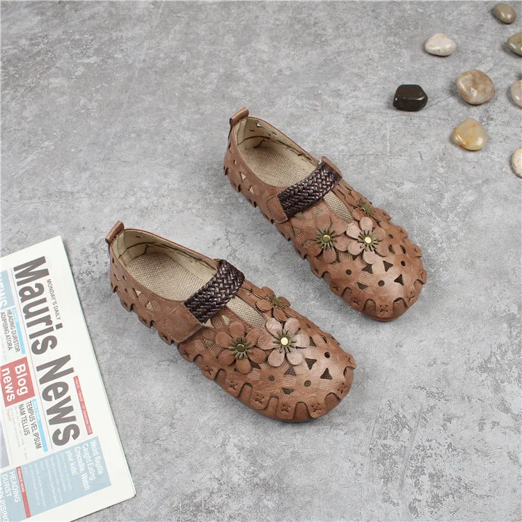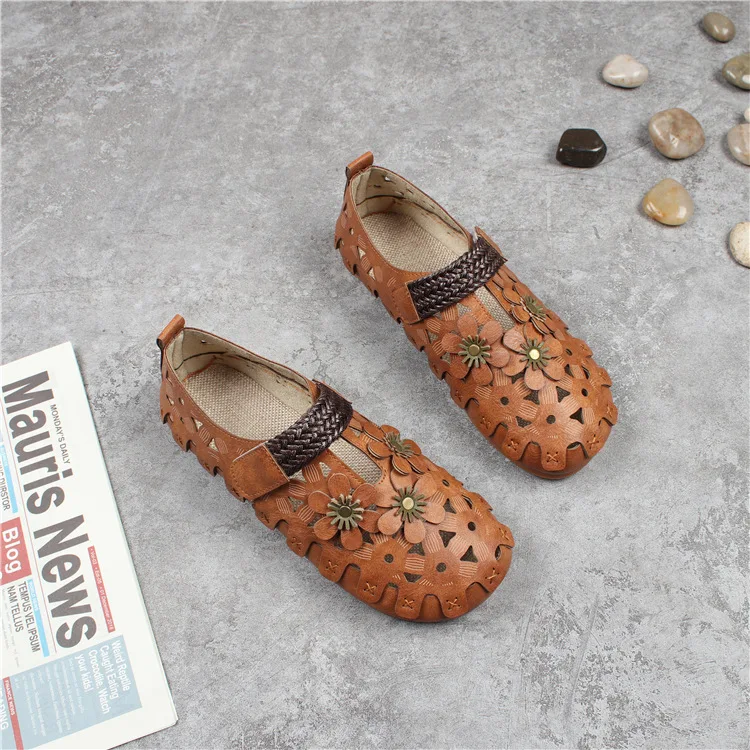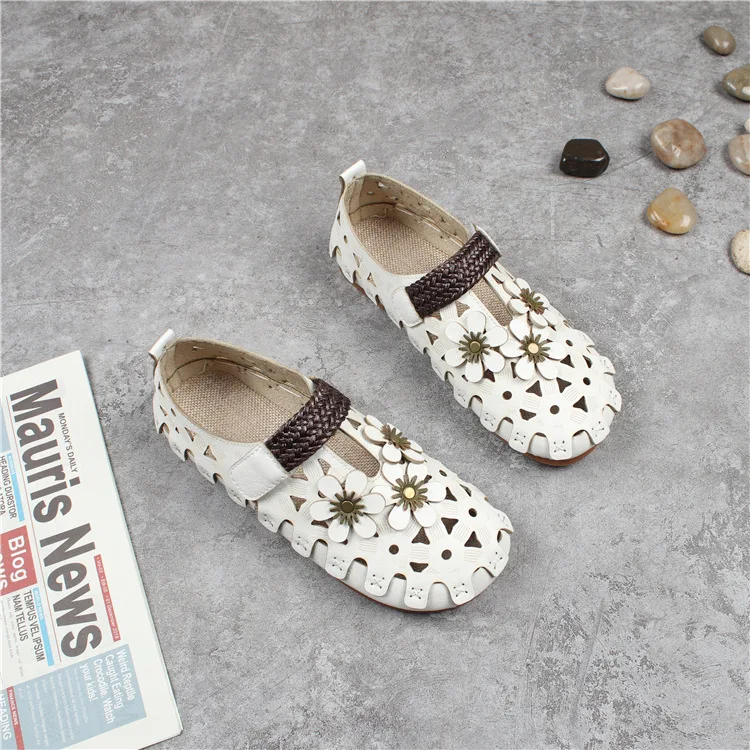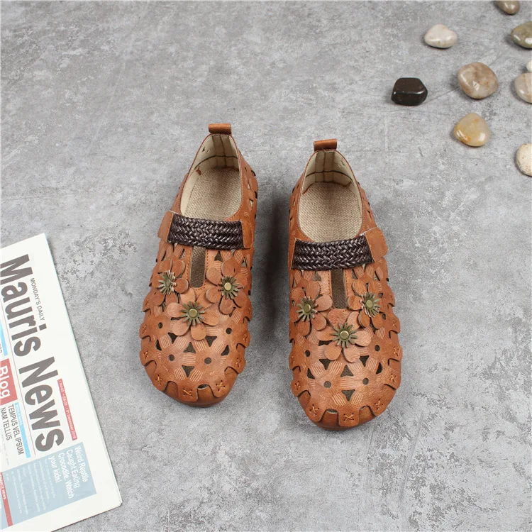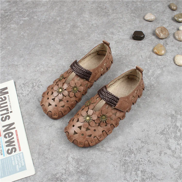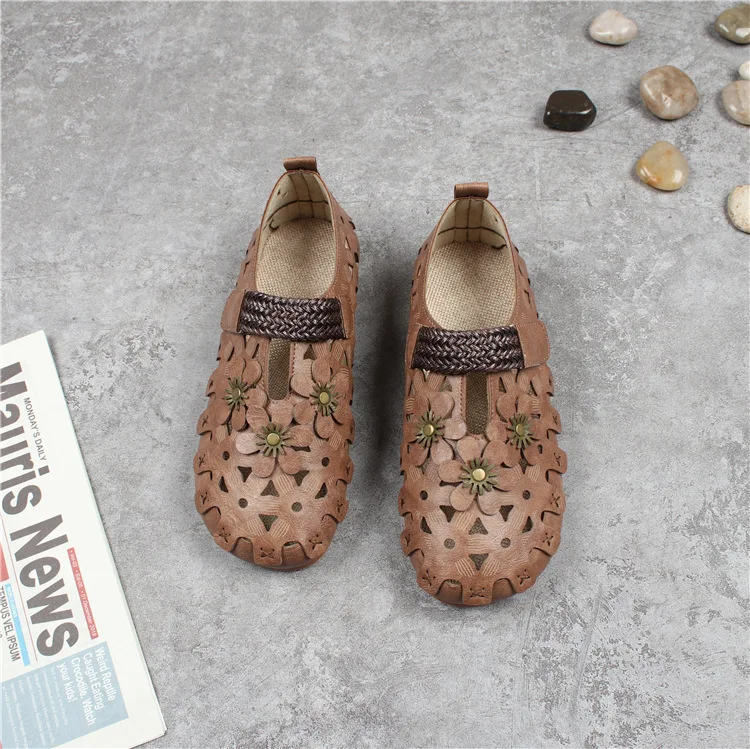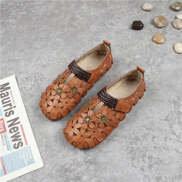 Women’s Hollow Sandals Retro Baotou Sandals 2021 Summer Soft-soled Flowers Women Shoes Slip-on Flats Shoes Zapatos De Mujer