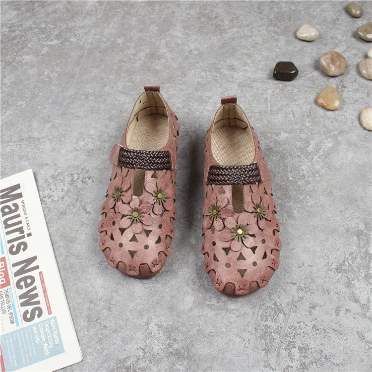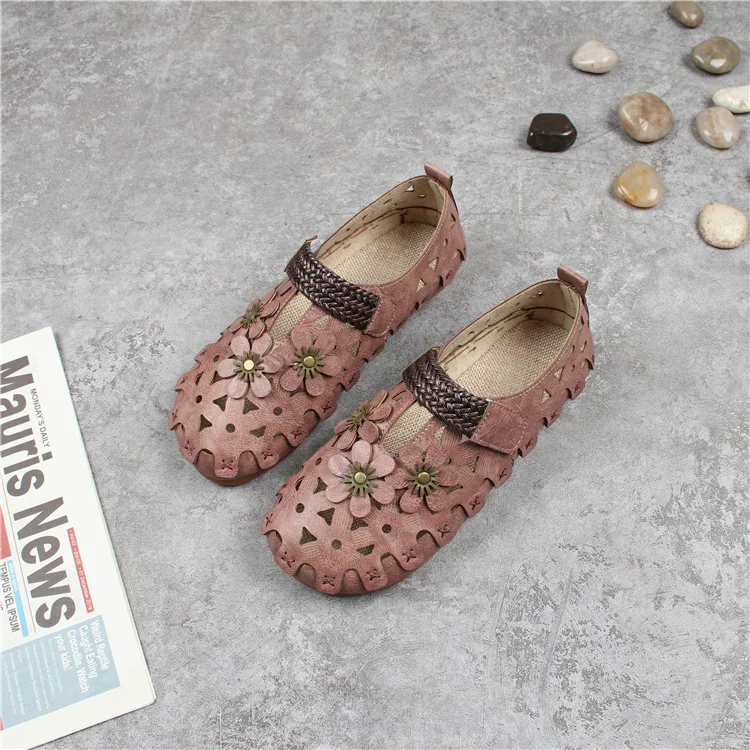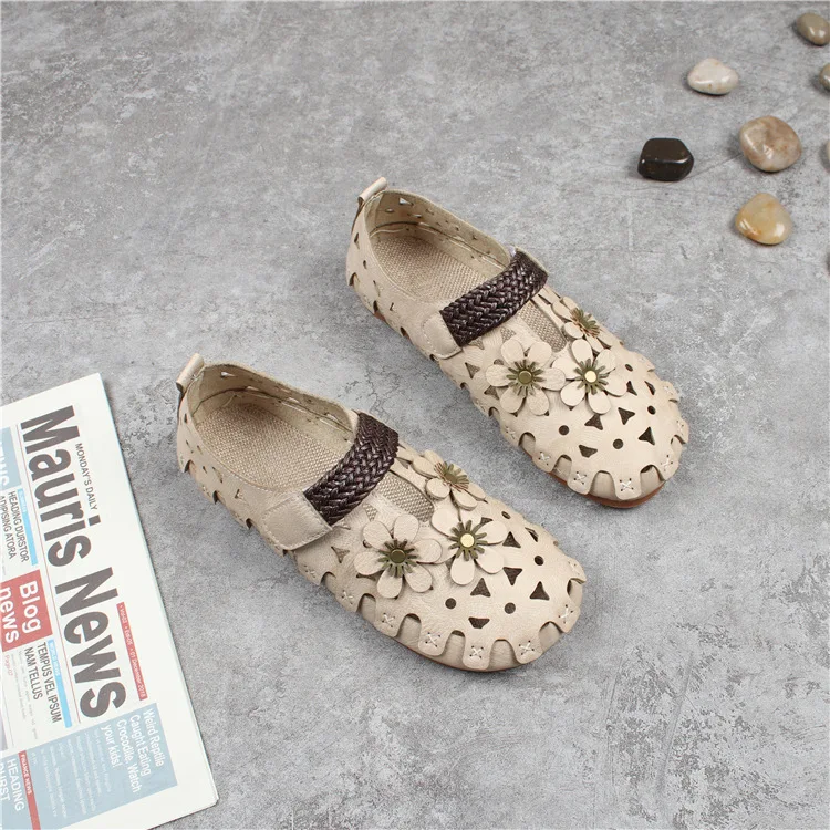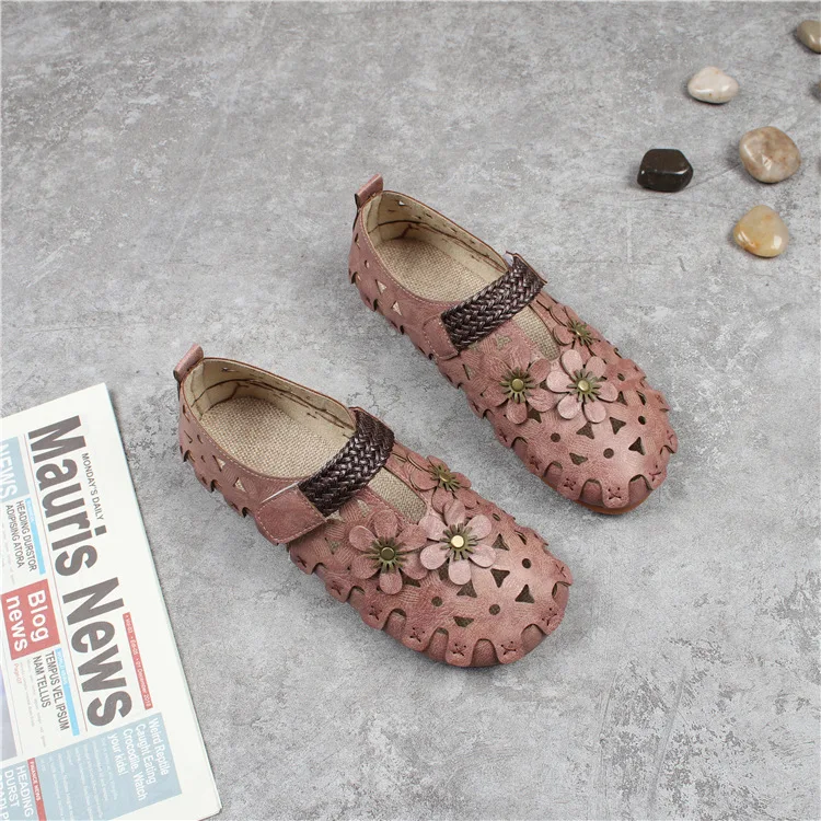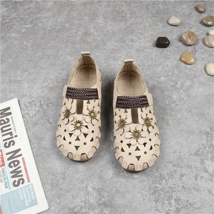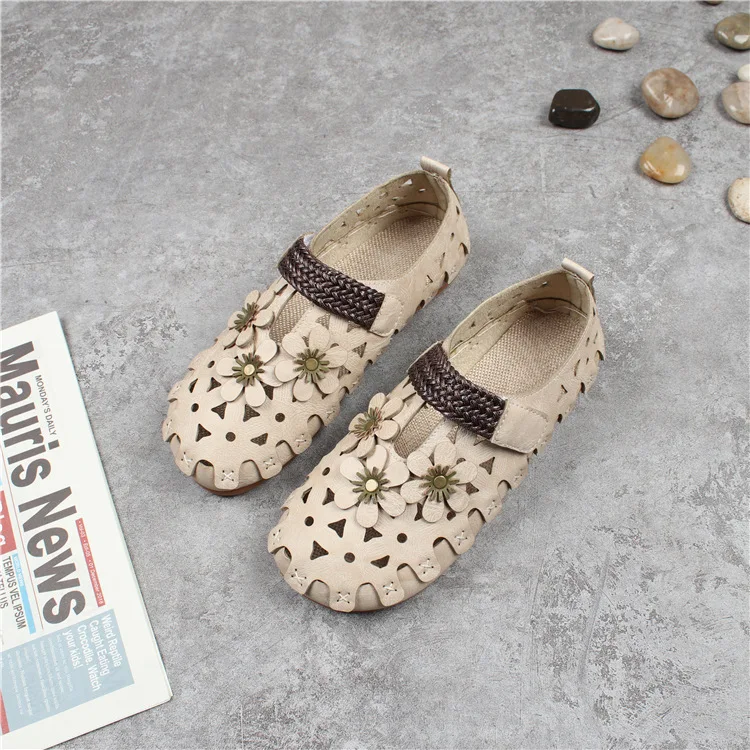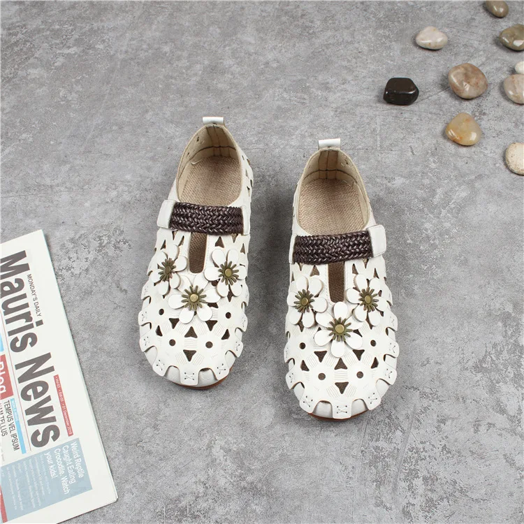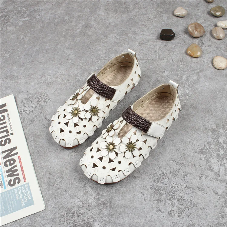 Women’s Hollow Sandals Retro Baotou Sandals 2021 Summer Soft-soled Flowers Women Shoes Slip-on Flats Shoes Zapatos De Mujer