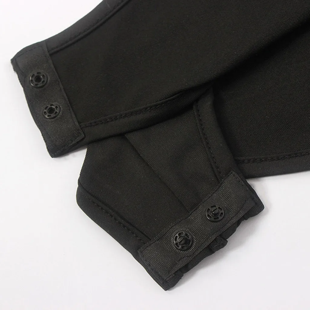 Have not worn it yet, but the quality feels nice, it is exactly how the picture looks two snaps on vaginal area to close. Doesn’t seem cheap, the snaps are really on there not looking as if they’ll pop off . Impressed