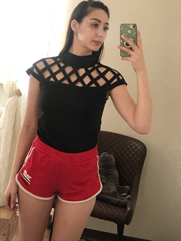 Matches the photo. Short, on a short and not thin girl, on growth 175 short, does not stretch almost. sewn neatly, there is no smell. Shipping fast. Delivery to Siberia 3 weeks. Track tracked.