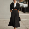 Women’s Lapel Shirts Dress Retro Contrasting Hepburn Style Long Sleeves Stripe Dress Solid Casual Going Out A-Line Long Dress