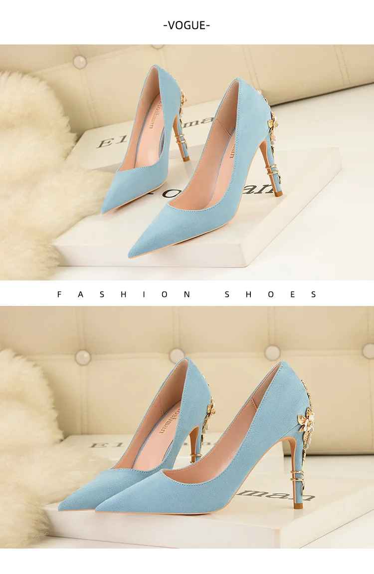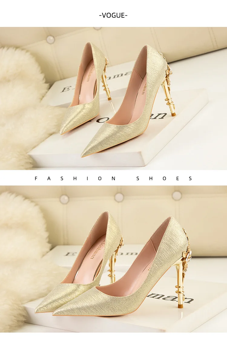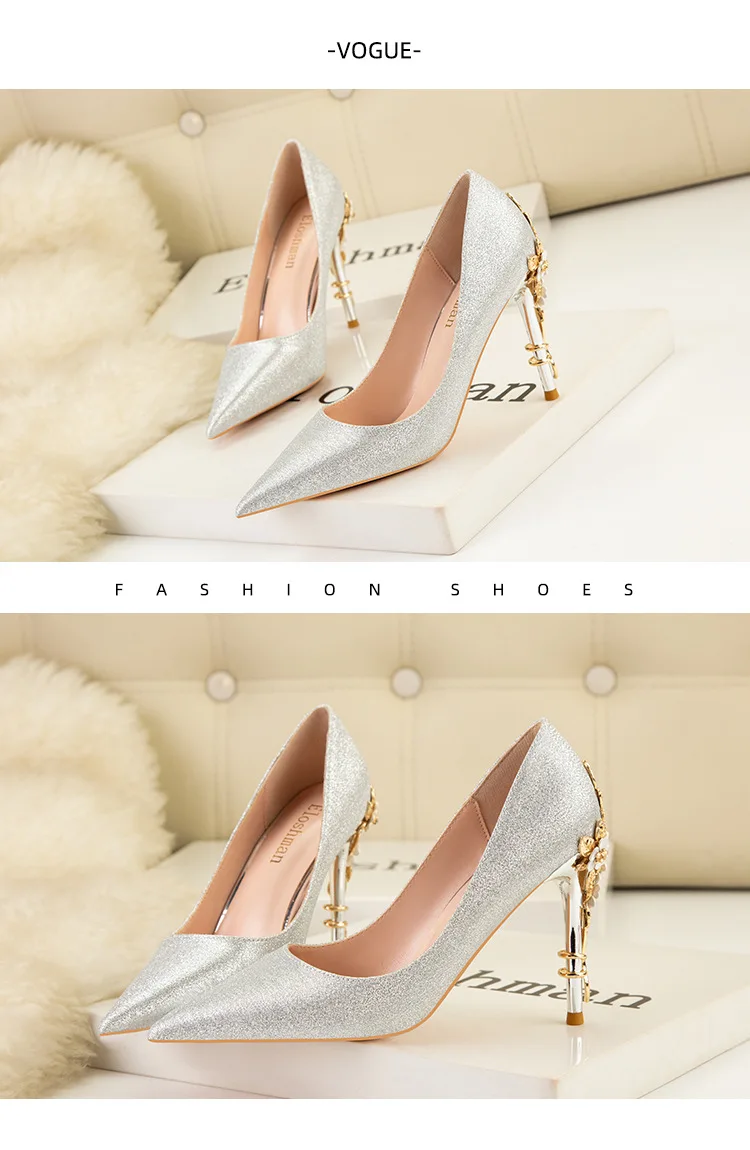 Women's Light Luxury Pointed Toe High Heel Stiletto Sexy Metal Flower High Heel Shoes Women's High Quality Exquisite Shoes