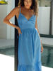 Women’s Long Summer Cotton Linen Dress Slip Blue Sexy Spaghetti Strap Dresses Midi Backless Vintage Casual Long Dress for Women