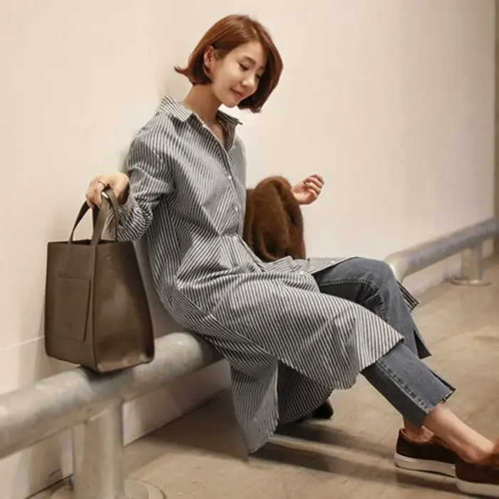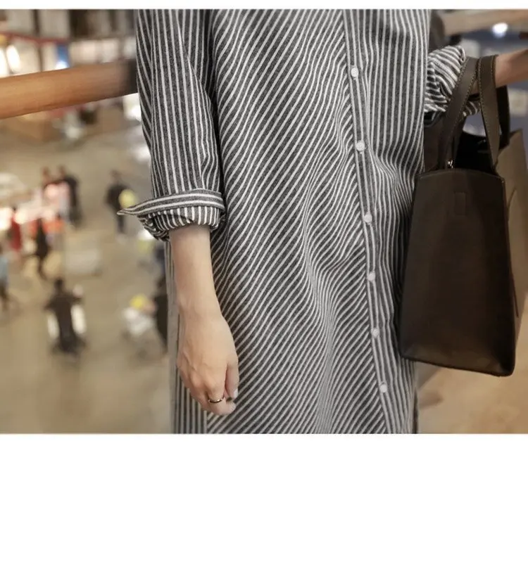 Women'S Round Neck, Long Sleeves And Belts, Pure Color Cotton And Linen Series, Casual Loose And Comfortable Long Skirt