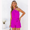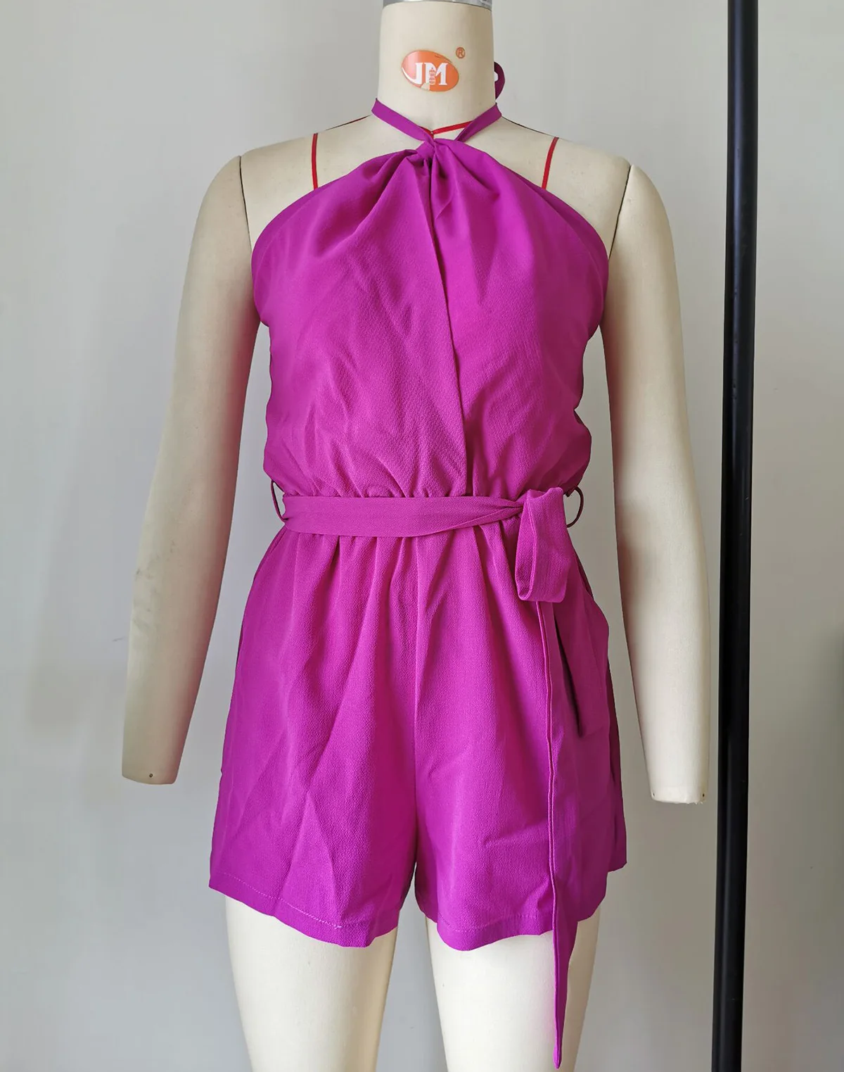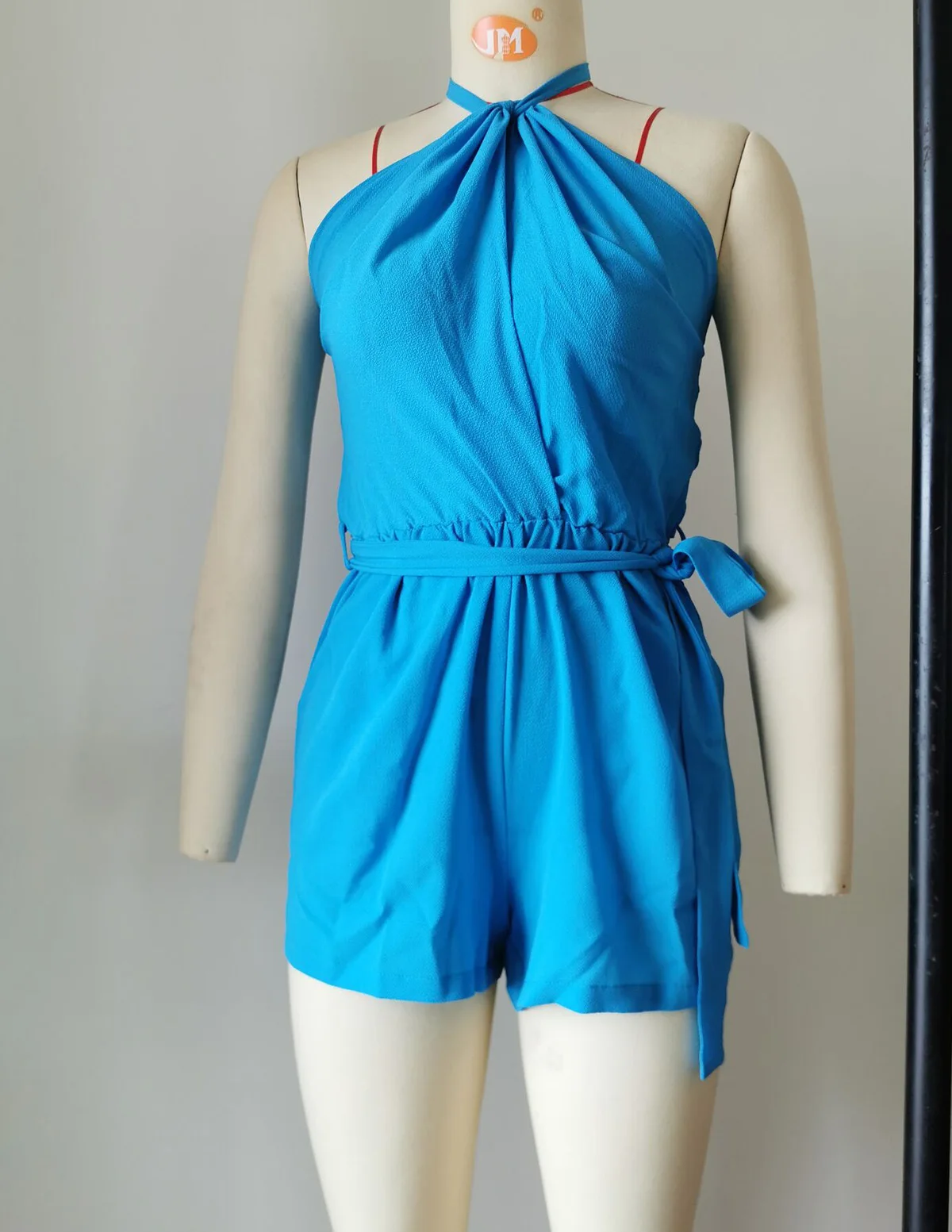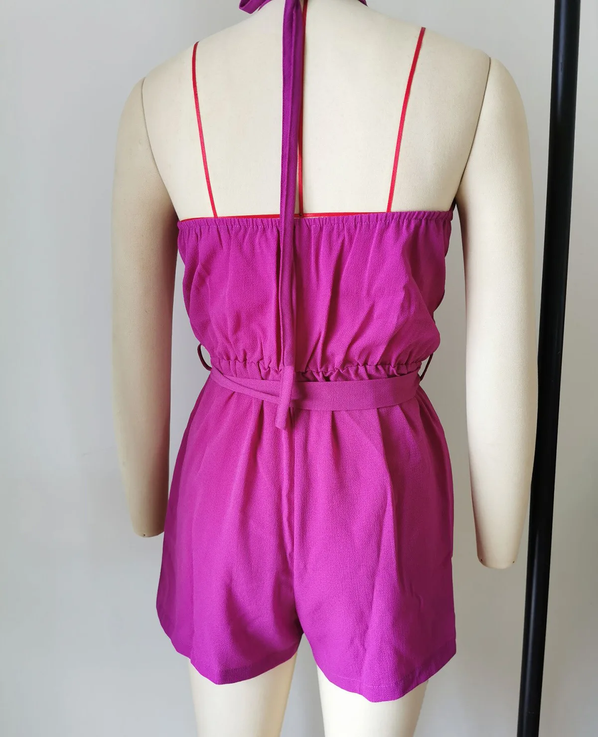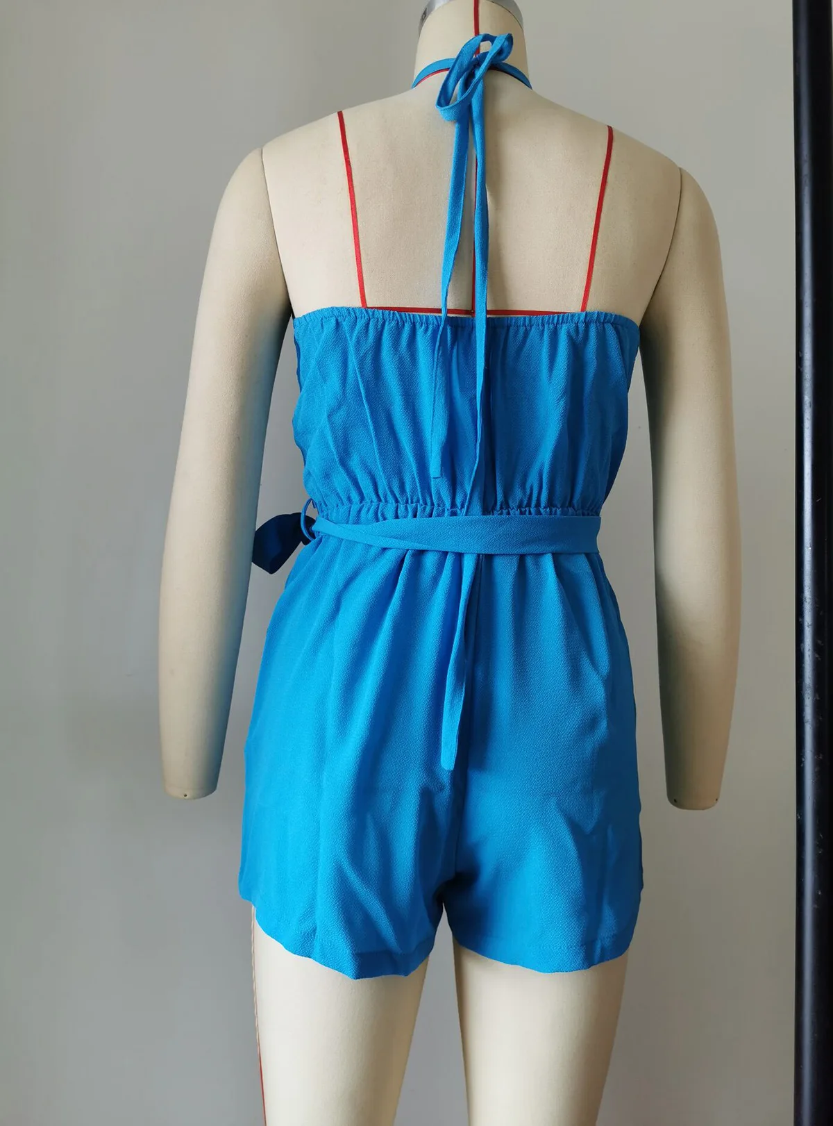 Women's Sexy Backless Shorts Jumpsuits Summer Sleeveless Chiffon Lacing Jumpsuits Women High Waist Babes Shorts Jumpsuits