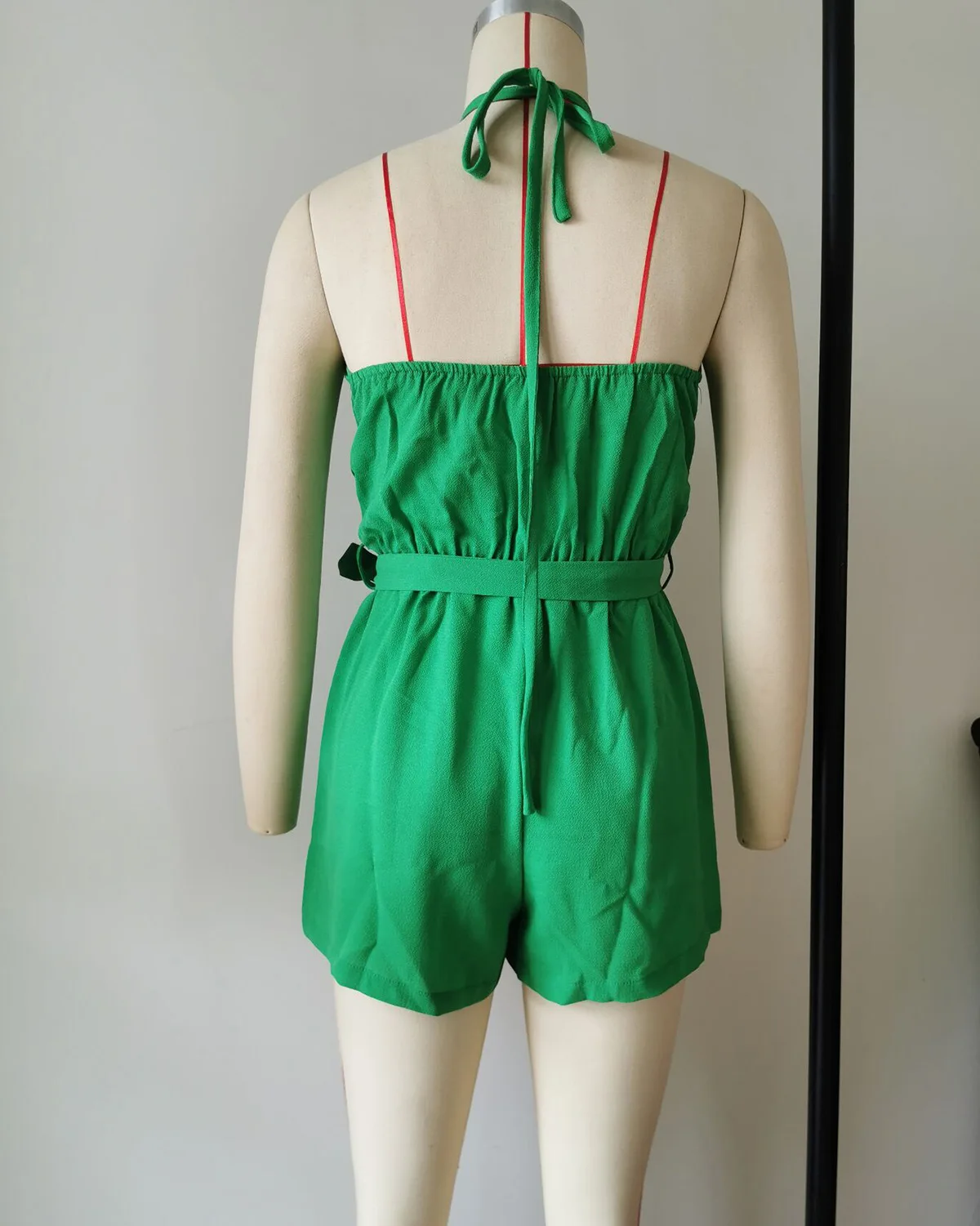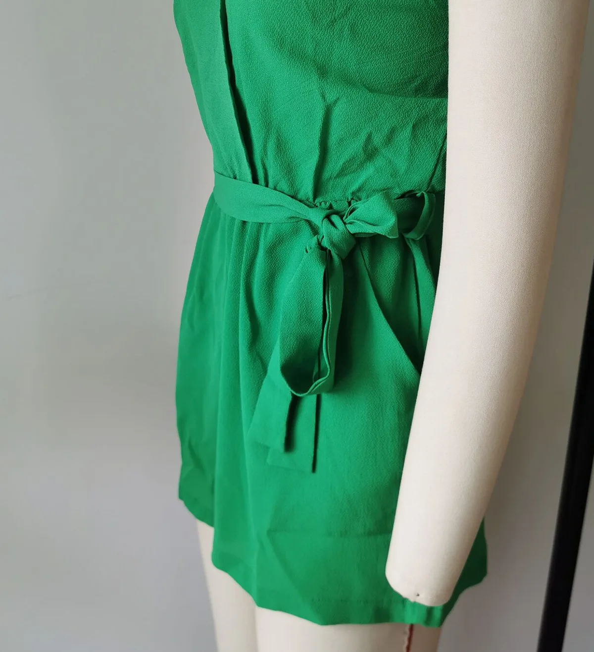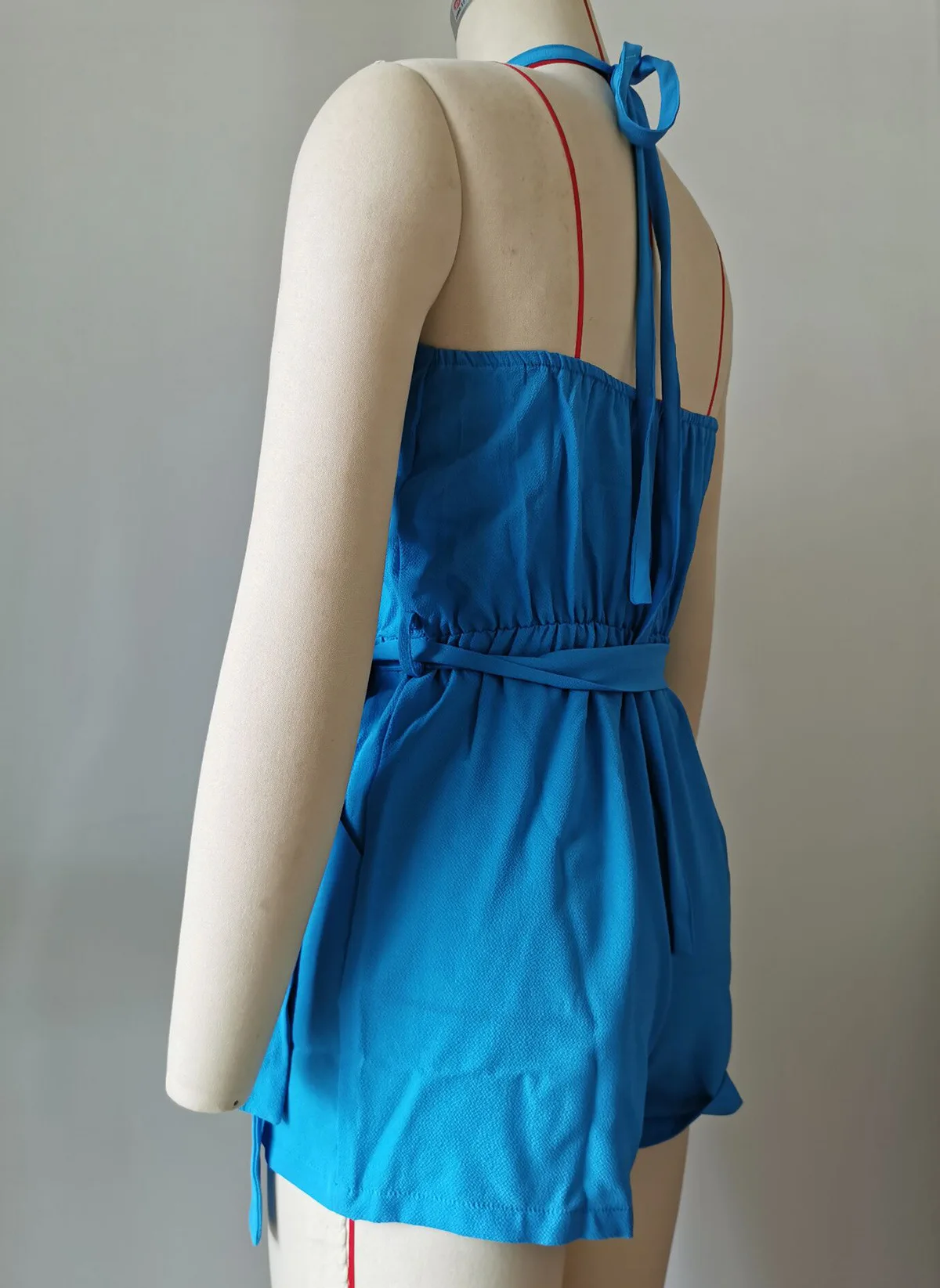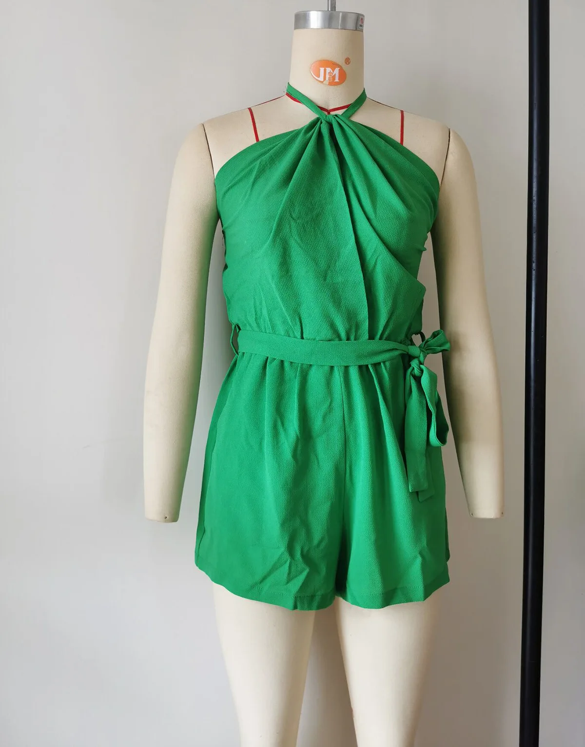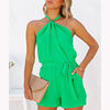 Women's Sexy Backless Shorts Jumpsuits Summer Sleeveless Chiffon Lacing Jumpsuits Women High Waist Babes Shorts Jumpsuits