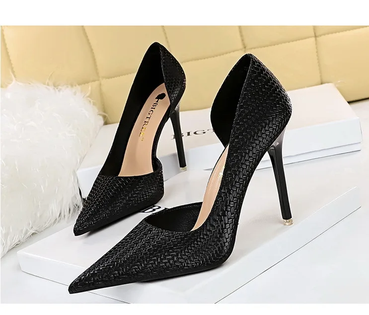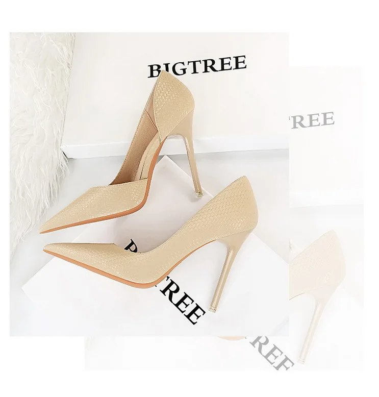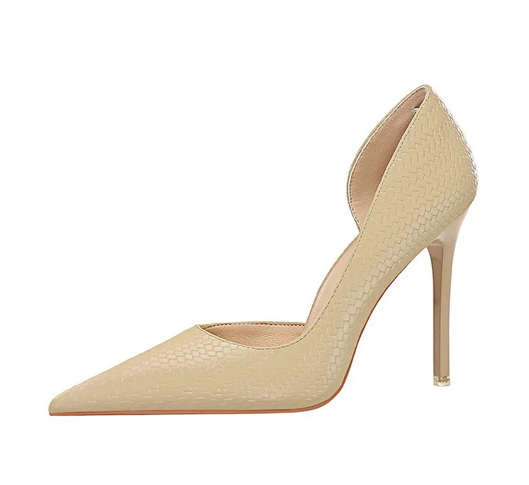 Women's Sexy Slim Stiletto High Heels Shallow Mouth Pointed Snake Pattern Side Hollow High Heels Women's Exquisite Shoes