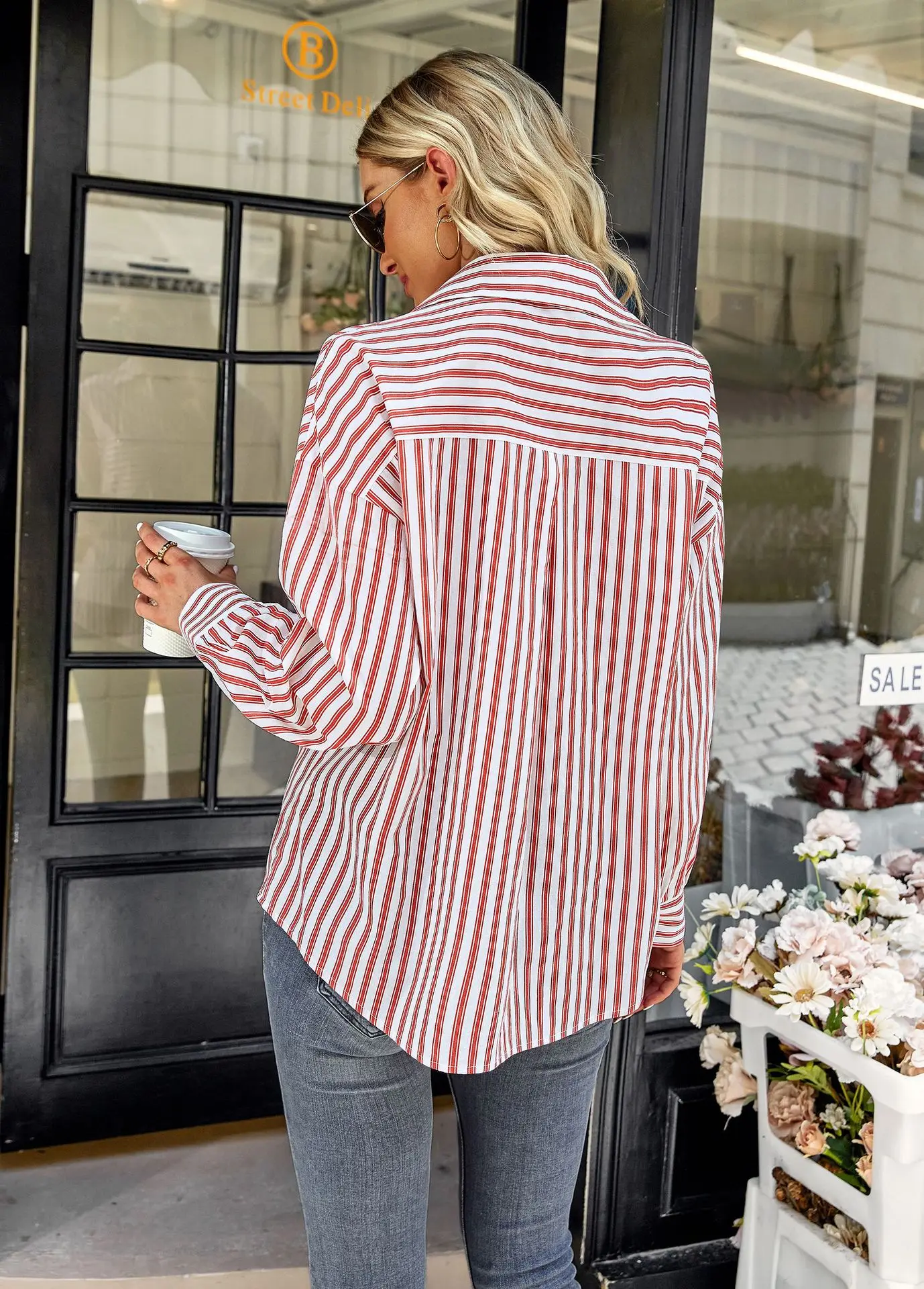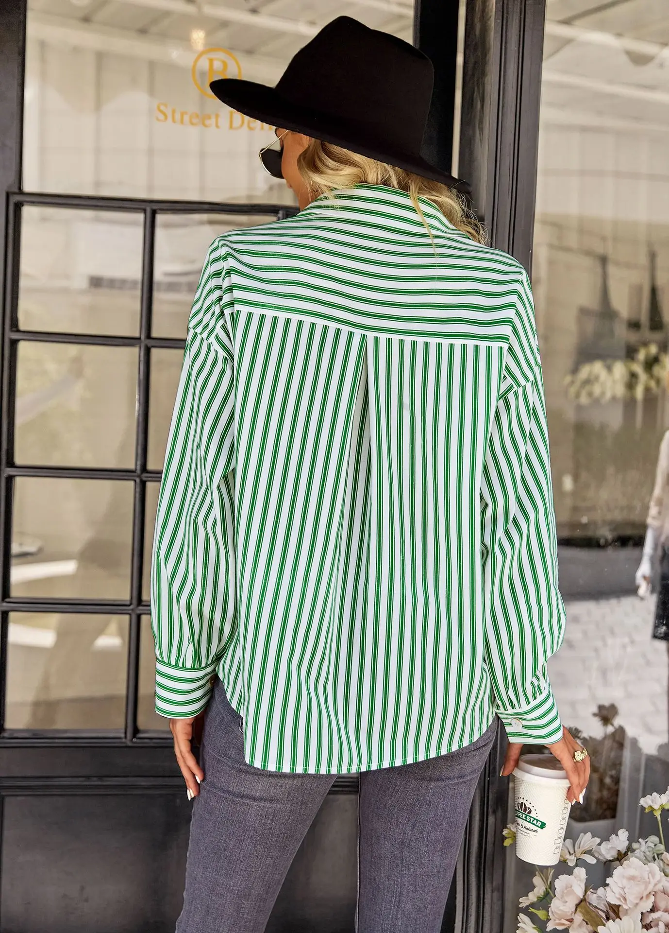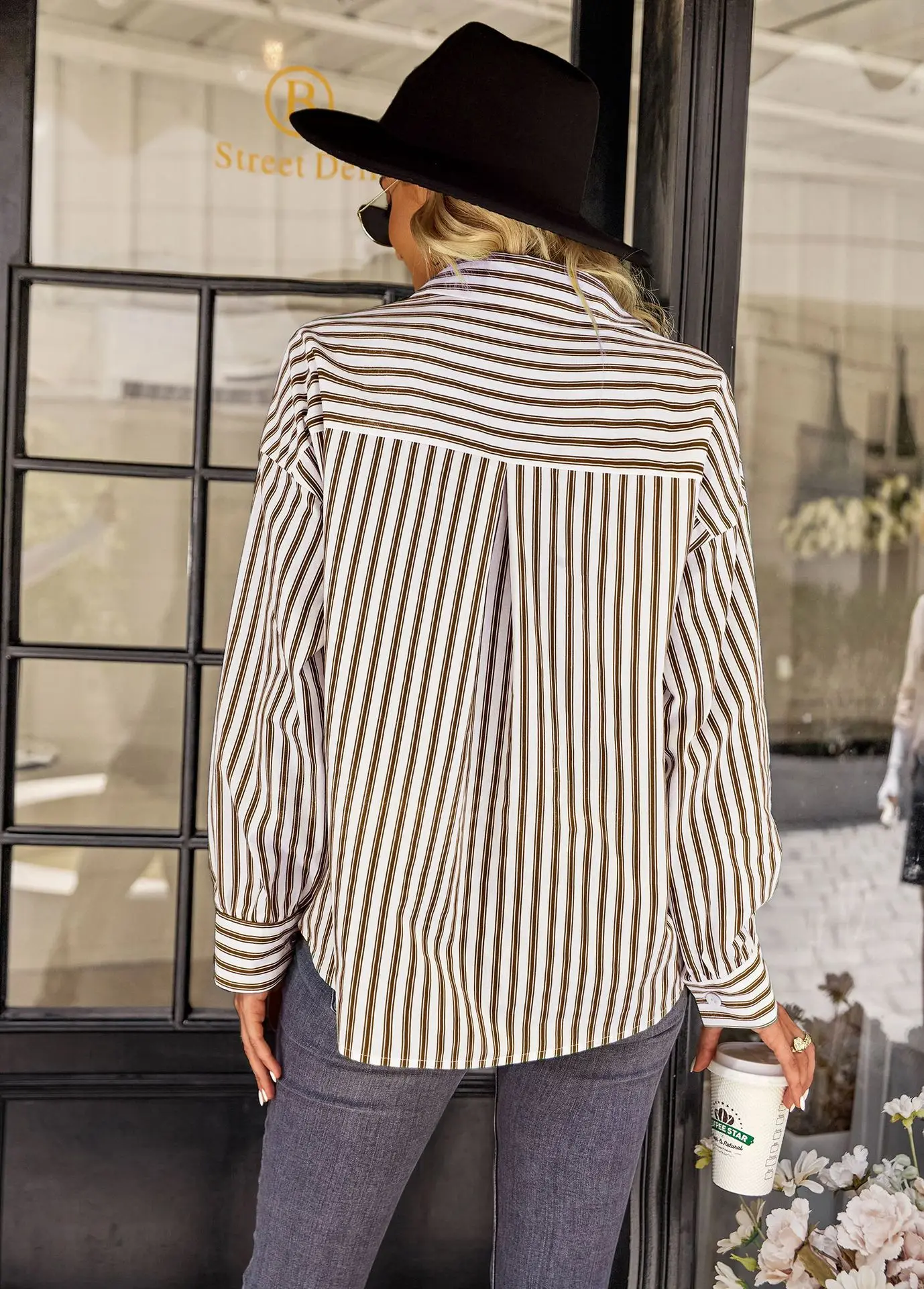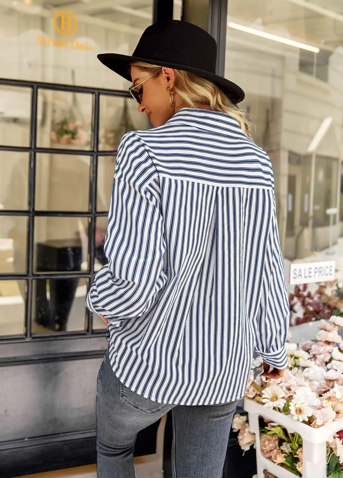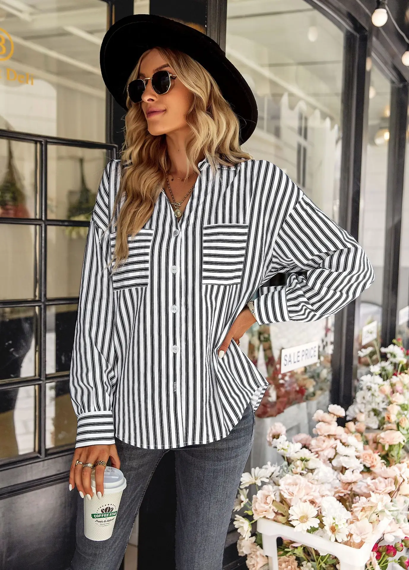 Women's Striped Shirt 2022 Spring And Autumn Office Lady V Neck Single-breasted Pocket Stitching Blouse Tops Blusas Y Camisas
