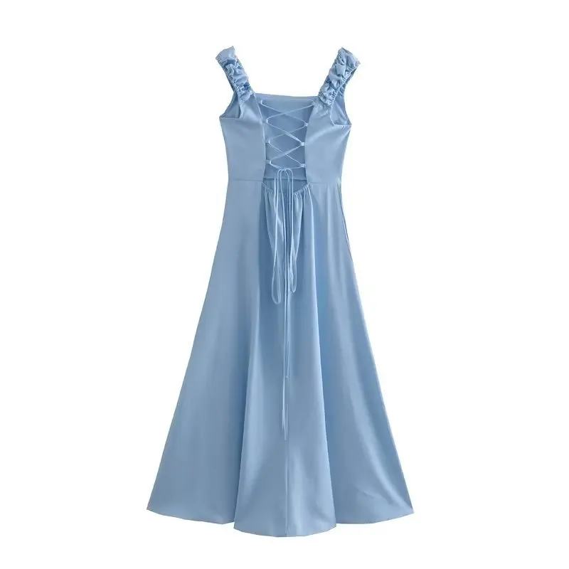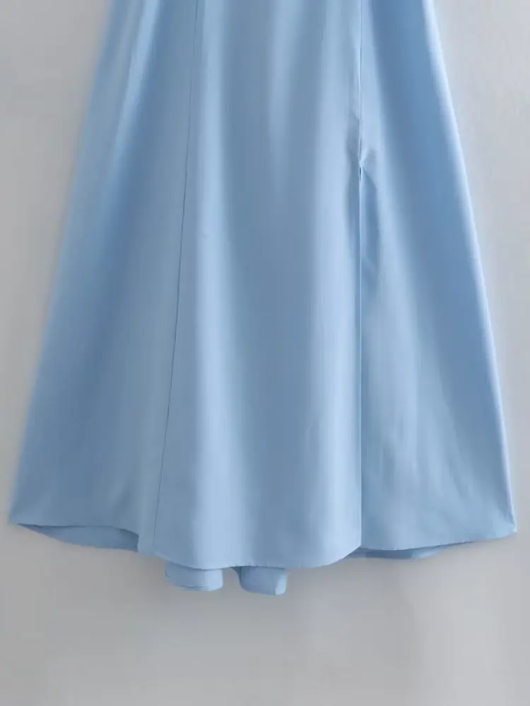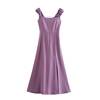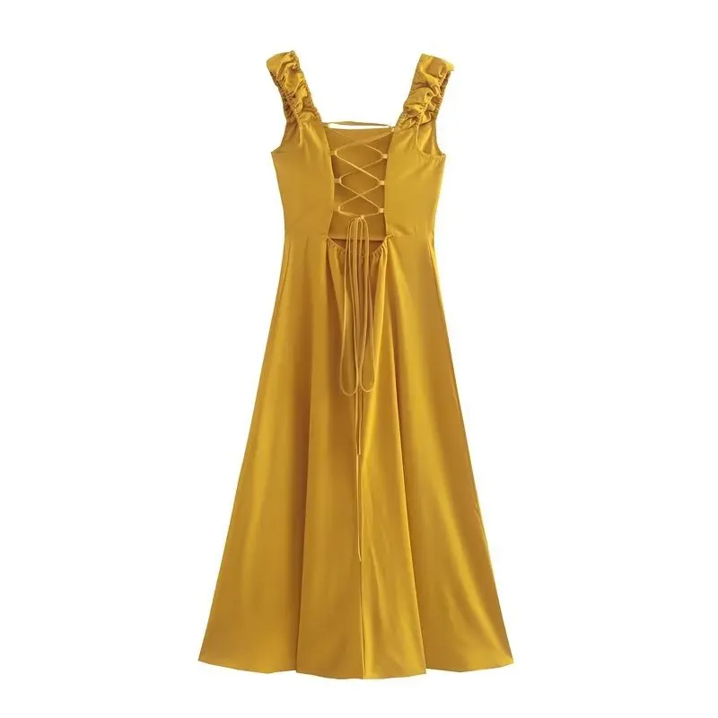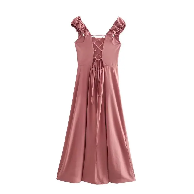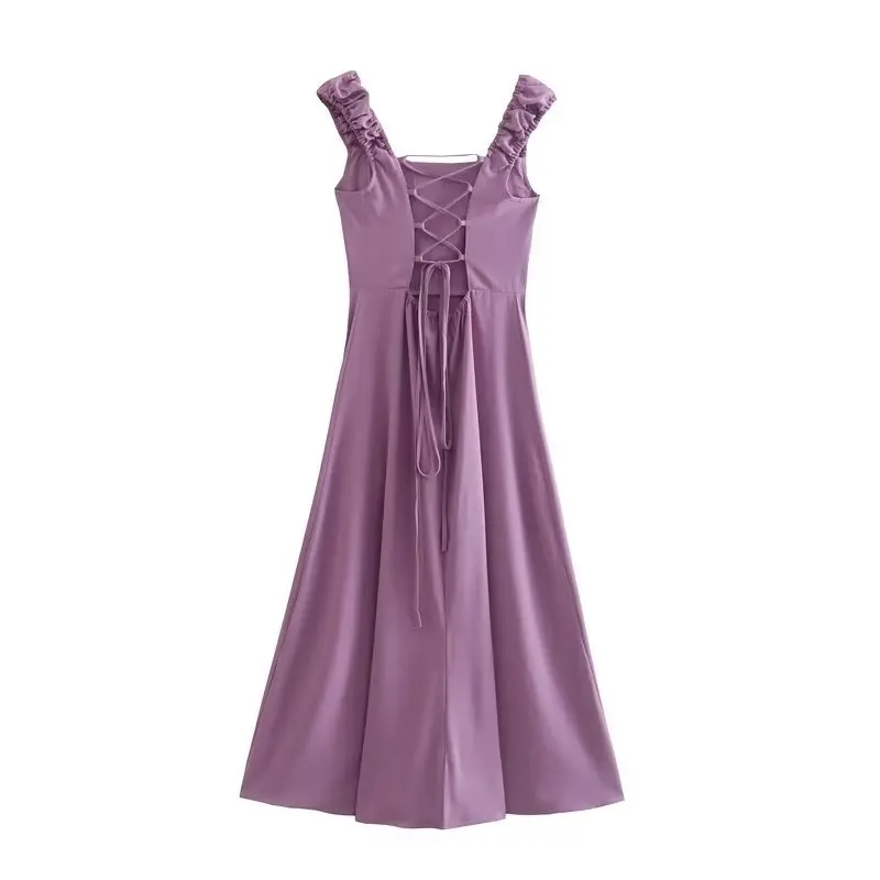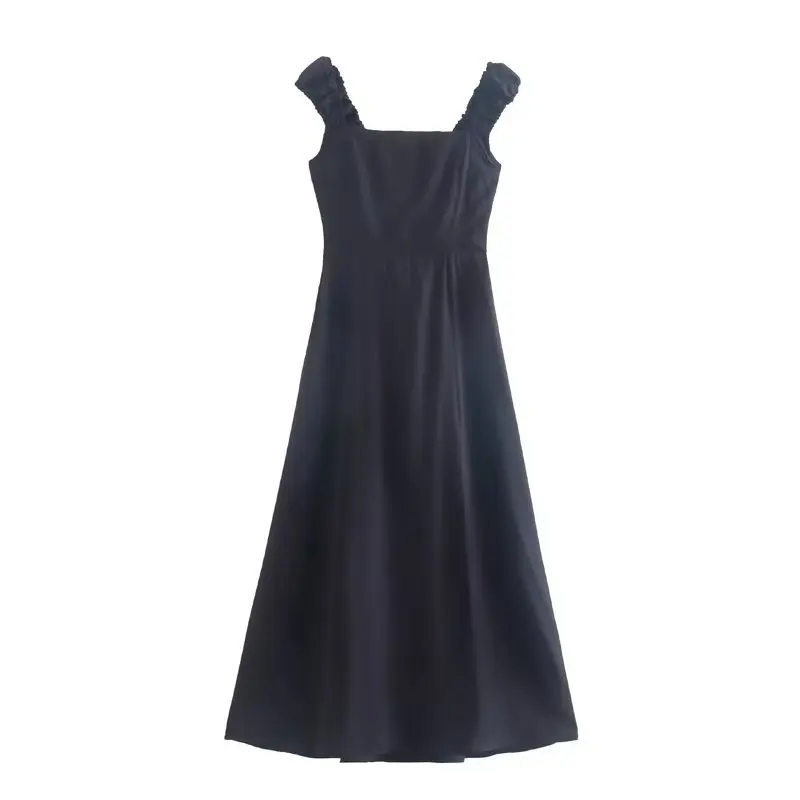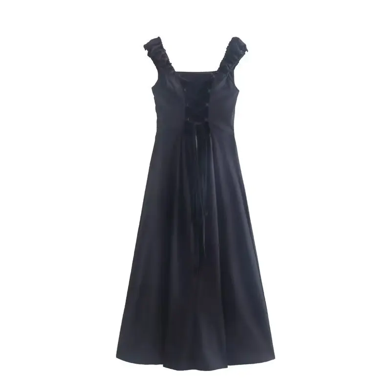 Women's Summer Backless Tie Sexy Sleeveless Dress Linen Split Sweet Midi Sling Dress Ladies Elegant One-Line Neck Black Dress