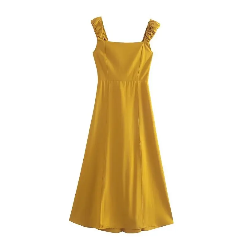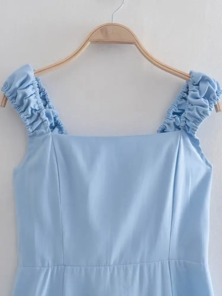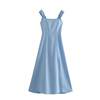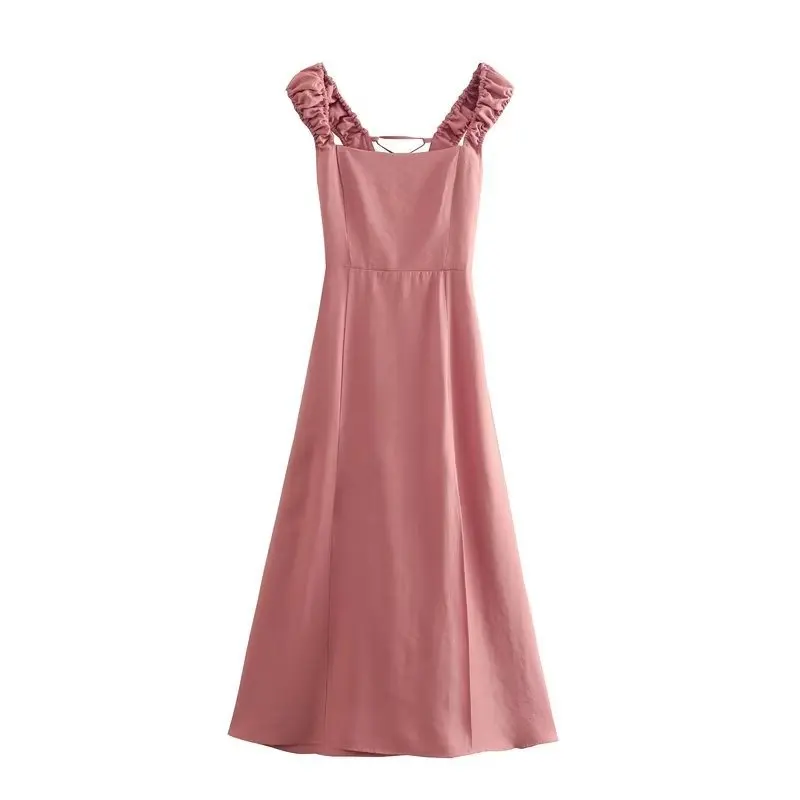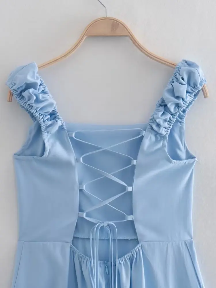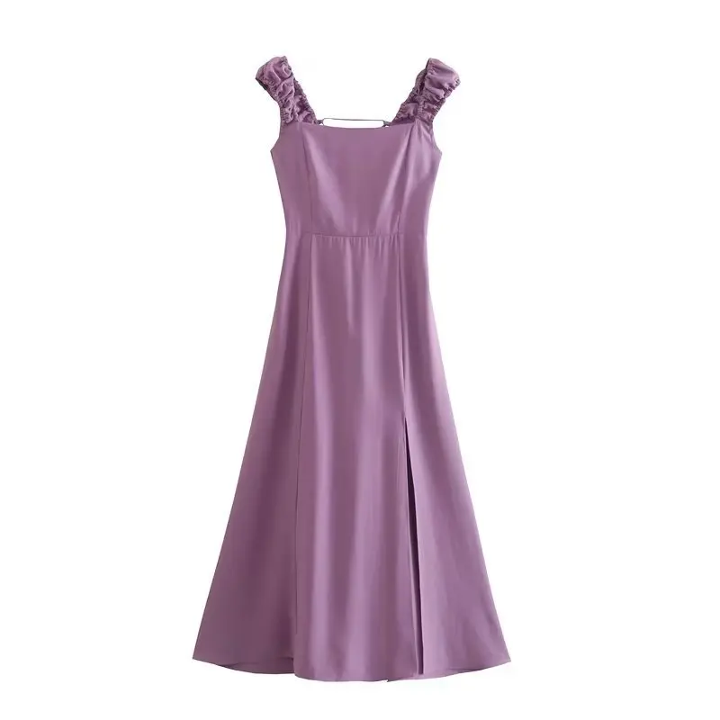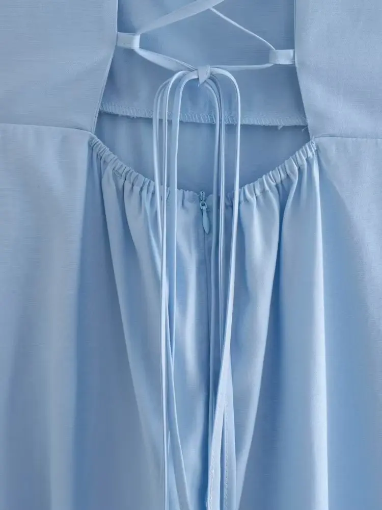 Women's Summer Backless Tie Sexy Sleeveless Dress Linen Split Sweet Midi Sling Dress Ladies Elegant One-Line Neck Black Dress