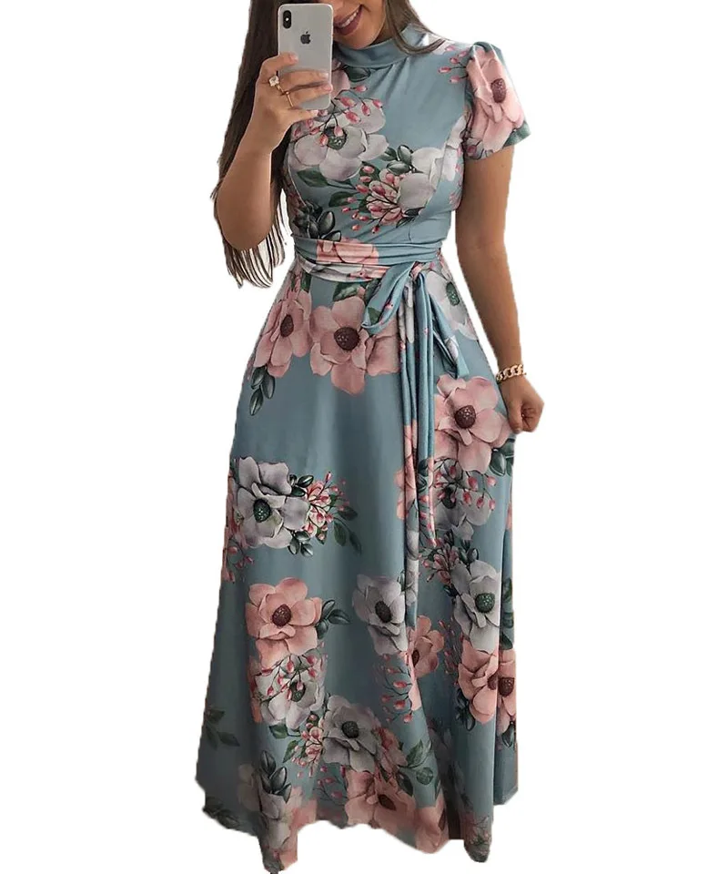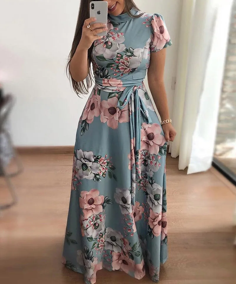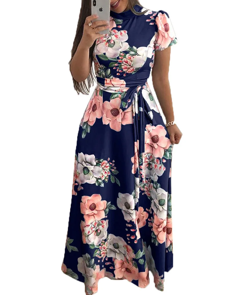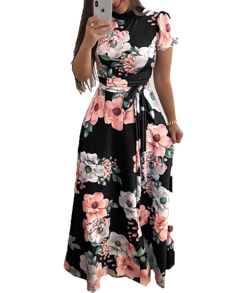 Women's Summer Sexy Fashion Streetwear Dress Short Sleeve Elegant Ladies Clothing O-Neck Digital Print Women Long Dresses