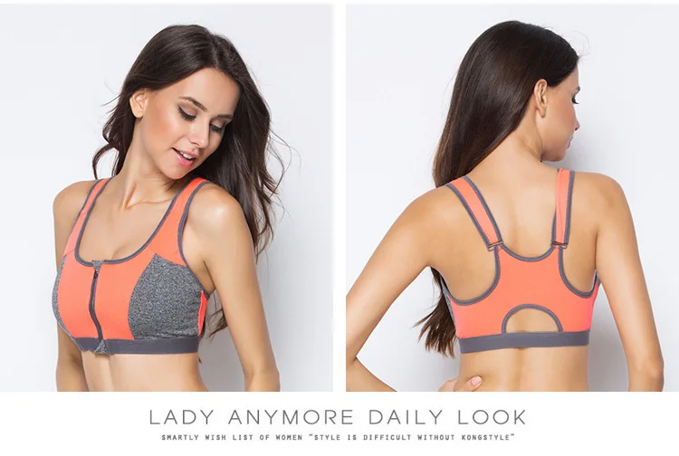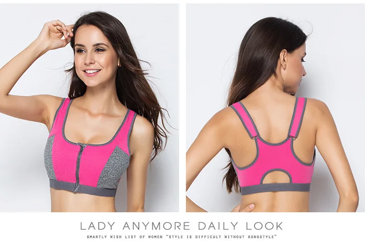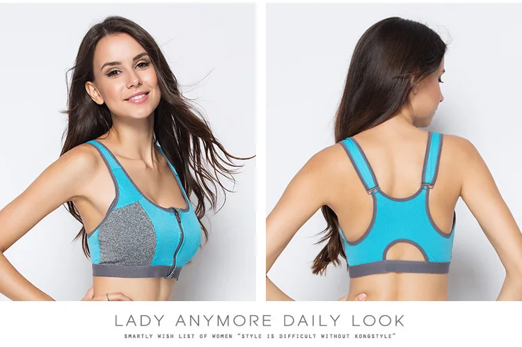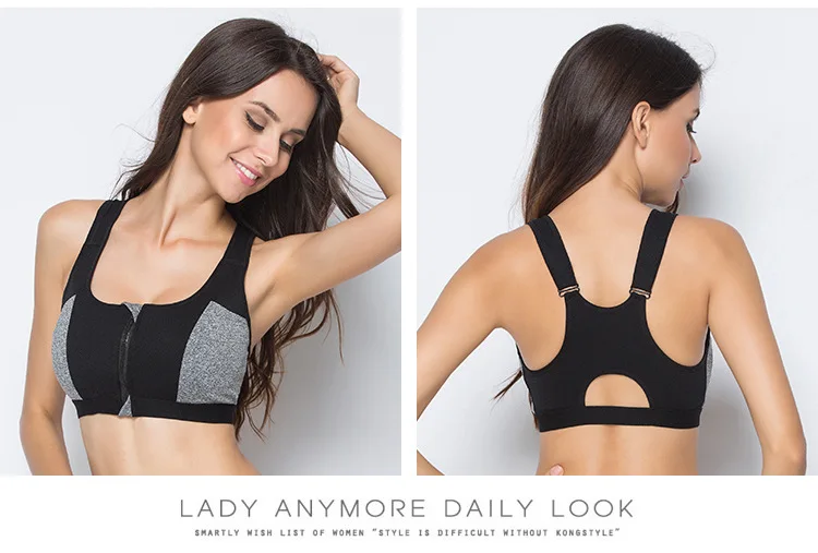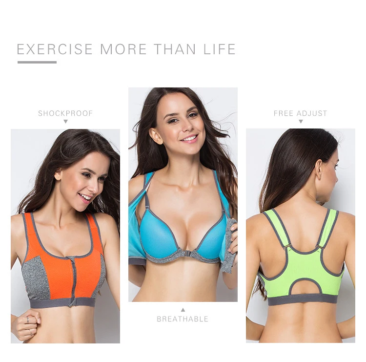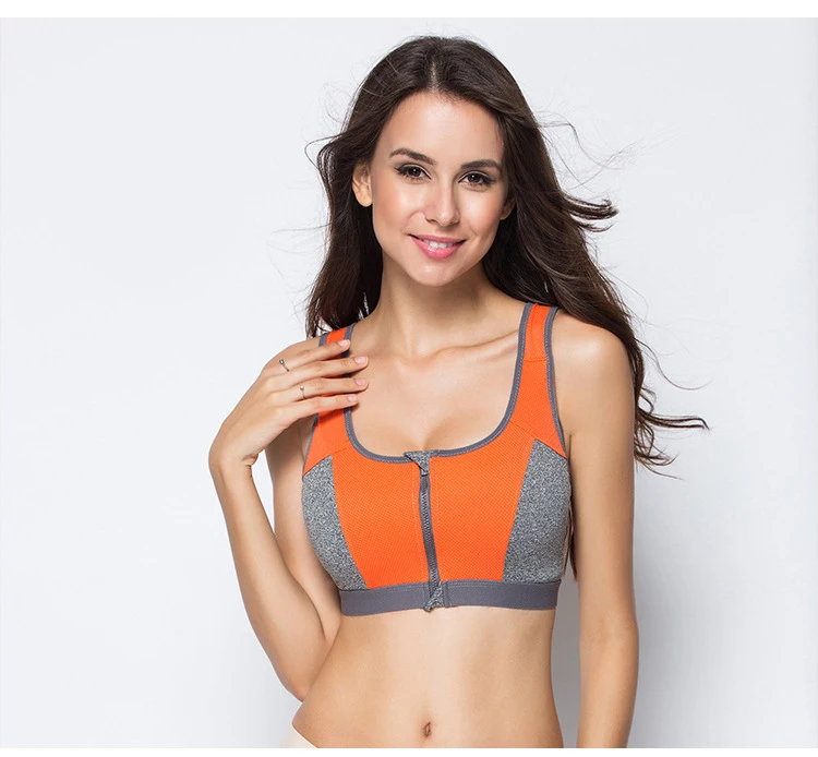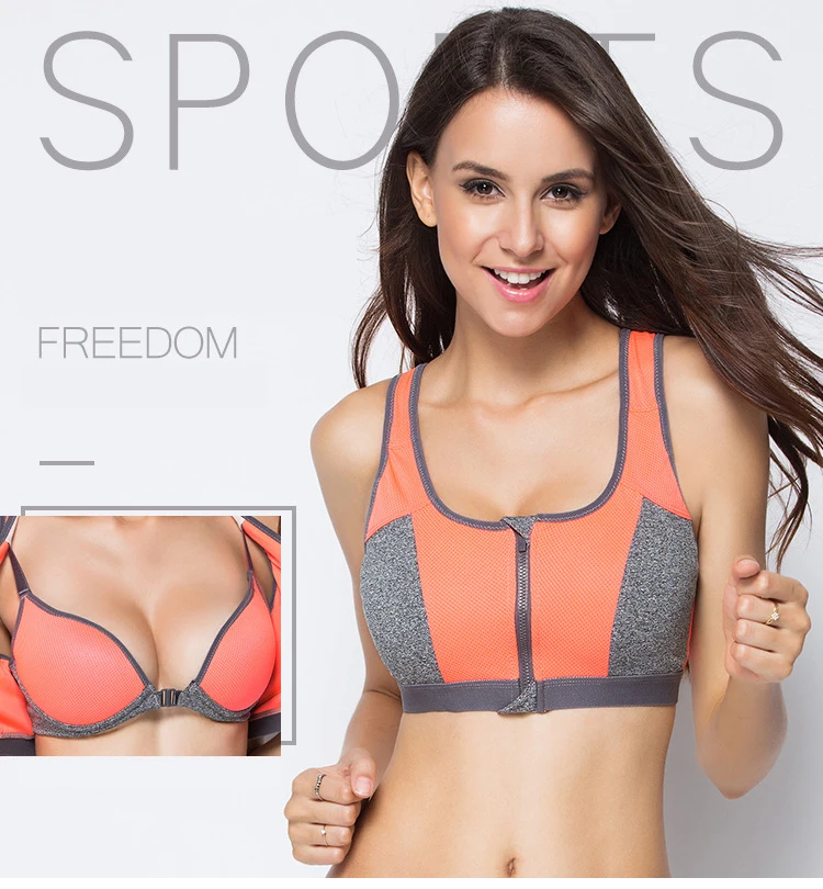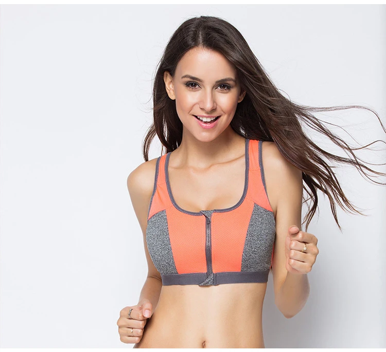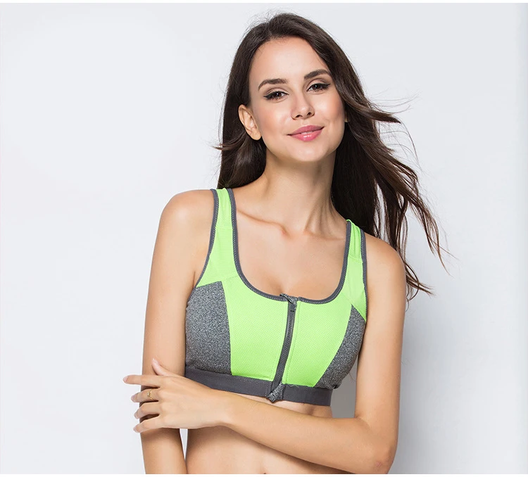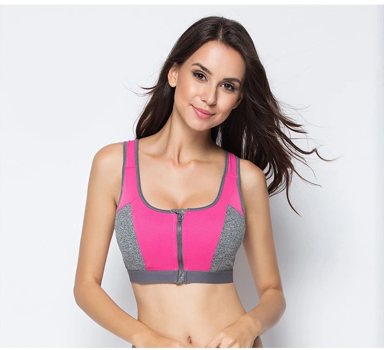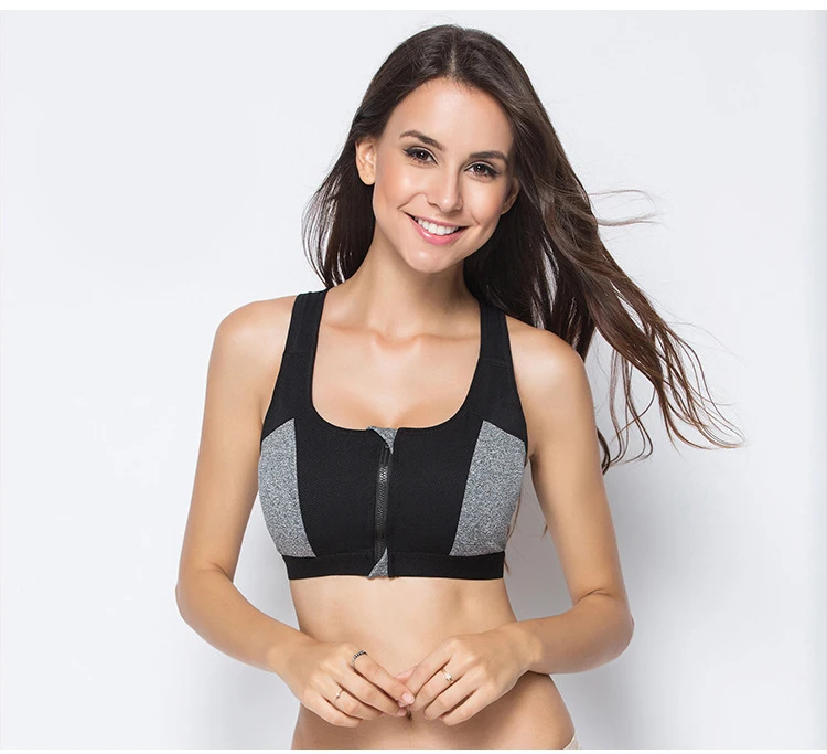 Womens Zip Front Sports Bra Yoga Workout Bras High Impact Front Closure Racerback Full Support Wirefree