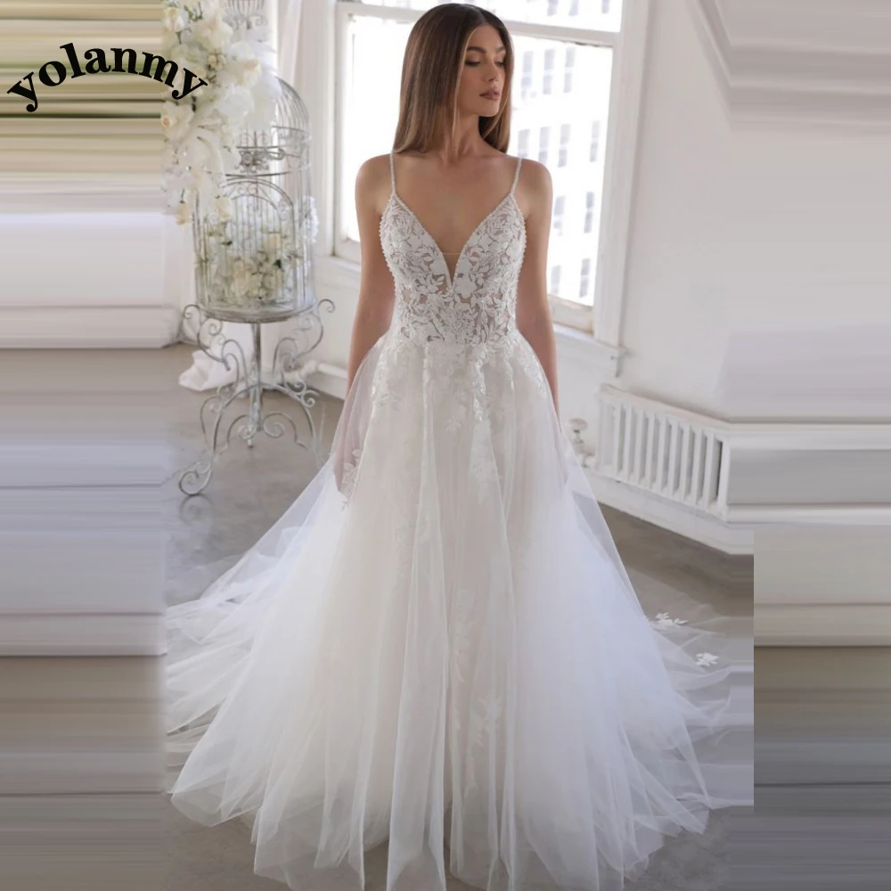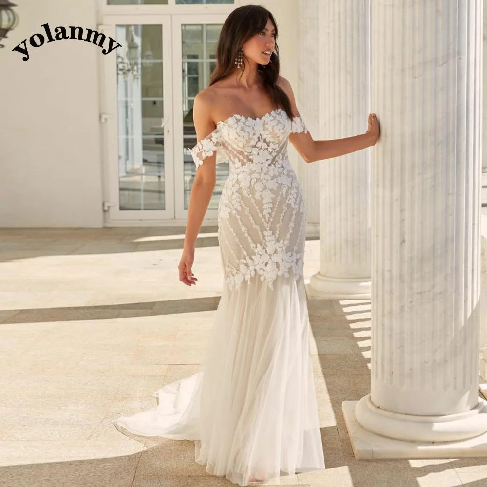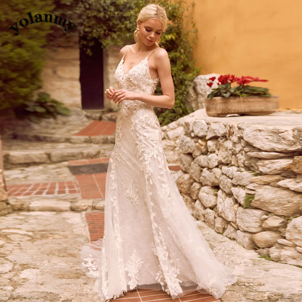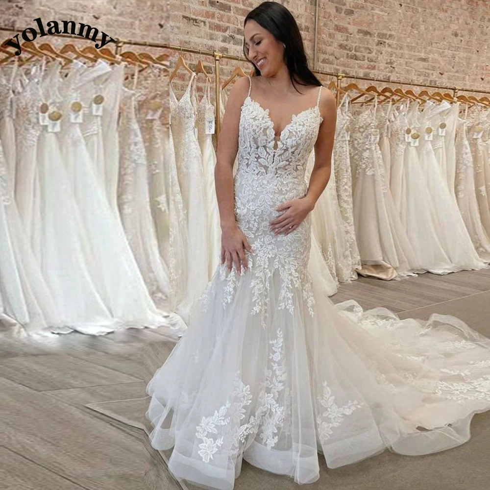 YOLANMY Charming Mermaid Wedding Dresses For Brides 2023 Spaghetti Straps Scoop Appliques Robe De Mariée For Women Custom Made