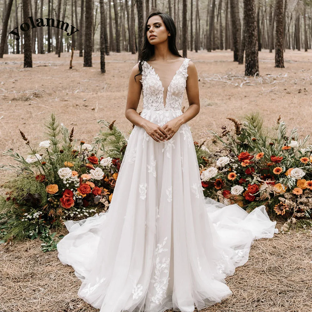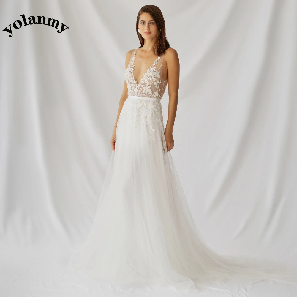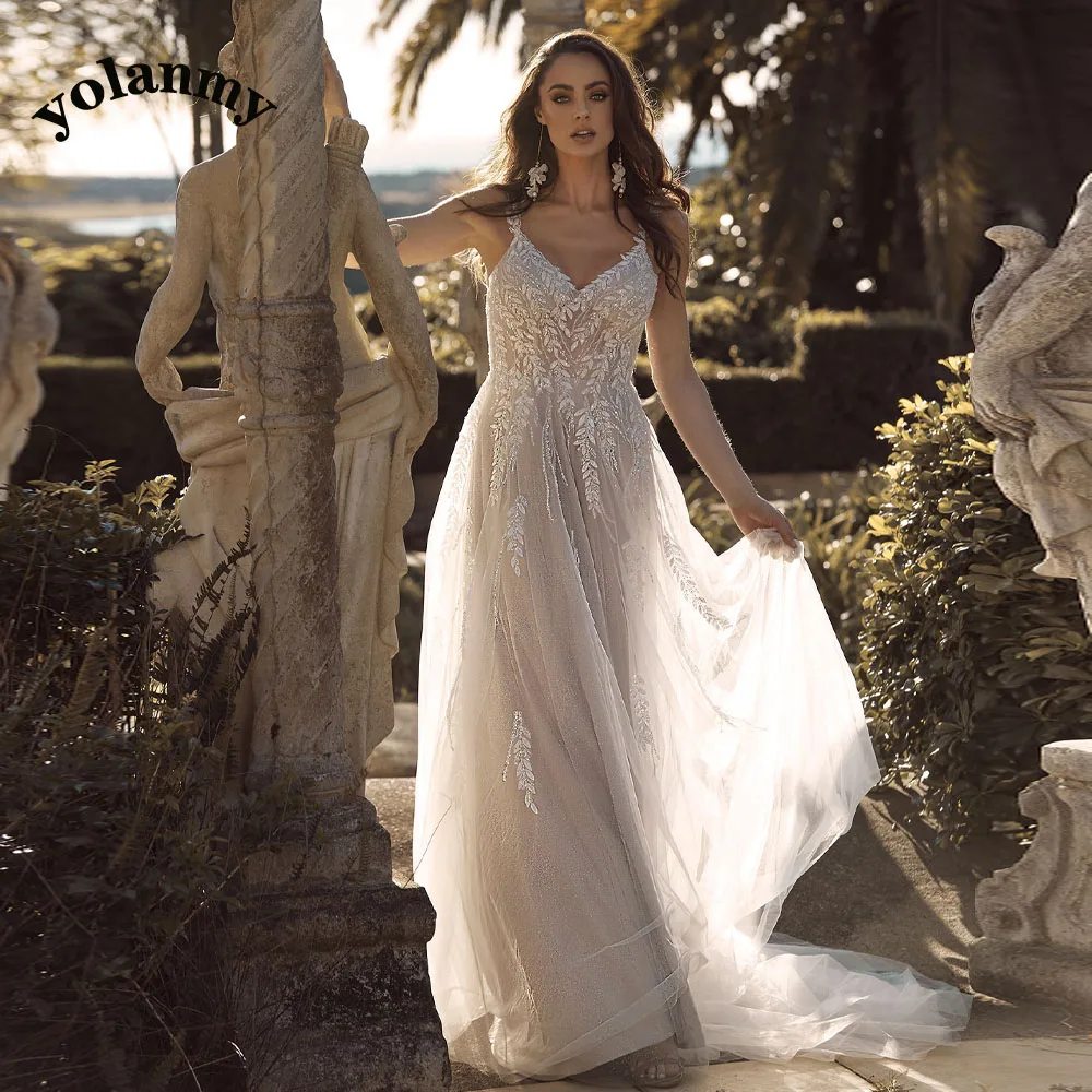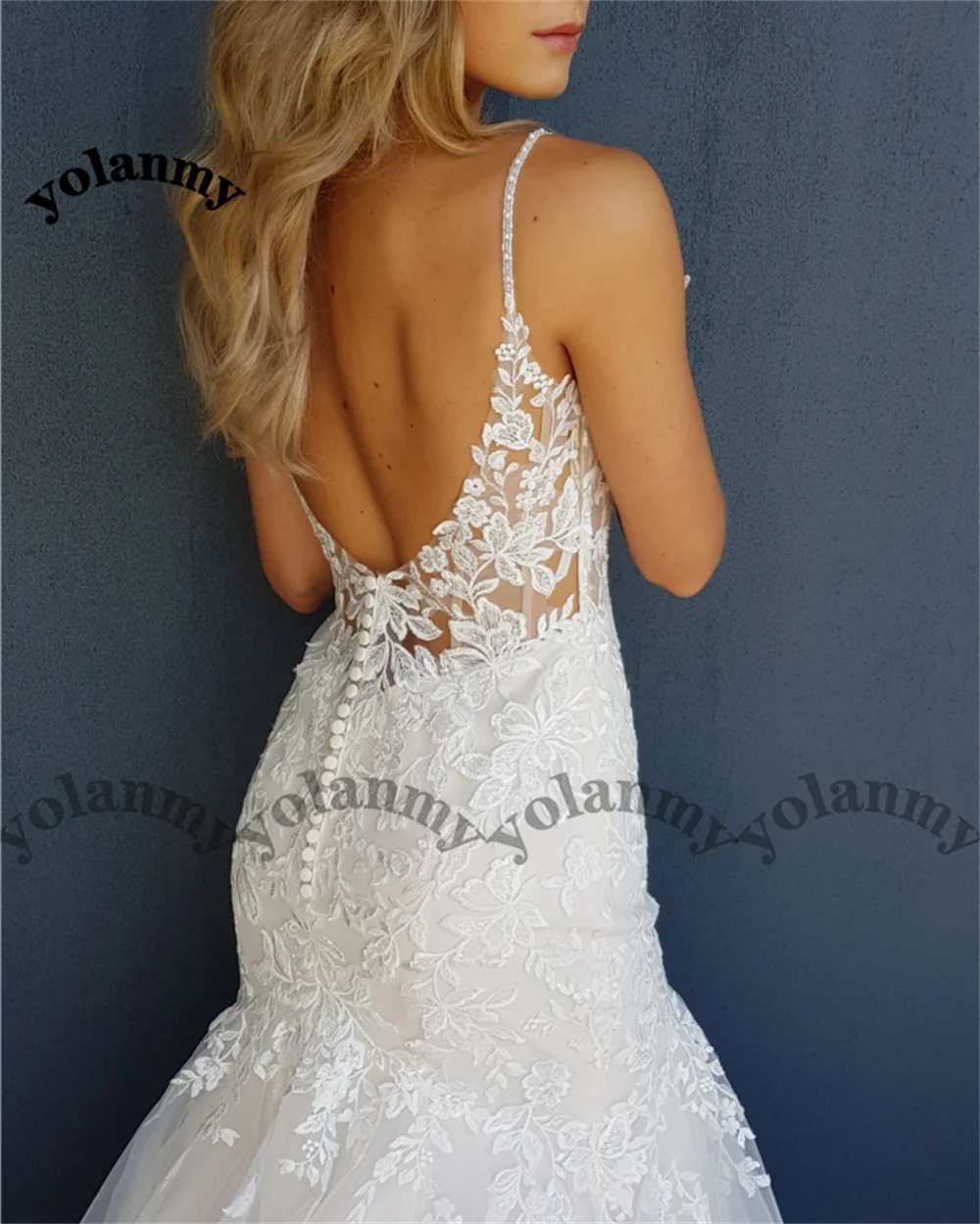 YOLANMY Charming Mermaid Wedding Dresses For Brides 2023 Spaghetti Straps Scoop Appliques Robe De Mariée For Women Custom Made